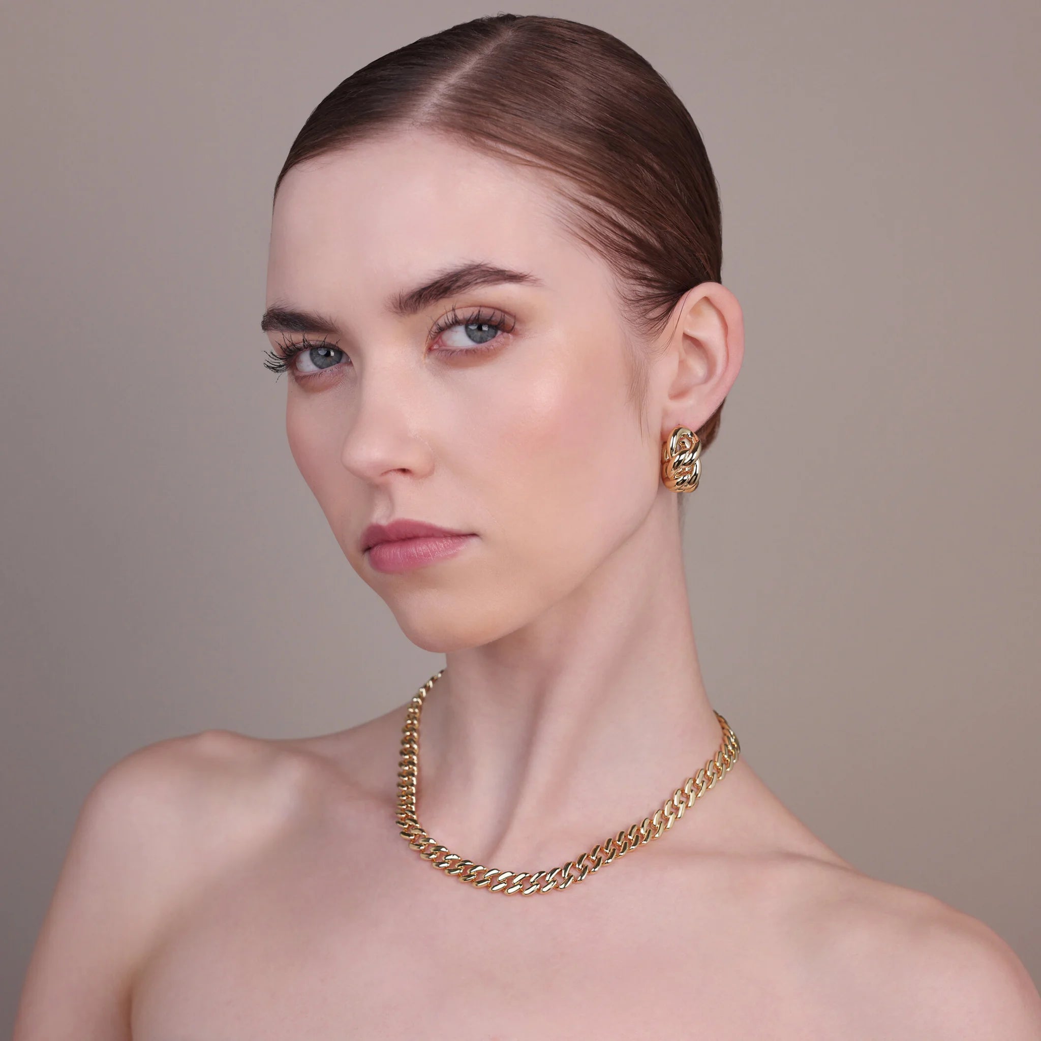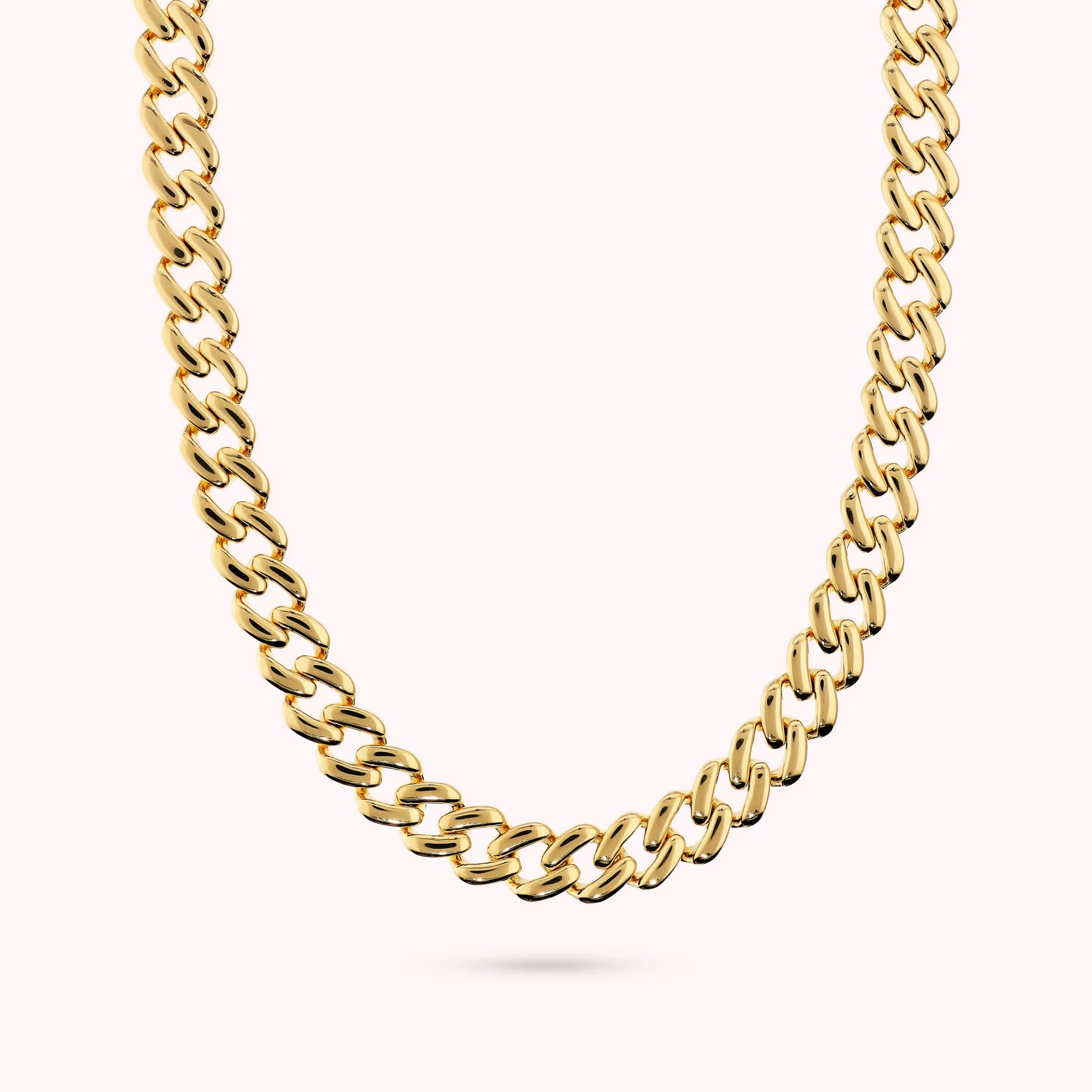 Collana girocollo Bronzallure realizzata in lega Golden Rosé, placcata Oro giallo 18kt, con catena grumetta lucida. Lunghezza 41.5 cm. Chiusura a moschettone.
