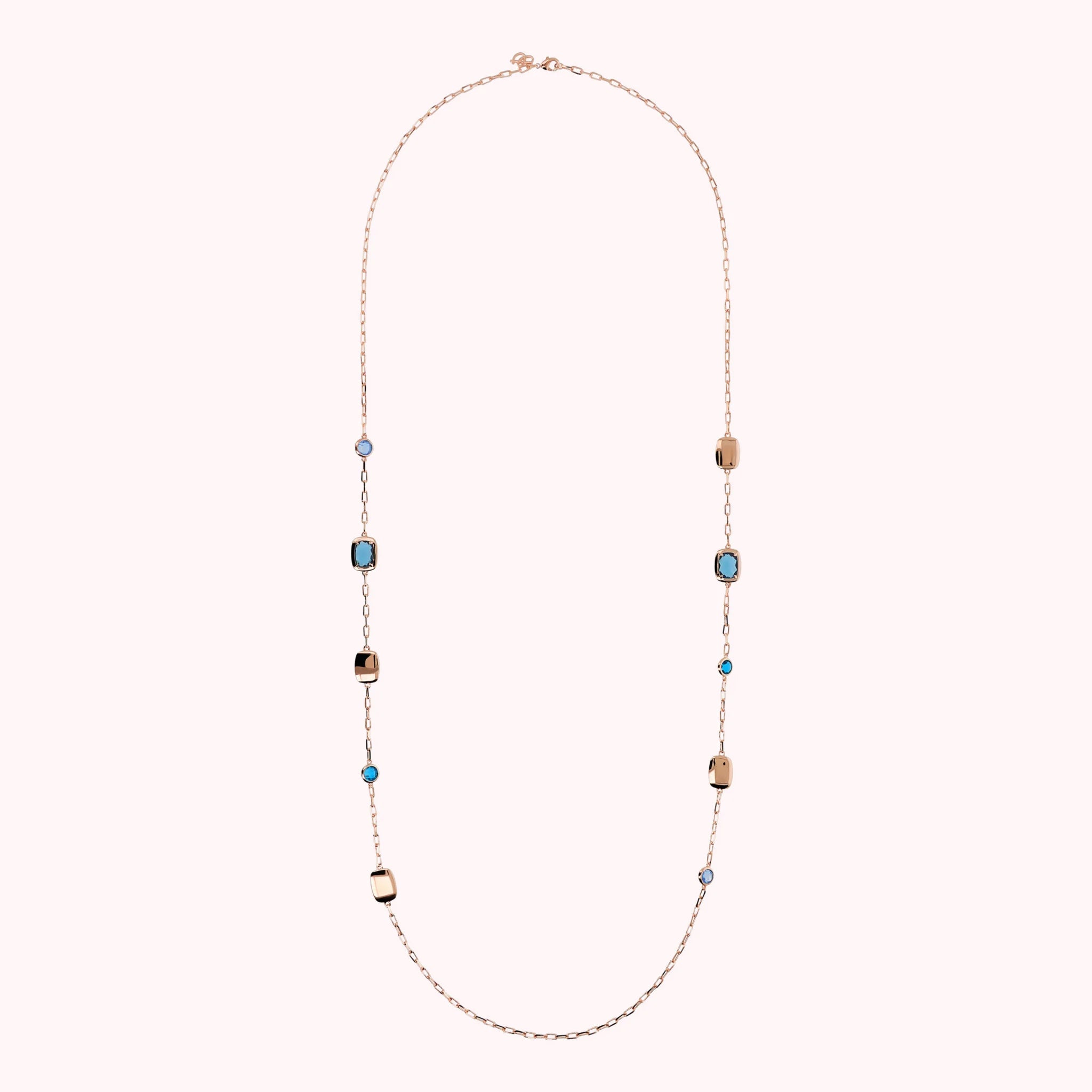 Una collana scenografica e luminosa, dove forme e pietre si alternano creando movimento, colore e carattere. Ideale per dare personalità anche al look più essenziale.