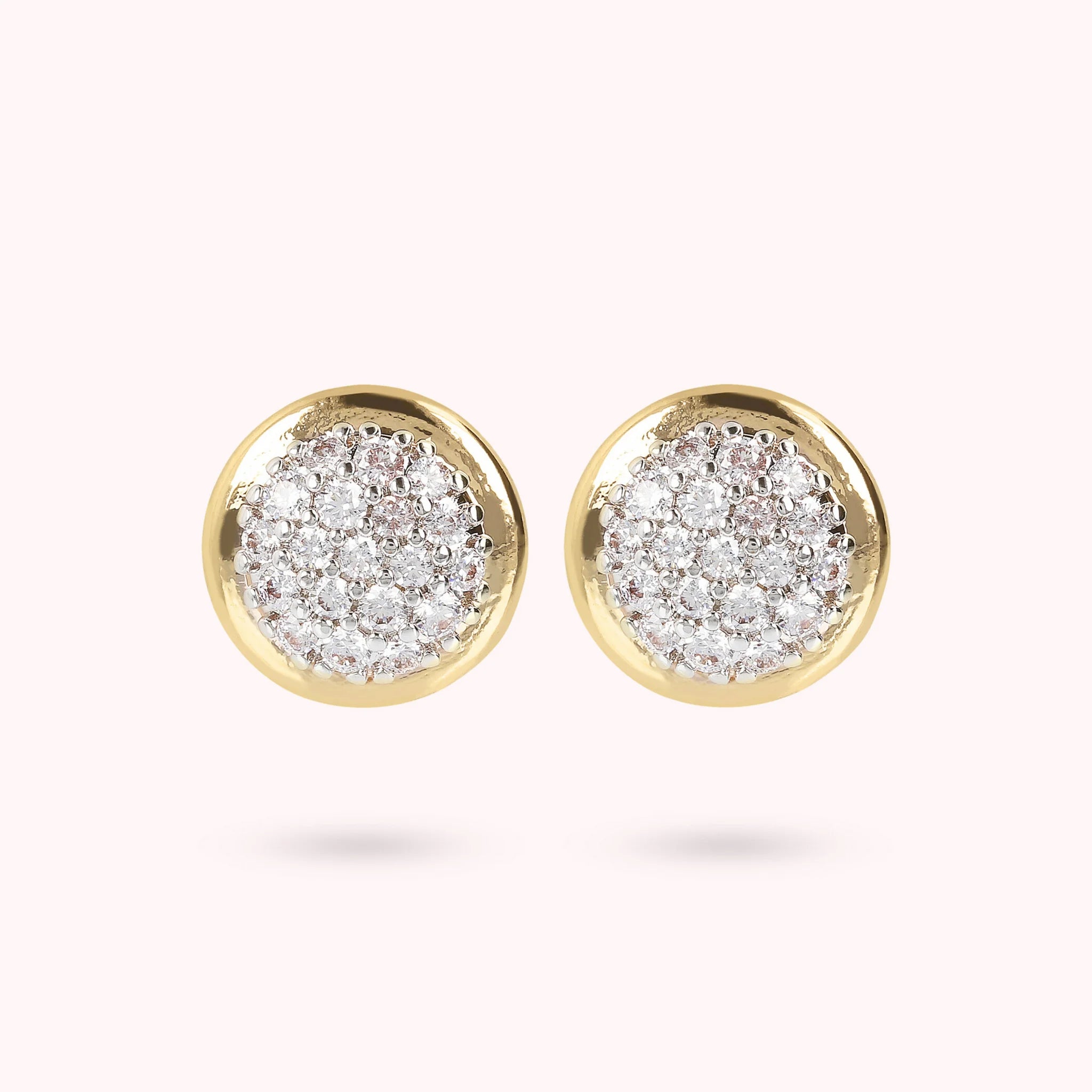Orecchini a Bottone Golden con Pavé in Cubic Zirconia