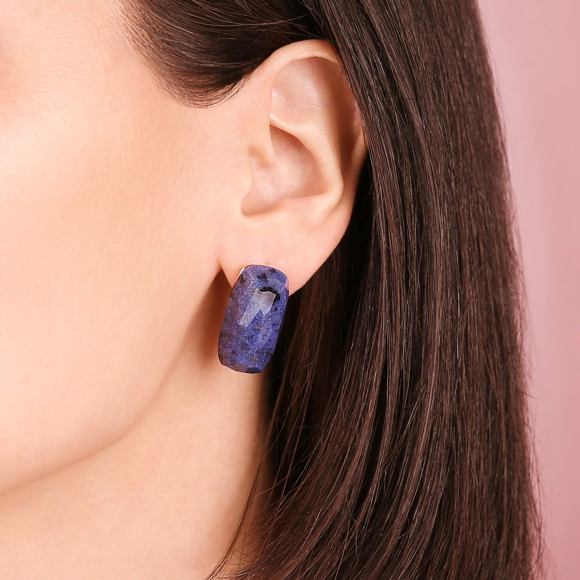 Orecchini a Lobo con Pietra Naturale Rettangolare