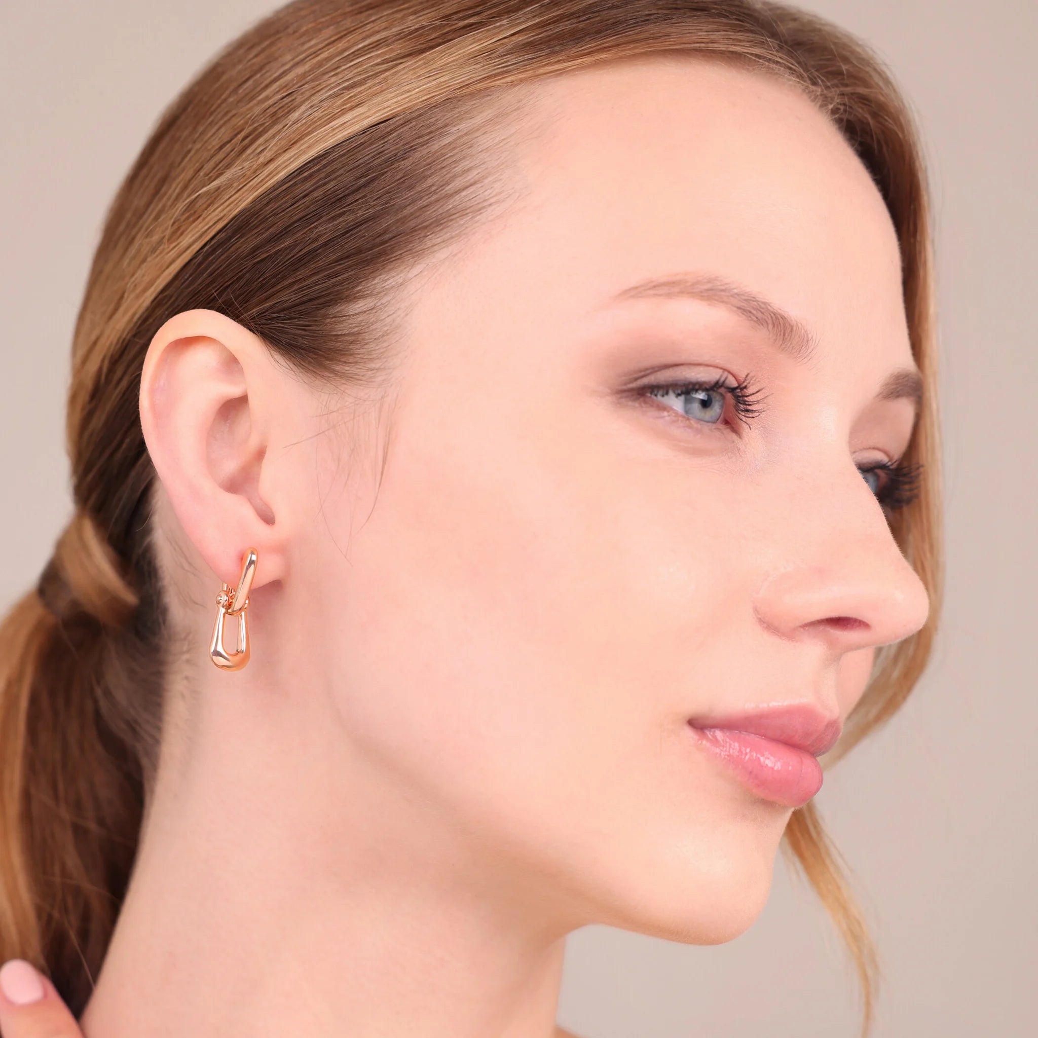 Orecchini pendenti Bronzallure realizzati in lega Golden Rosé, placcata Oro 18kt, con top a cerchio lucido e ciondolo maglia a staffa lucida. Chiusura con perno a incastro.