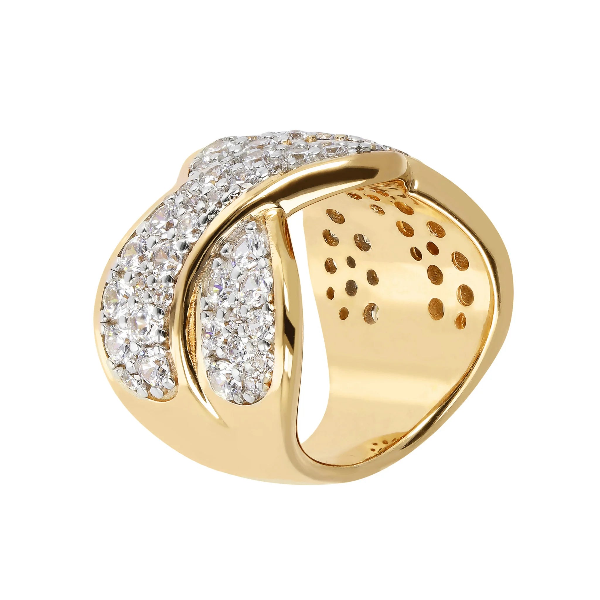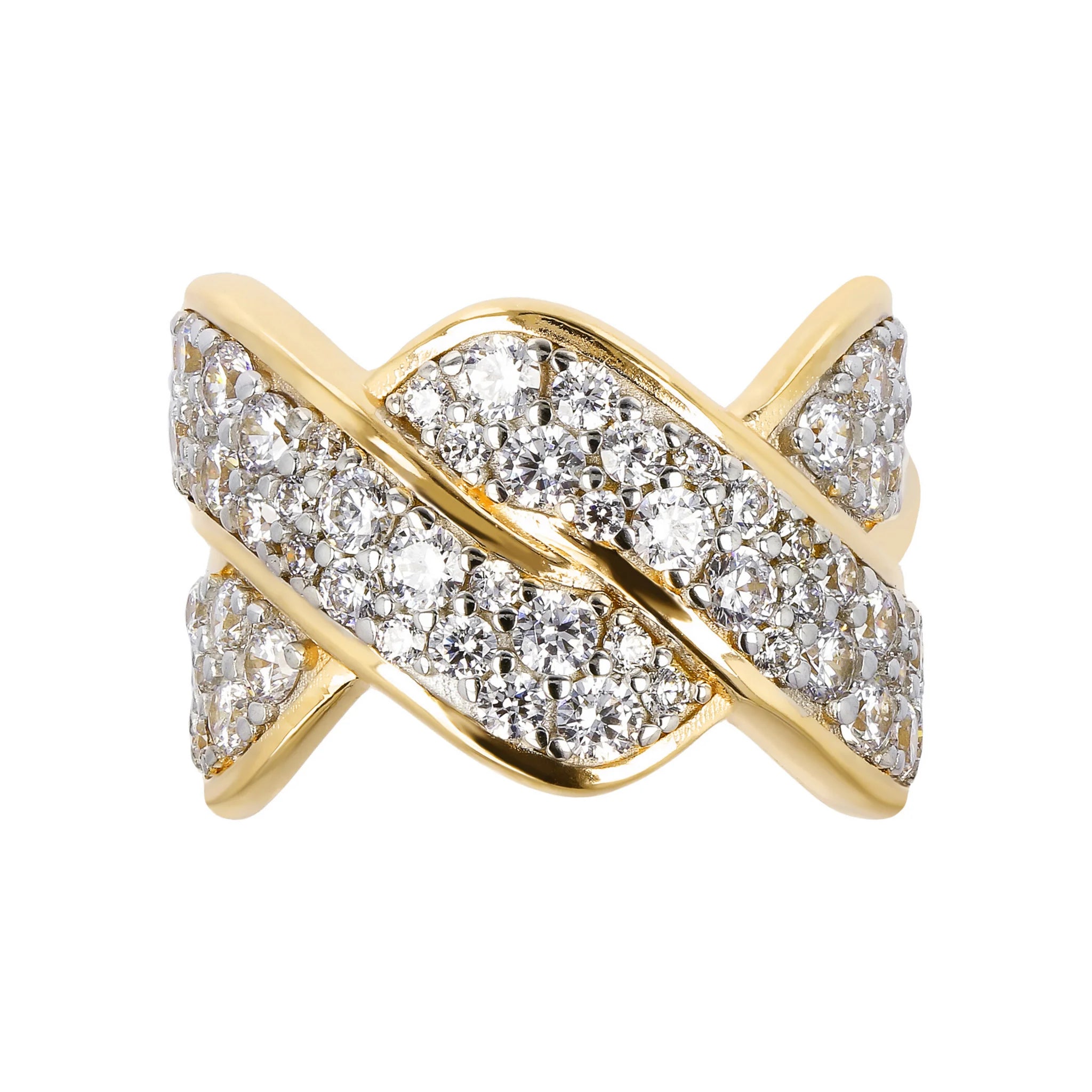 Anello a Fascia Golden con Incrocio in Pavé di Cubic Zirconia