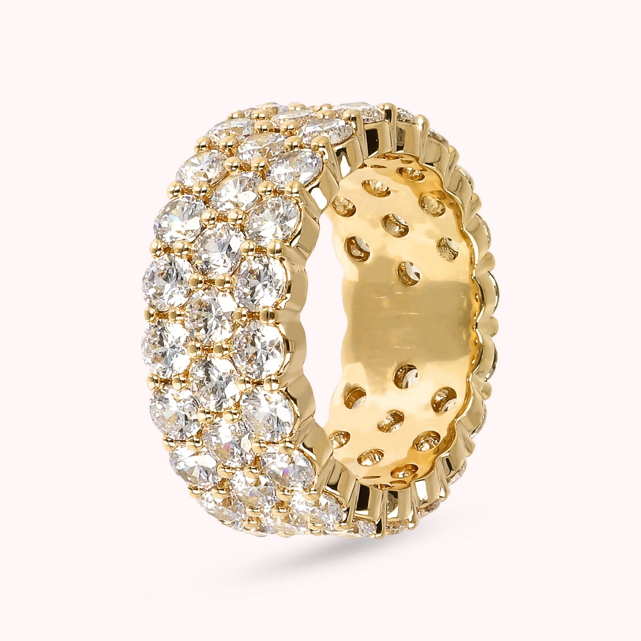 Anello a Fascia Golden con Tre File di Cubic Zirconia Golden