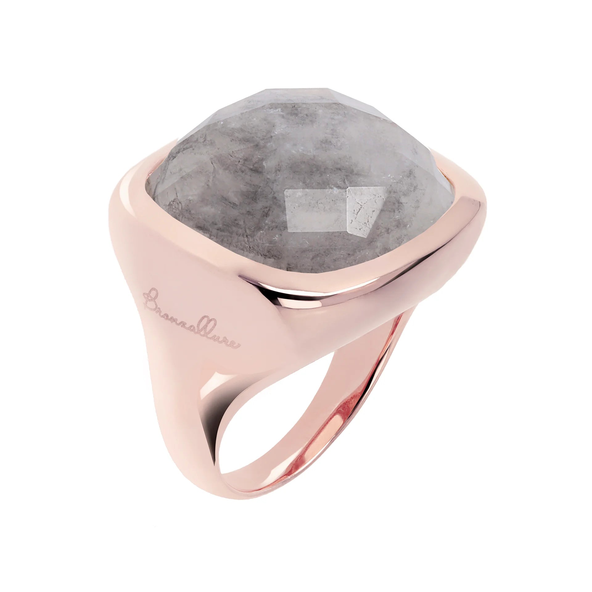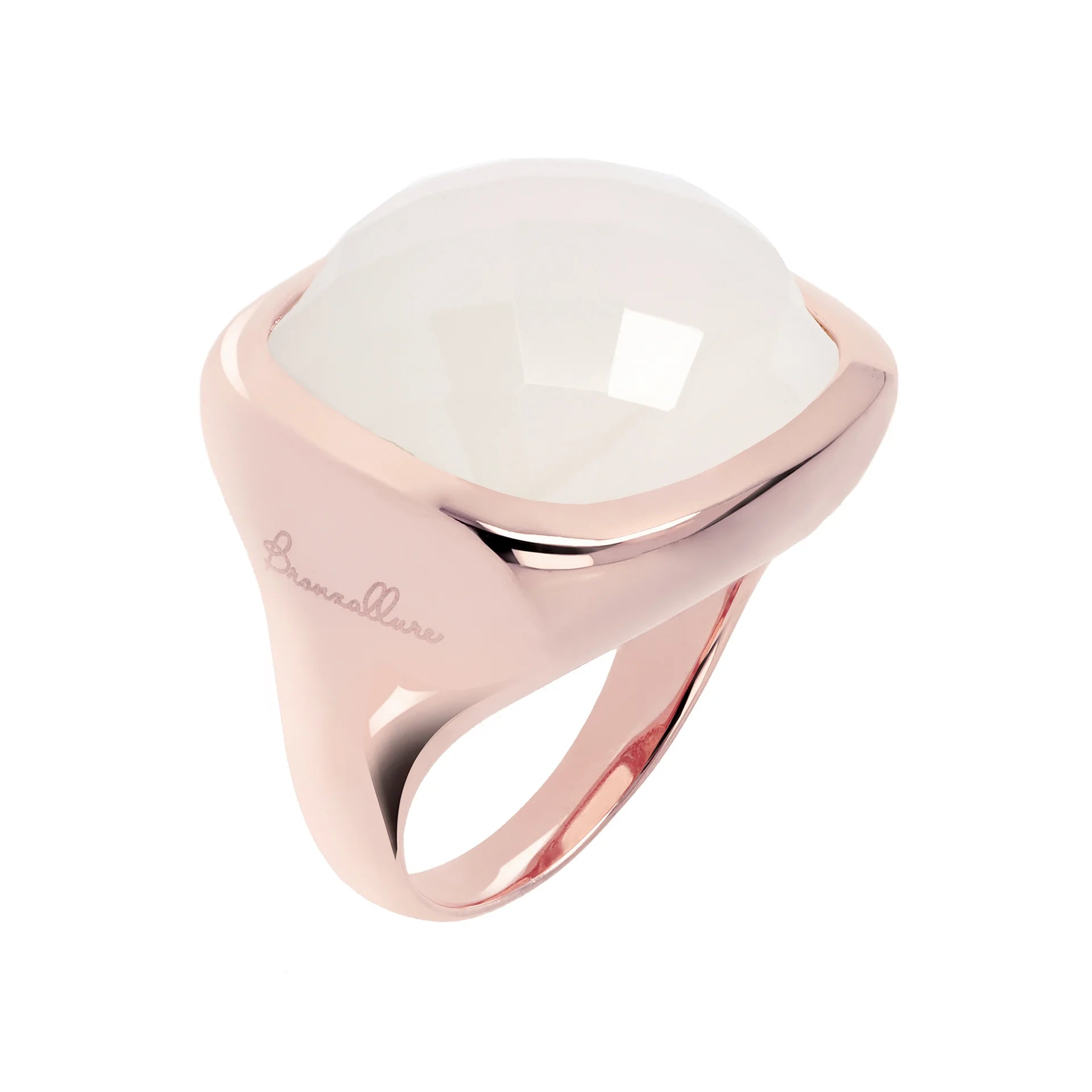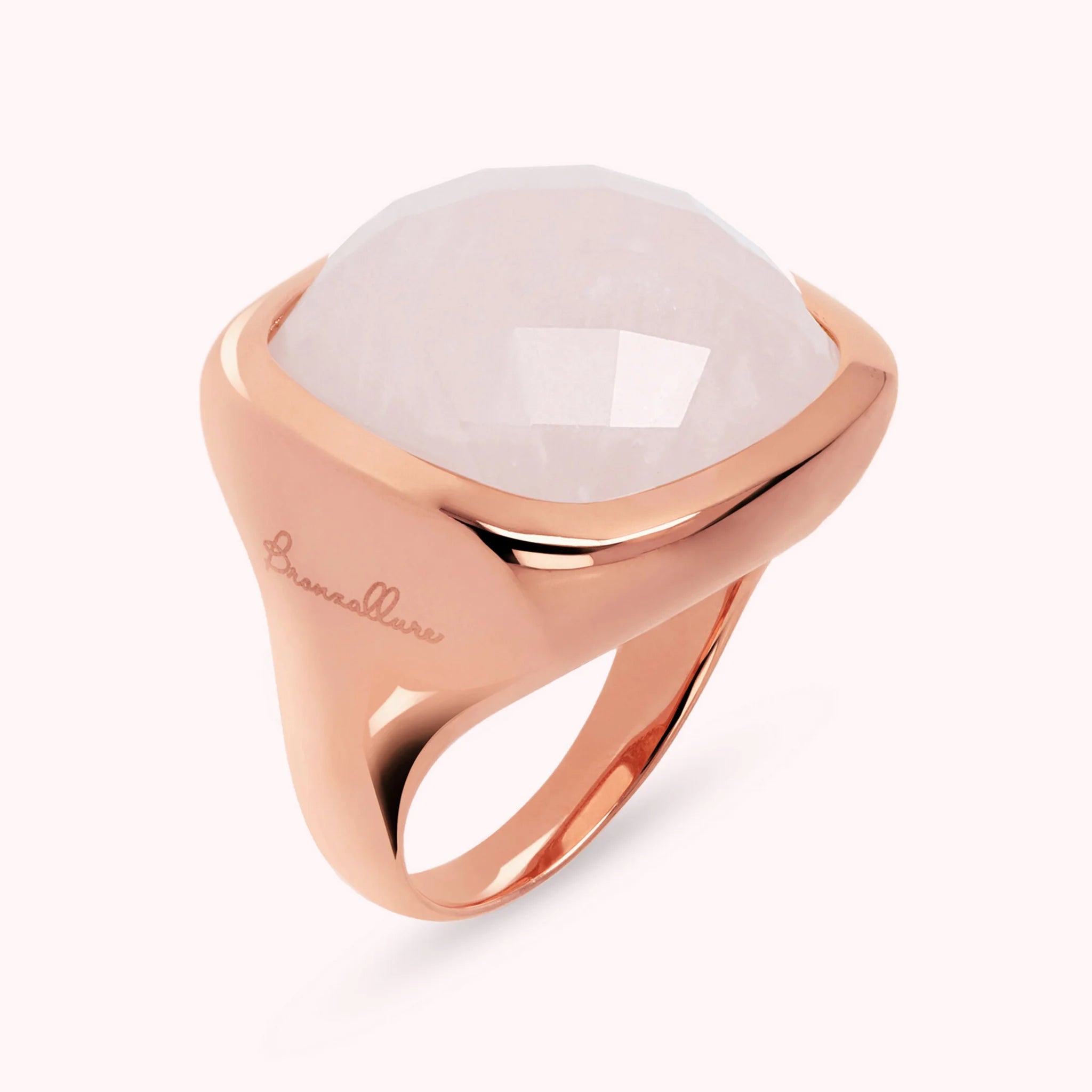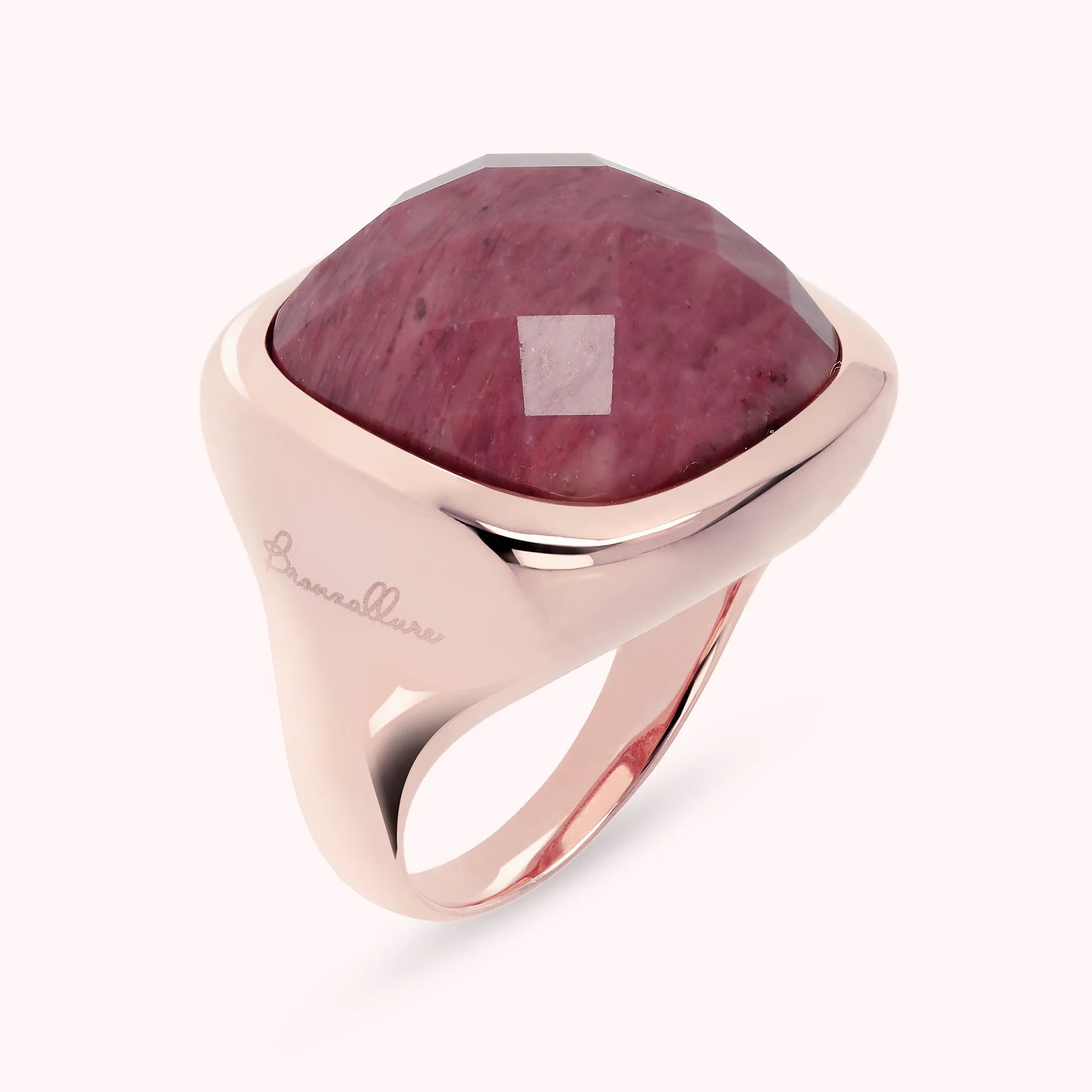 Anello chevalier Bronzallure realizzato in lega Golden Rosé, placcato oro rosa 18kt, impreziosito da una pietra naturale quadrata (19x19 mm) dai colori luminosi e dalla superficie sfaccettata.