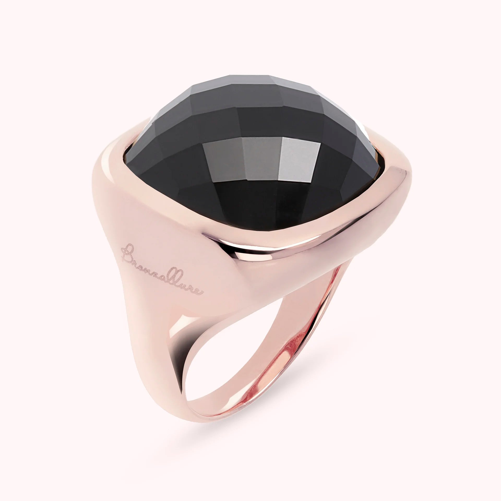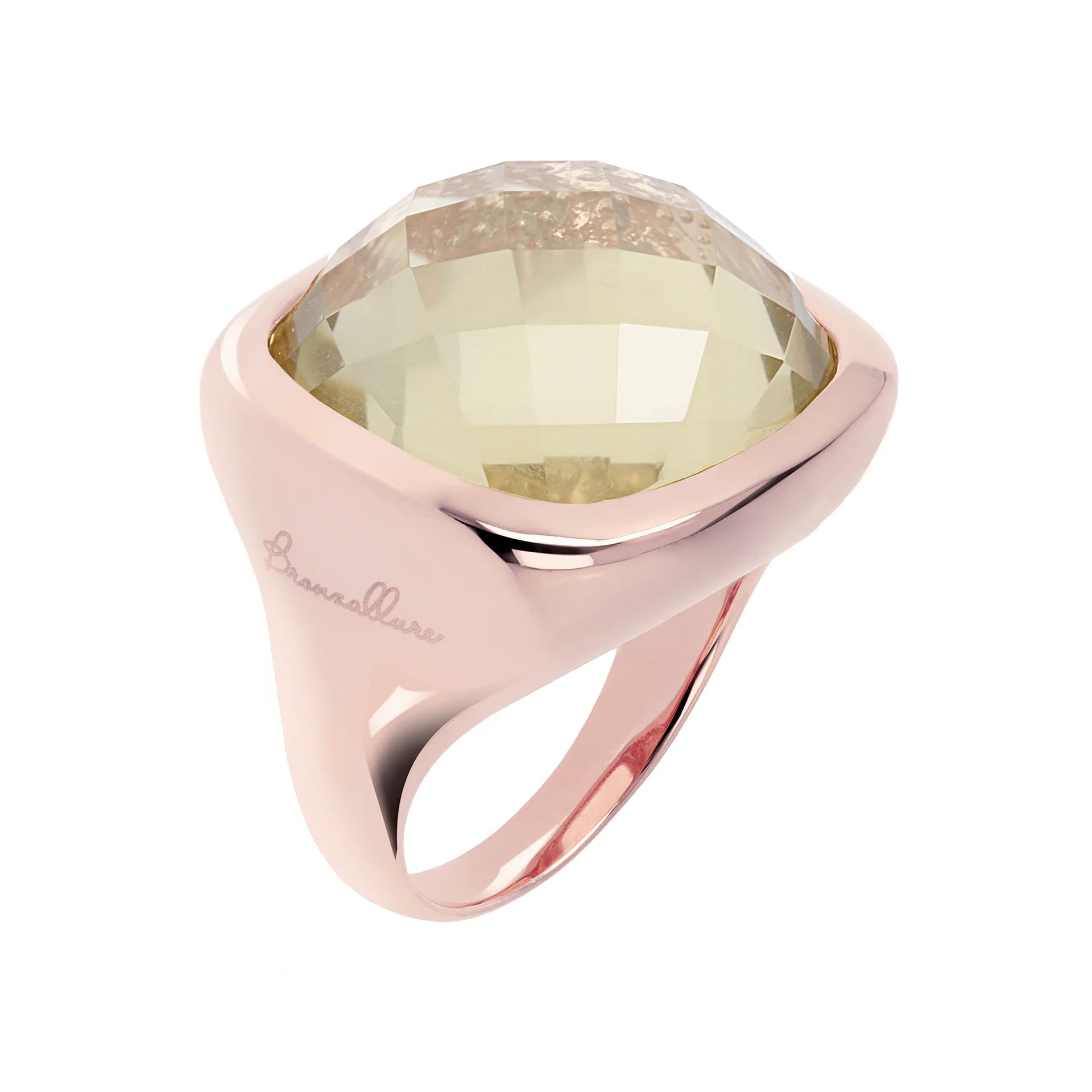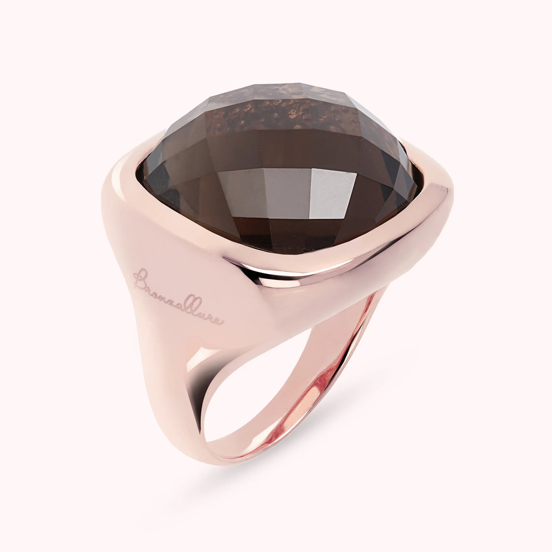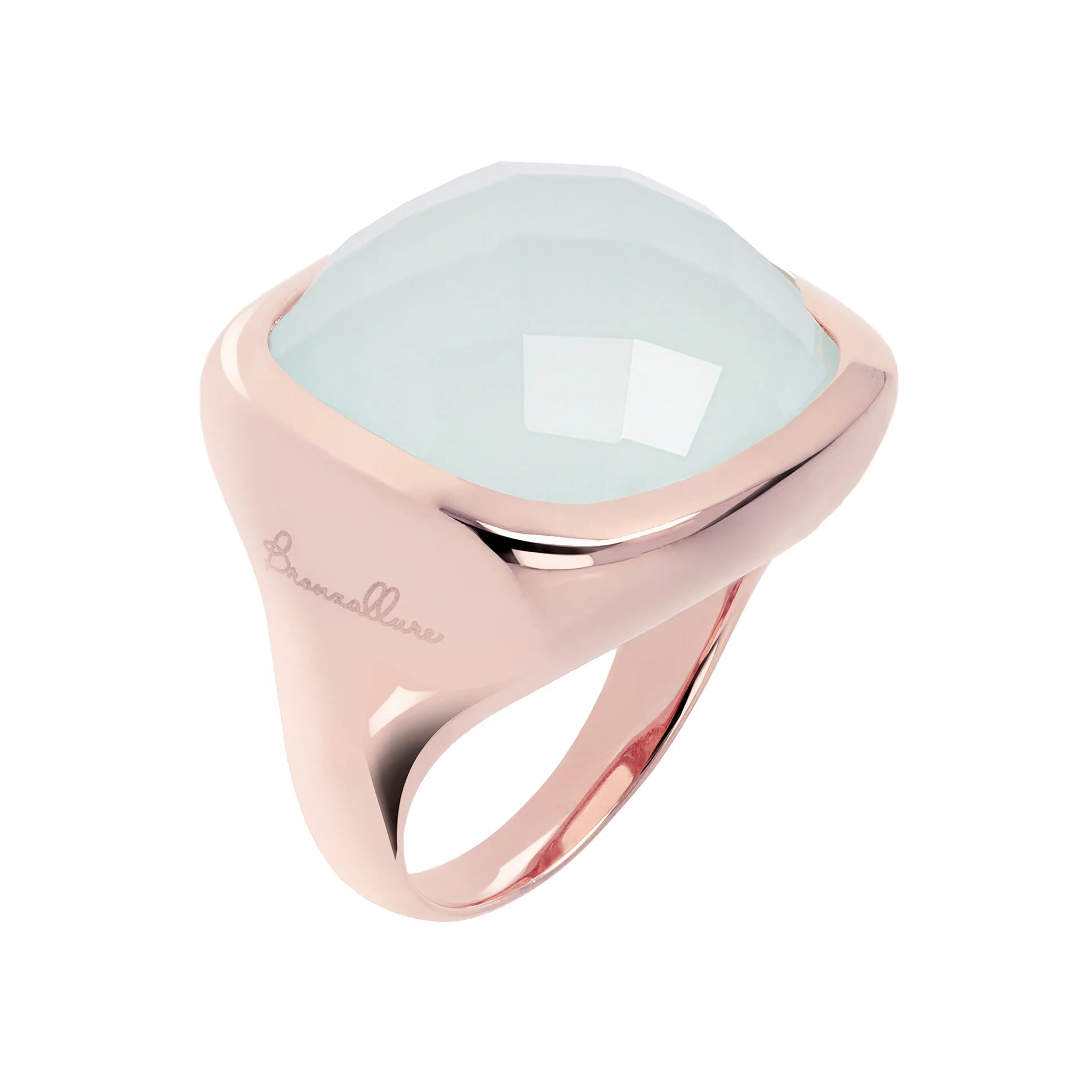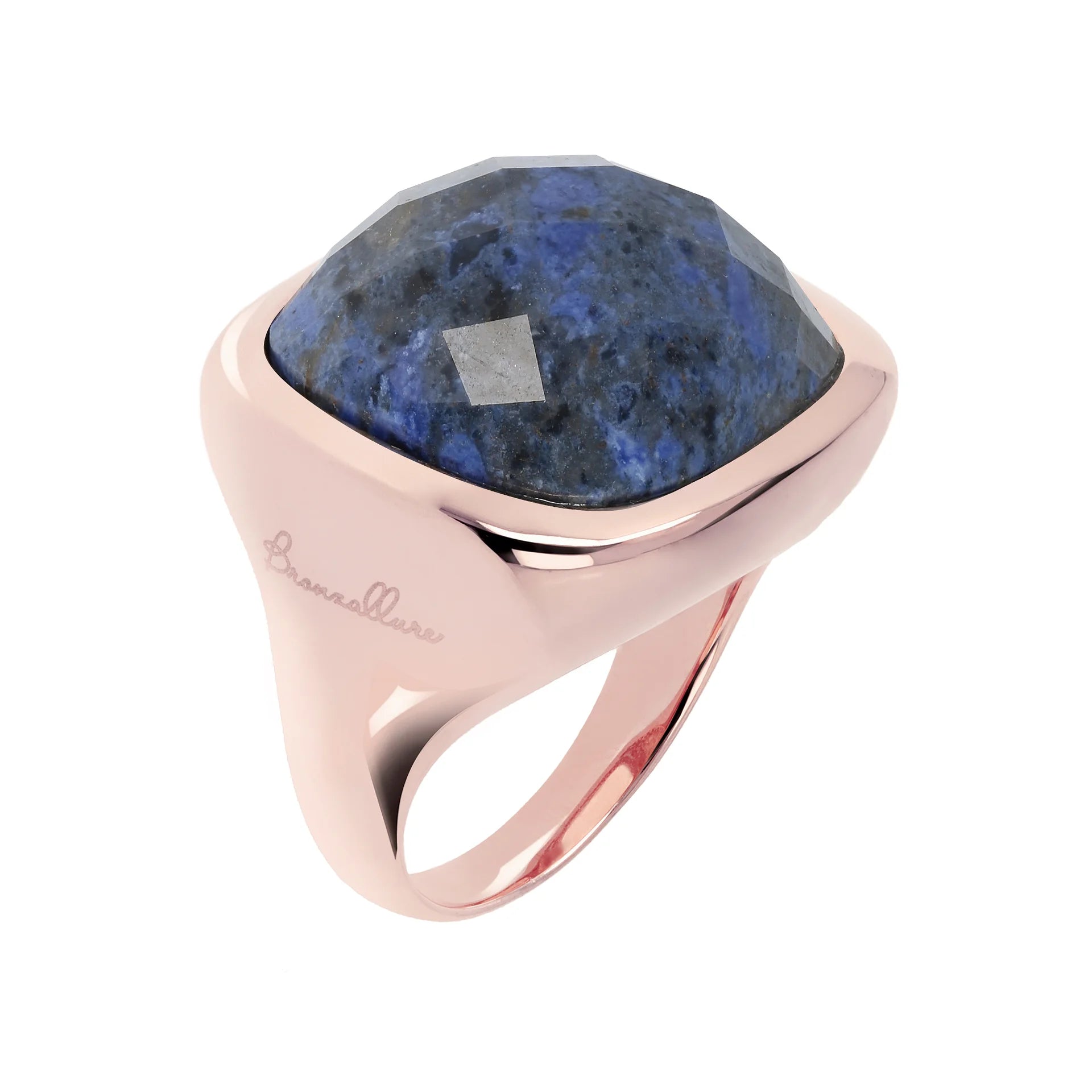 Anello chevalier Bronzallure realizzato in lega Golden Rosé, placcato oro rosa 18kt, impreziosito da una pietra naturale quadrata (19x19 mm) dai colori luminosi e dalla superficie sfaccettata.