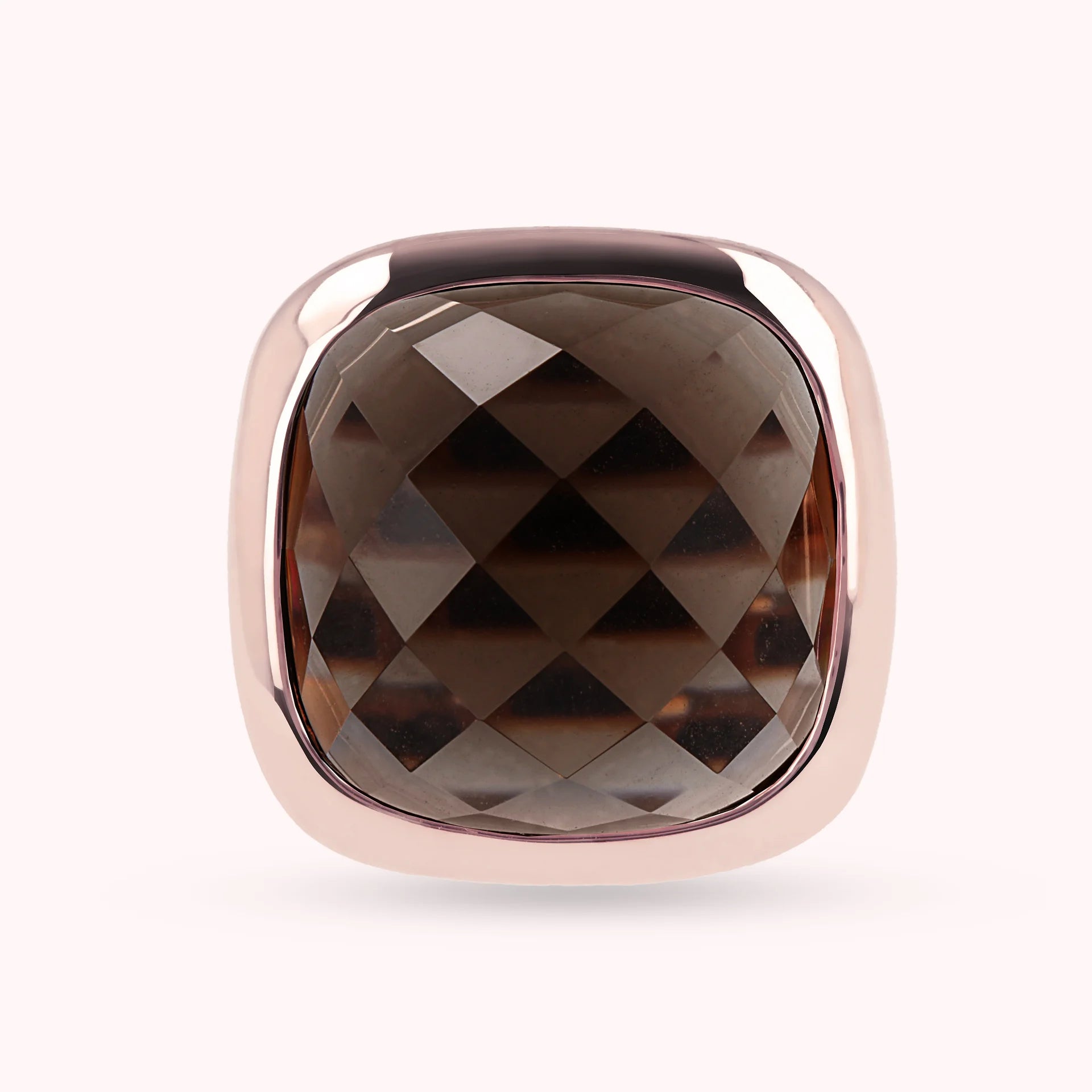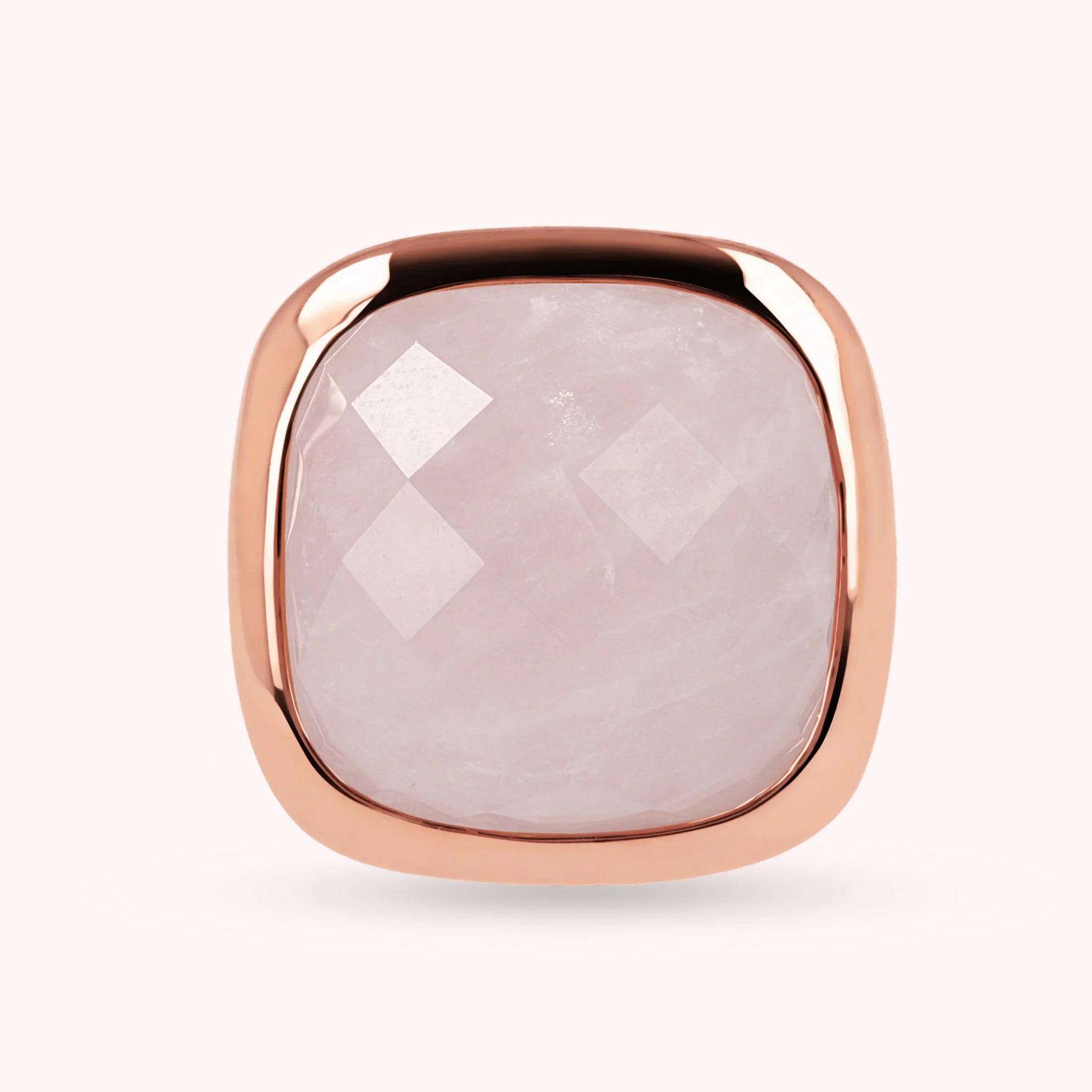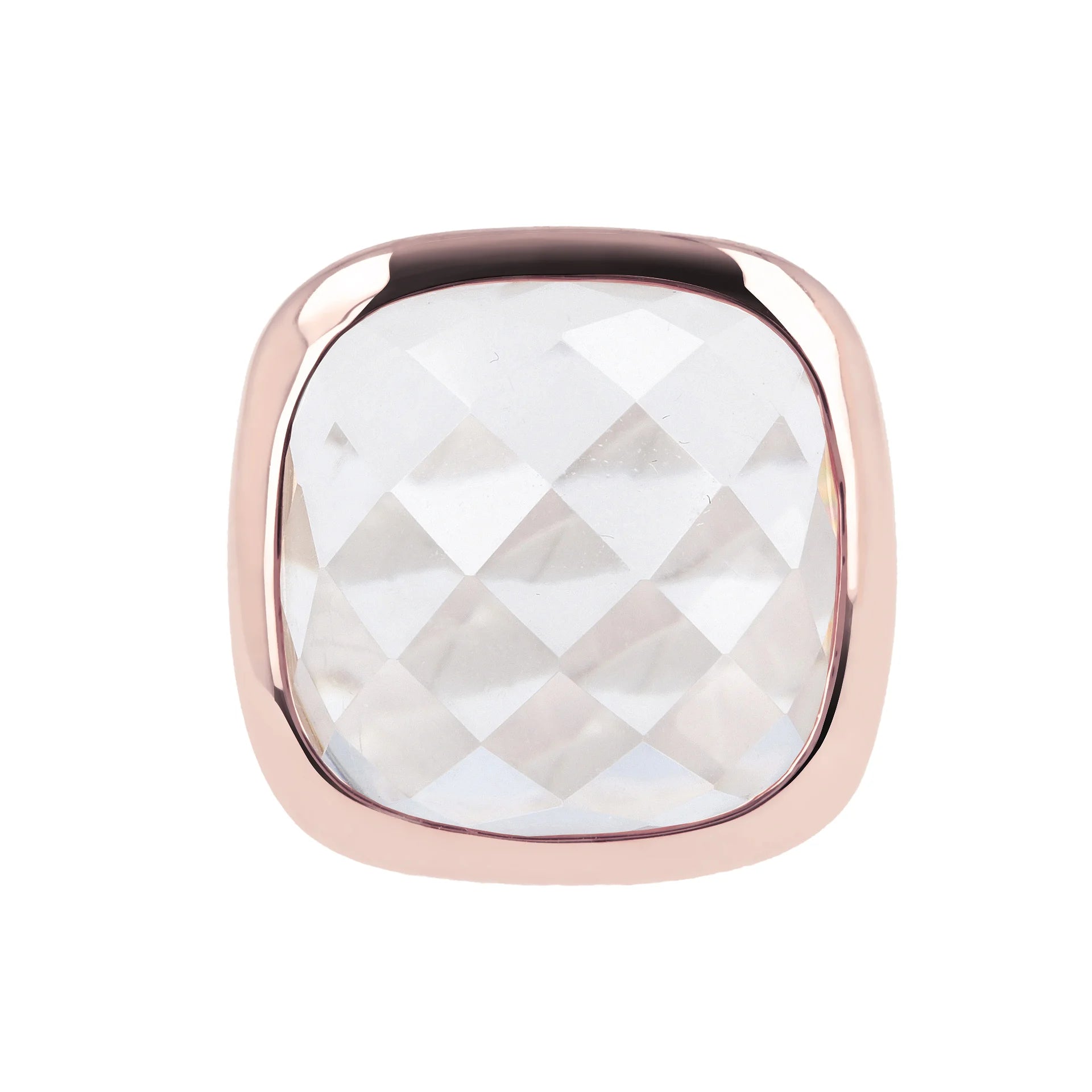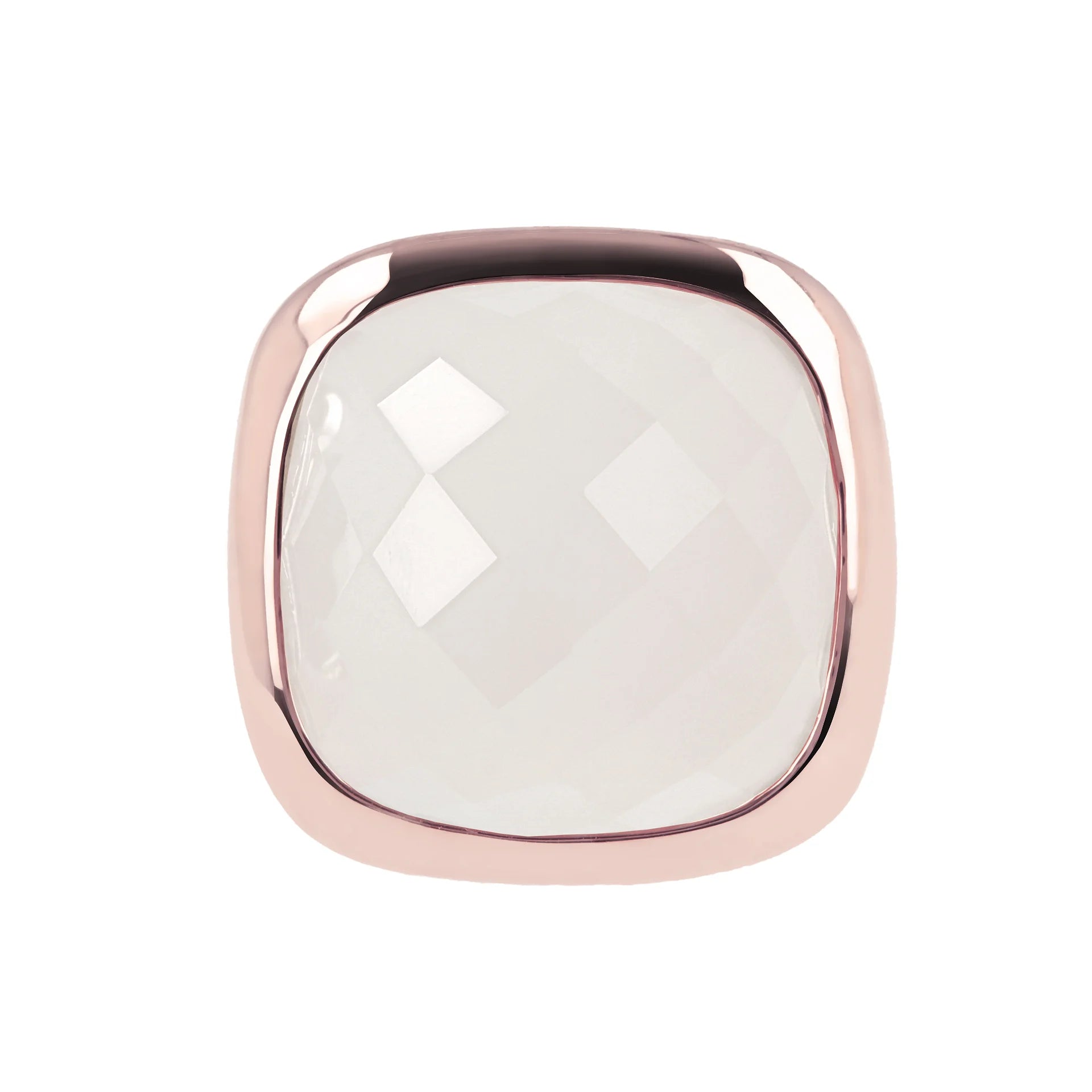 Anello chevalier Bronzallure realizzato in lega Golden Rosé, placcato oro rosa 18kt, impreziosito da una pietra naturale quadrata (19x19 mm) dai colori luminosi e dalla superficie sfaccettata.