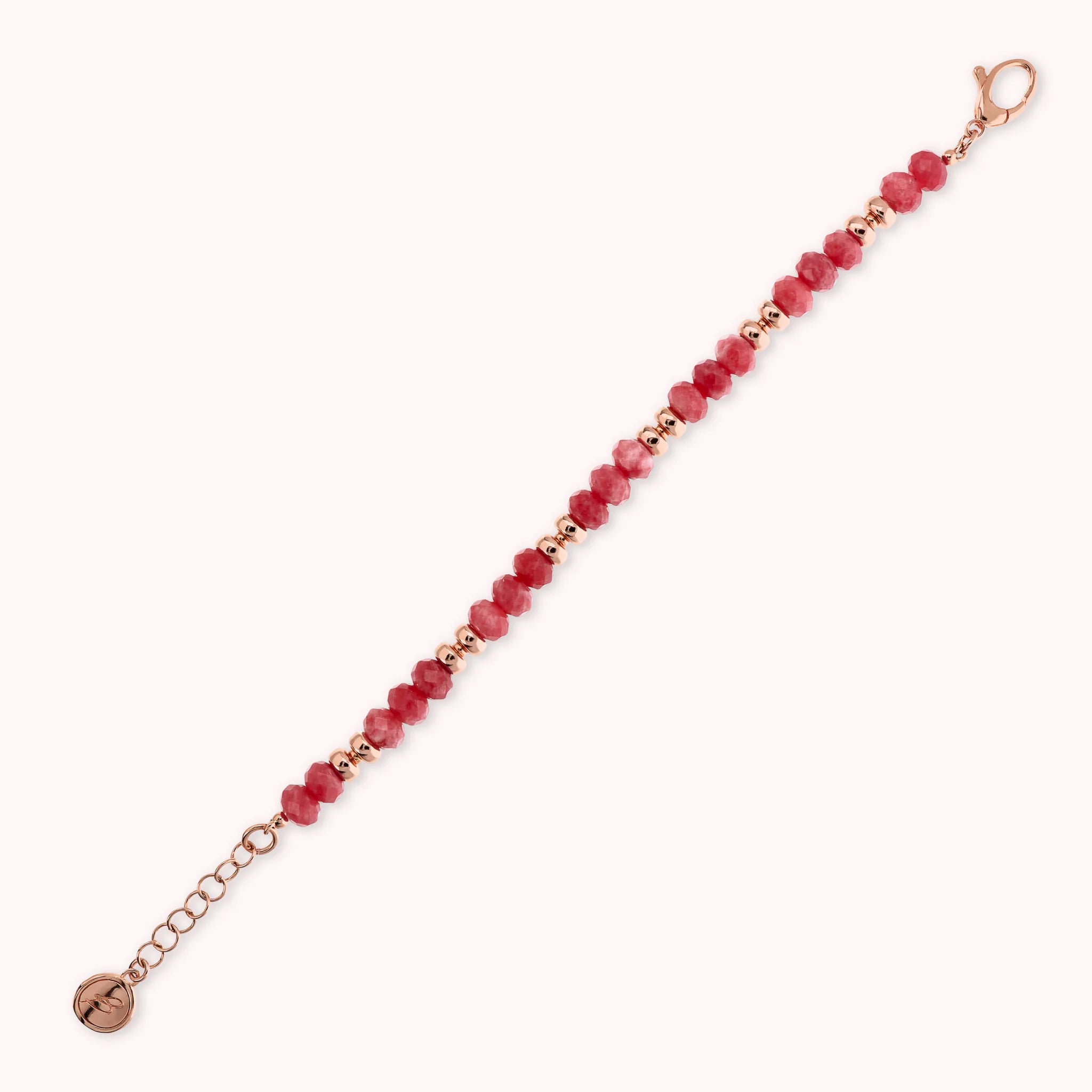Bracciale Bronzallure realizzato in lega Golden Rosé, placcata Oro rosa 18kt, impreziosito da pietre naturali sfaccettate (8 mm) alternate a rondelle lucide in Golden Rosé. Chiusura a moschettone.