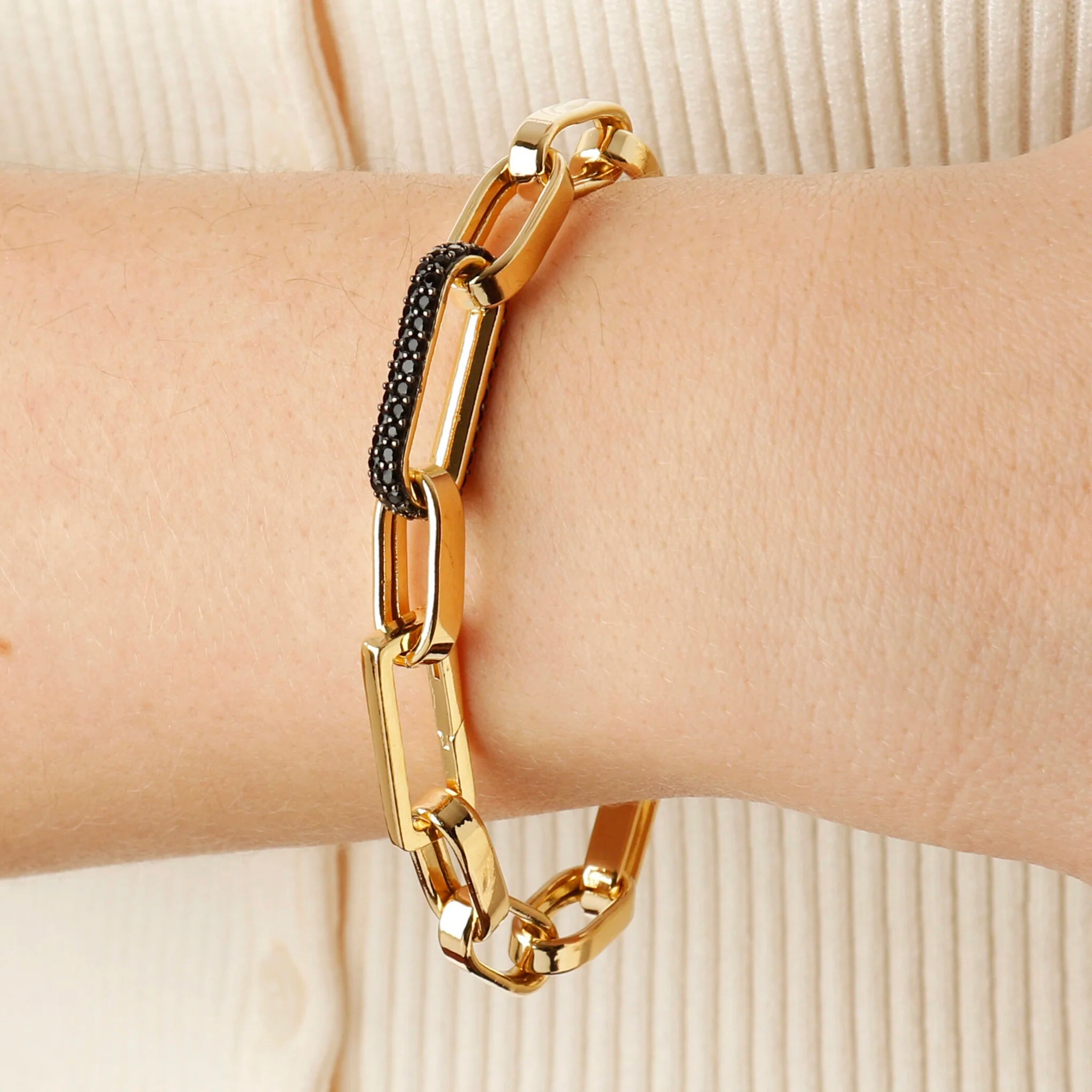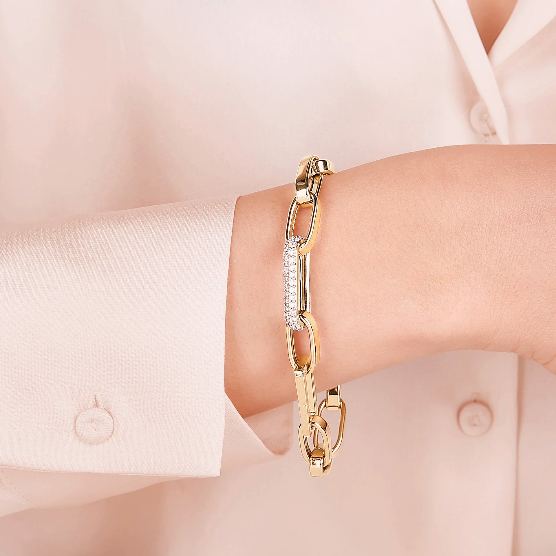 Bracciale Golden Catena Forzatina Maxi Maglie con Elemento Pavé