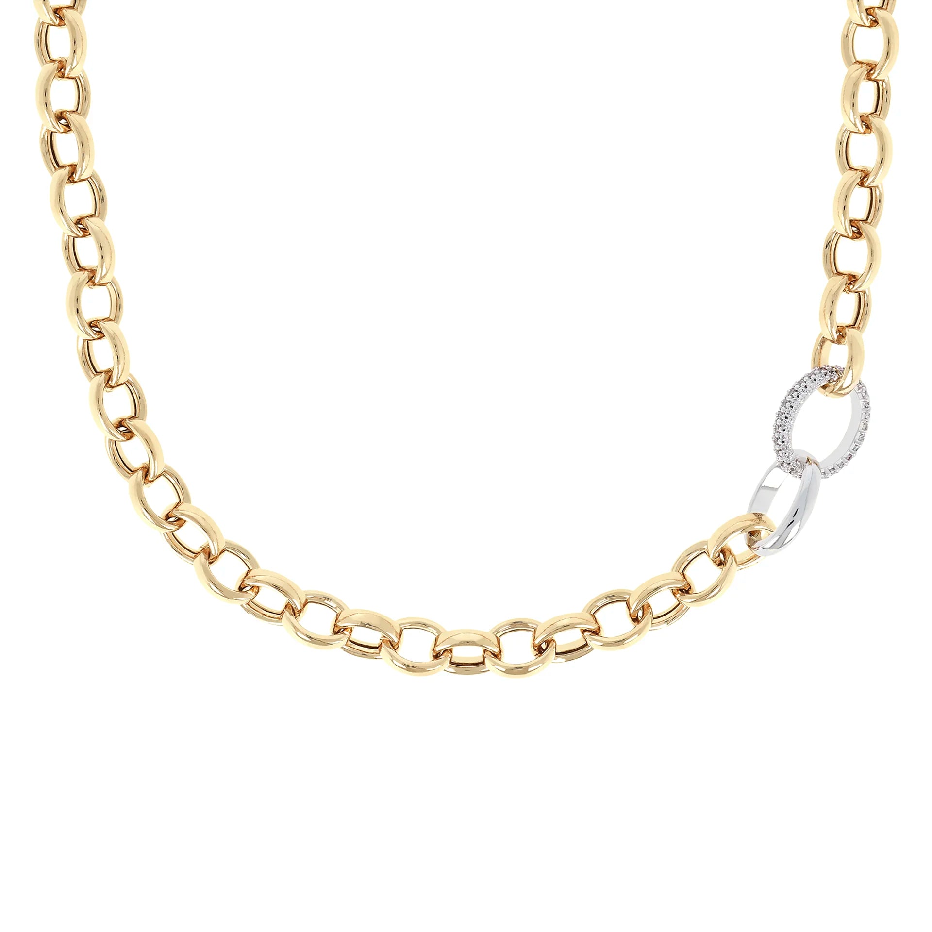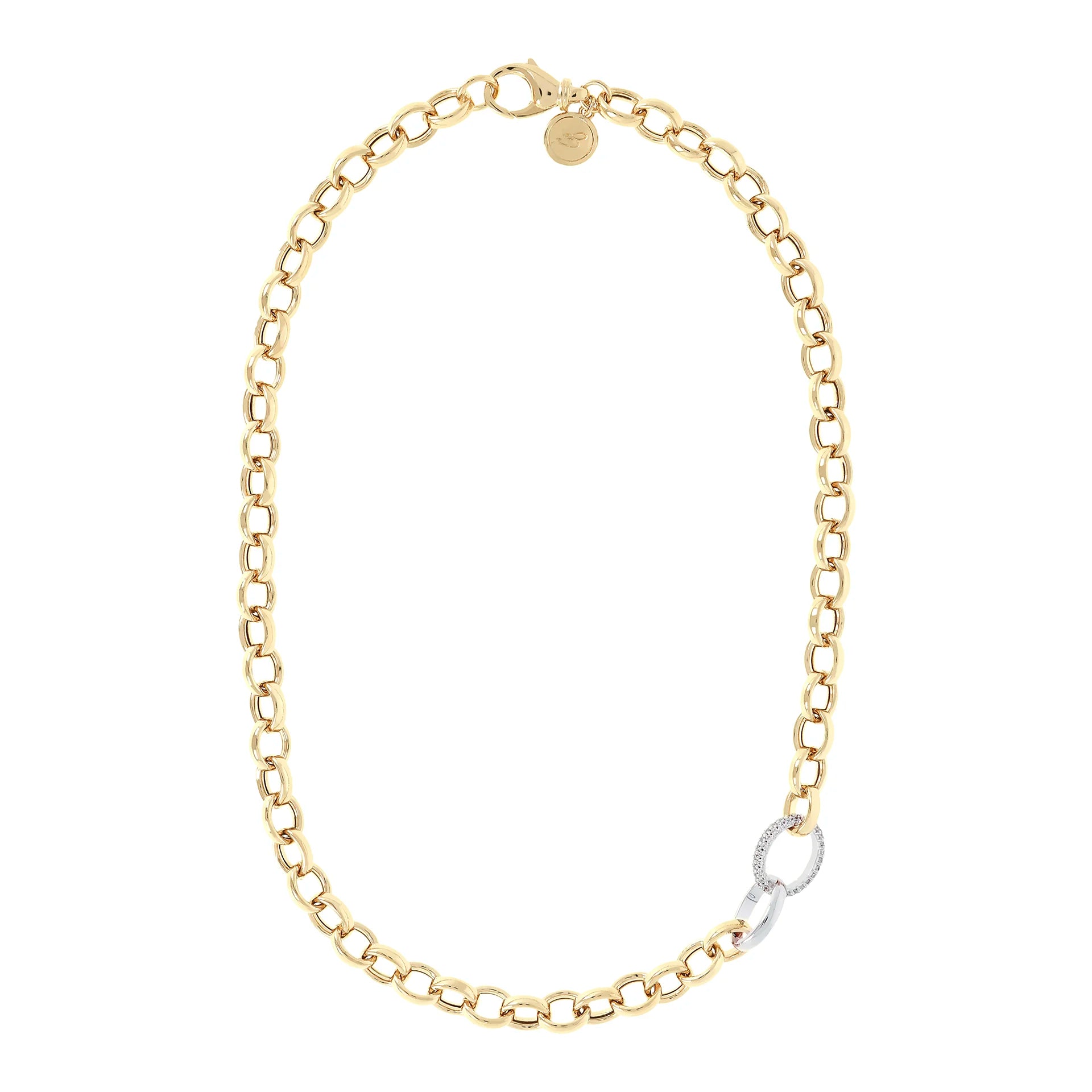 Collana Golden Catena Rolo ed Elemento Pavé in Cubic Zirconia
