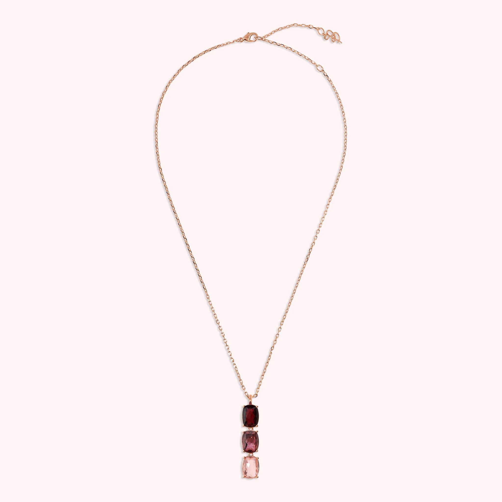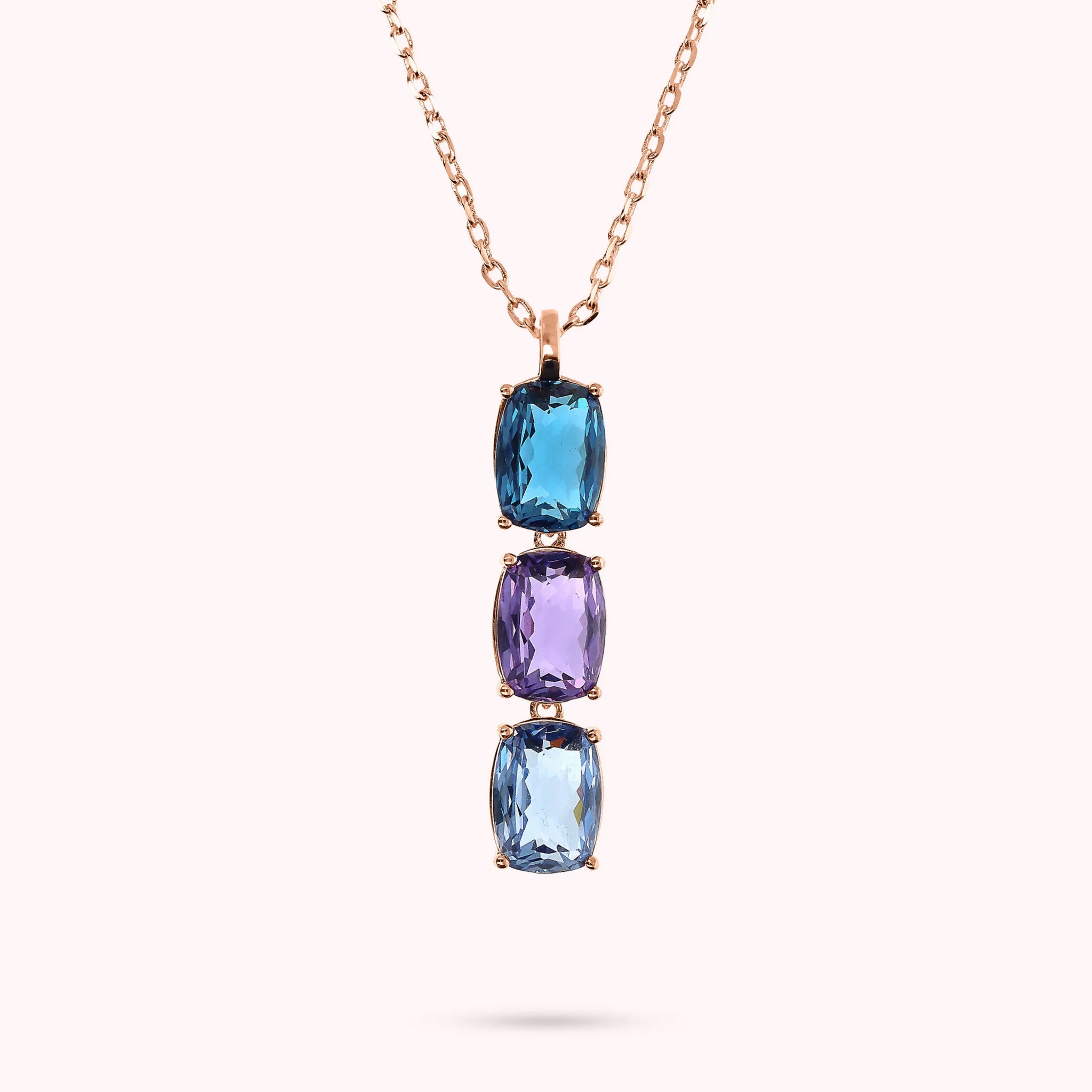 Collana Bronzallure realizzata in lega Golden Rosé, placcata Oro rosa 18kt, impreziosita da un pendente con pietre prisma gem rettangolari (8x11 mm) dal taglio a mosaico. Chiusura a moschettone e lunghezza 47 cm con anellini interposti a 41 e 44 cm.