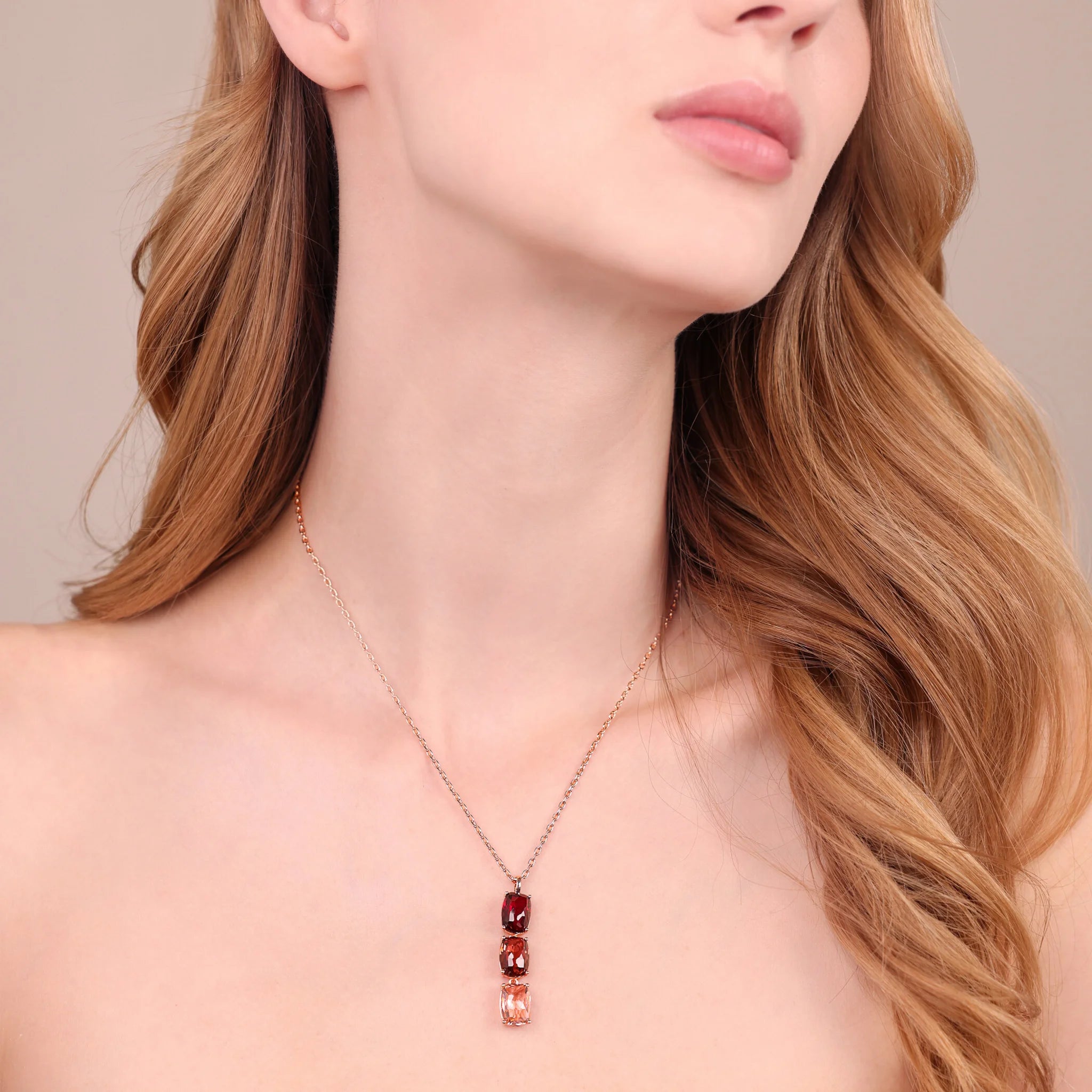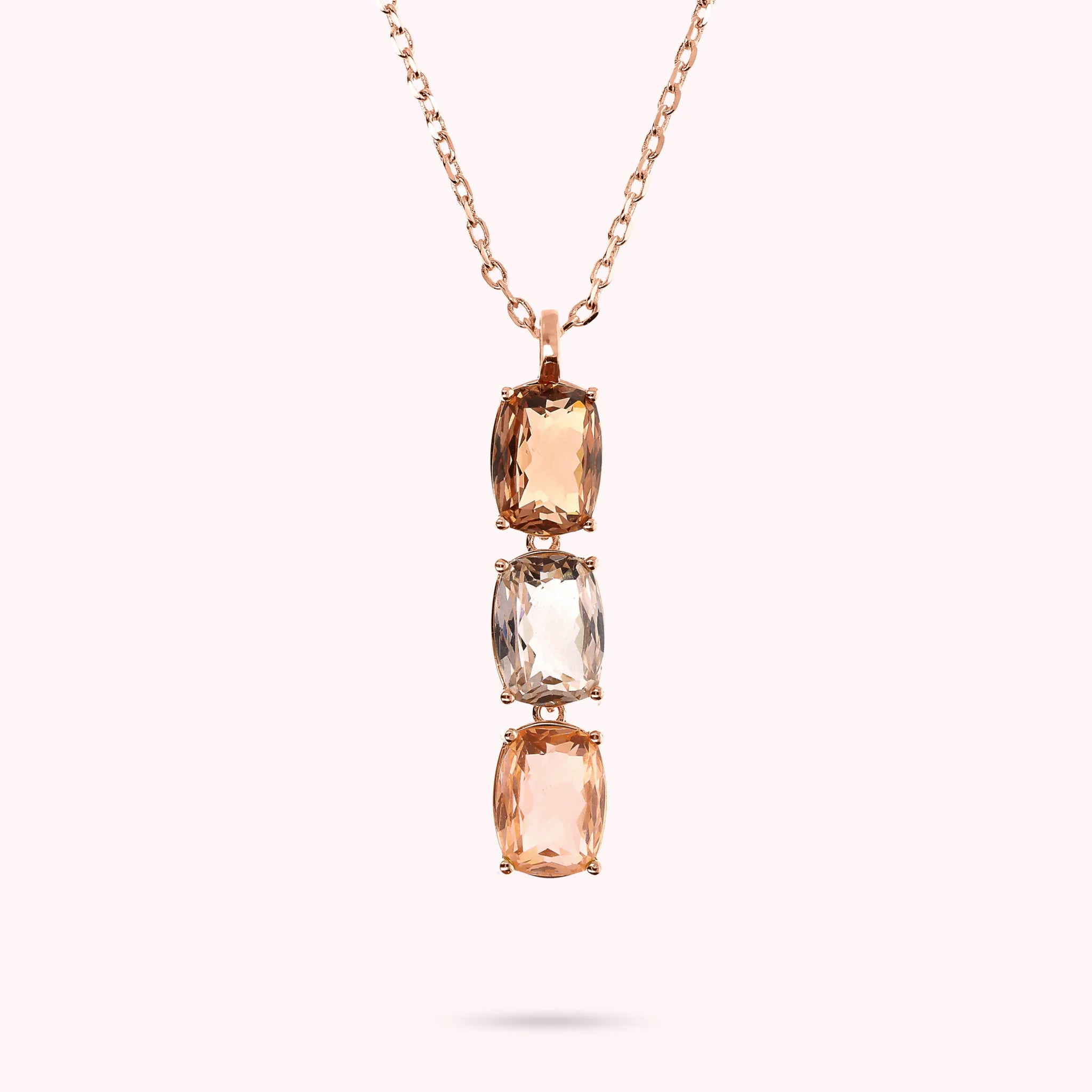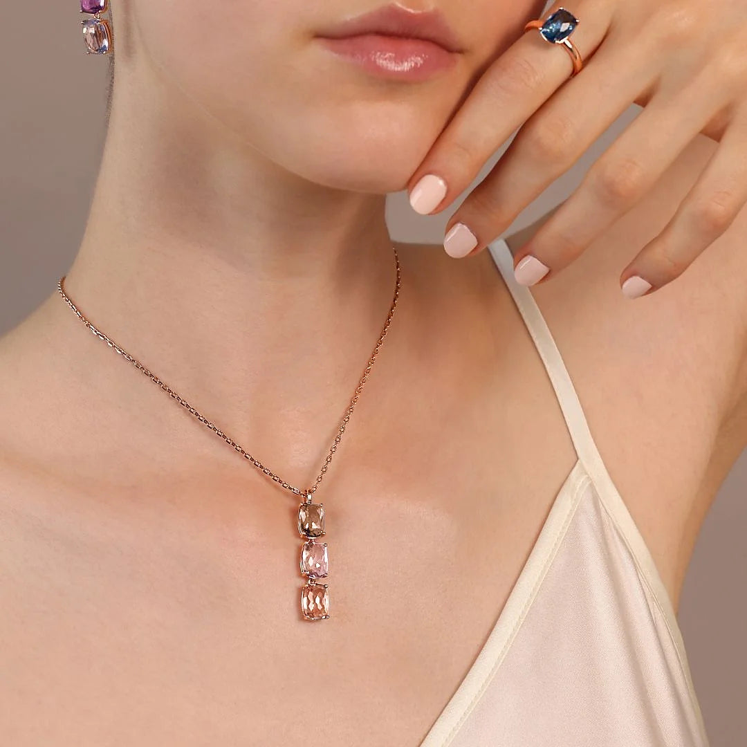 Collana Bronzallure in Golden Rosé, arricchita da un pendente composto da pietre rettangolari dal taglio brillante. Un gioiello dal fascino moderno e sofisticato.