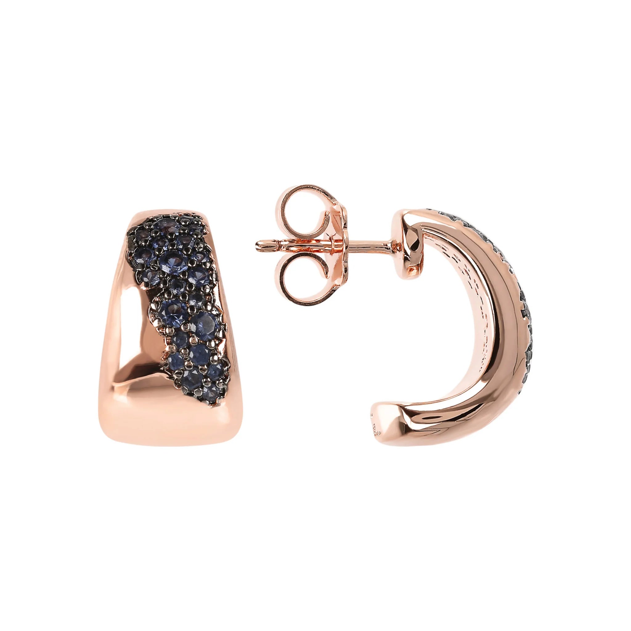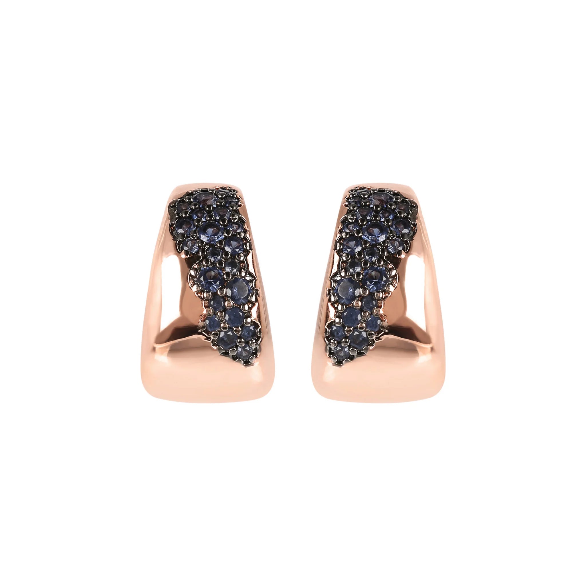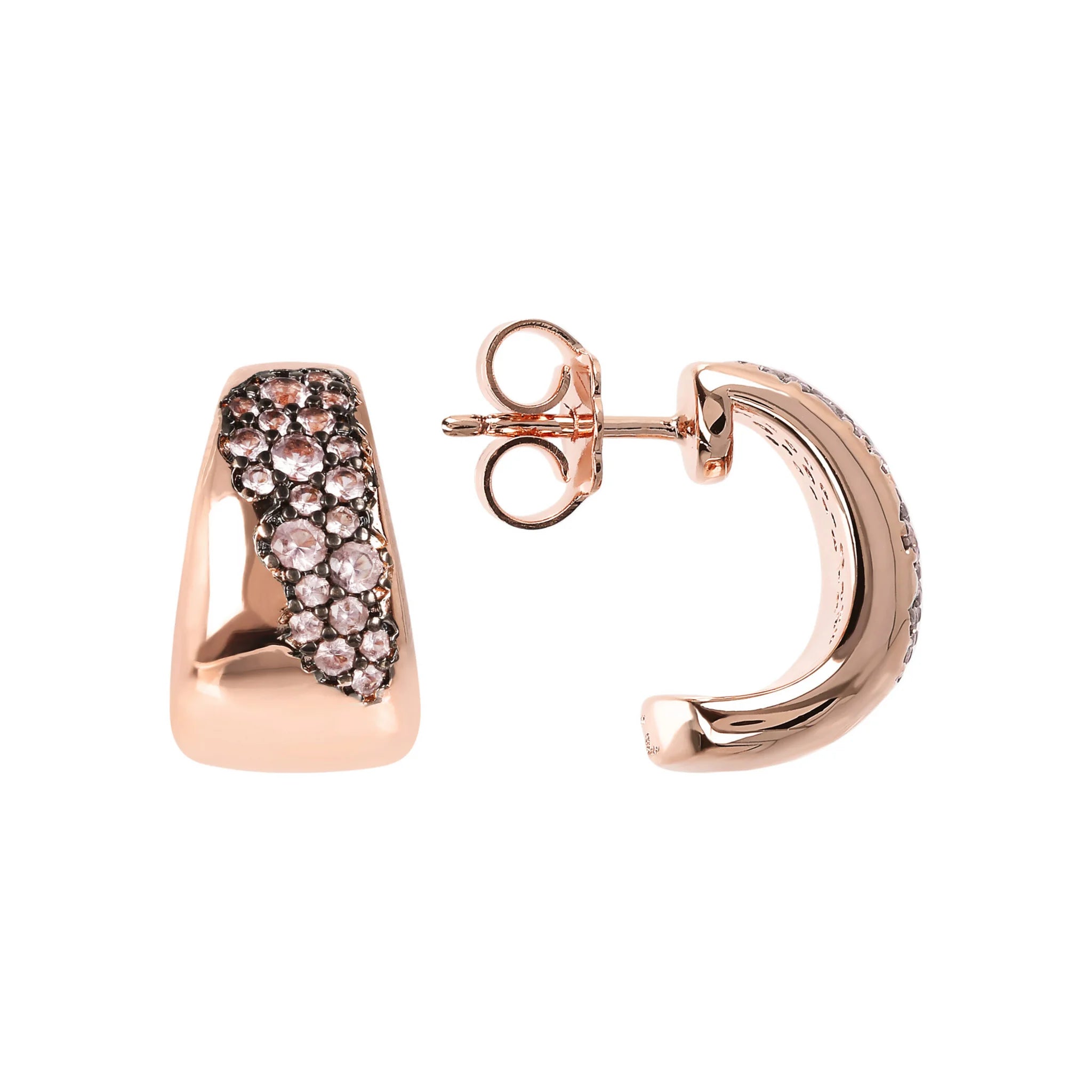 Orecchini a lobo Bronzallure realizzati in lega Golden Rosé, placcata oro rosa 18kt, contraddistinti da un dettaglio in pavé. Chiusura a perno e farfalla.