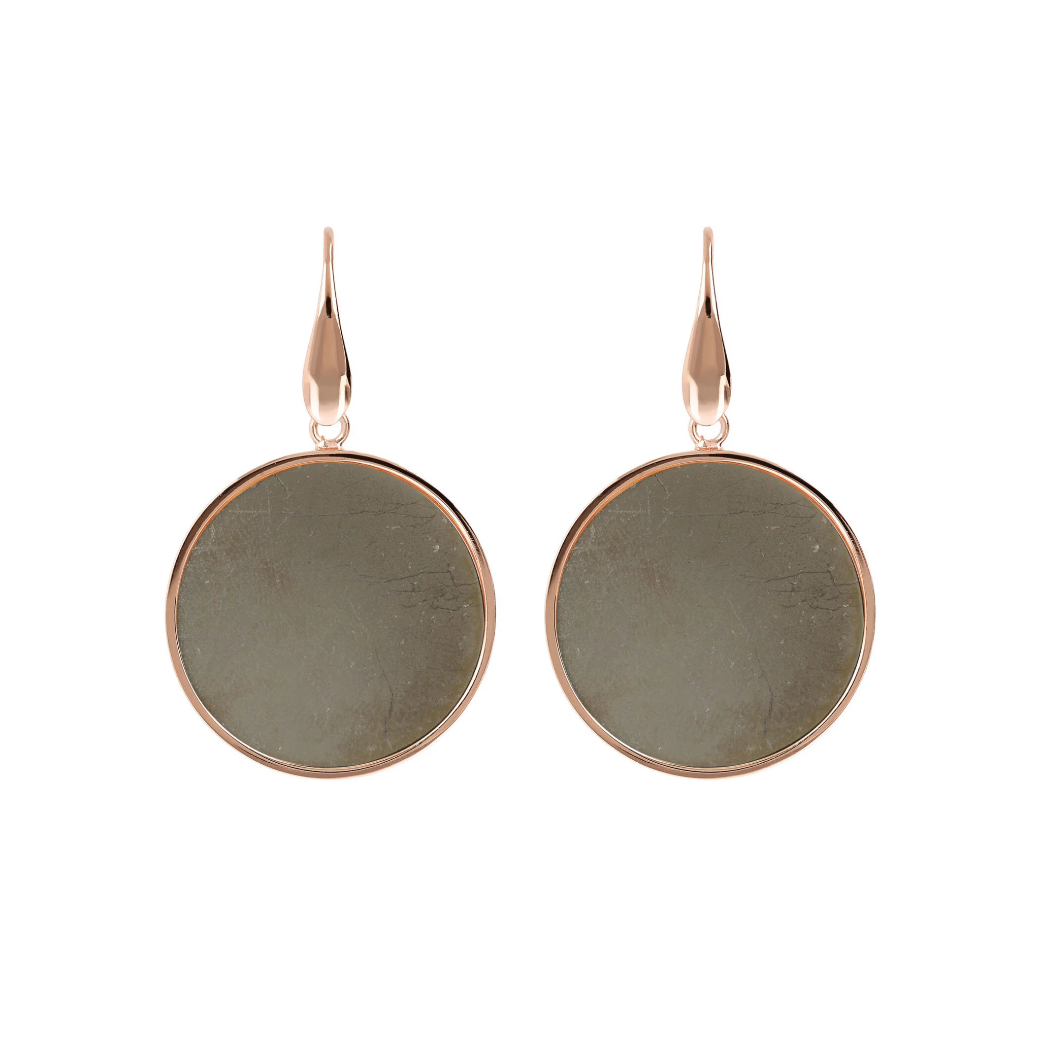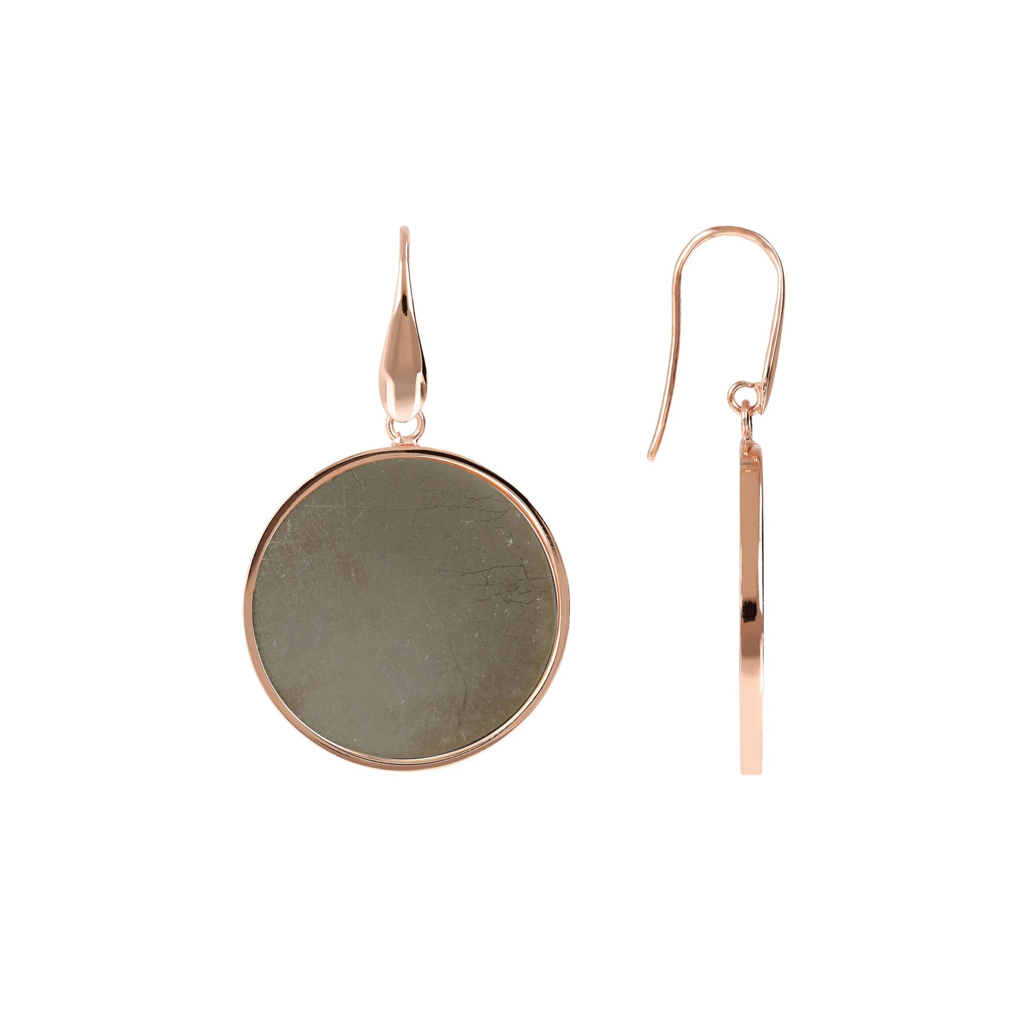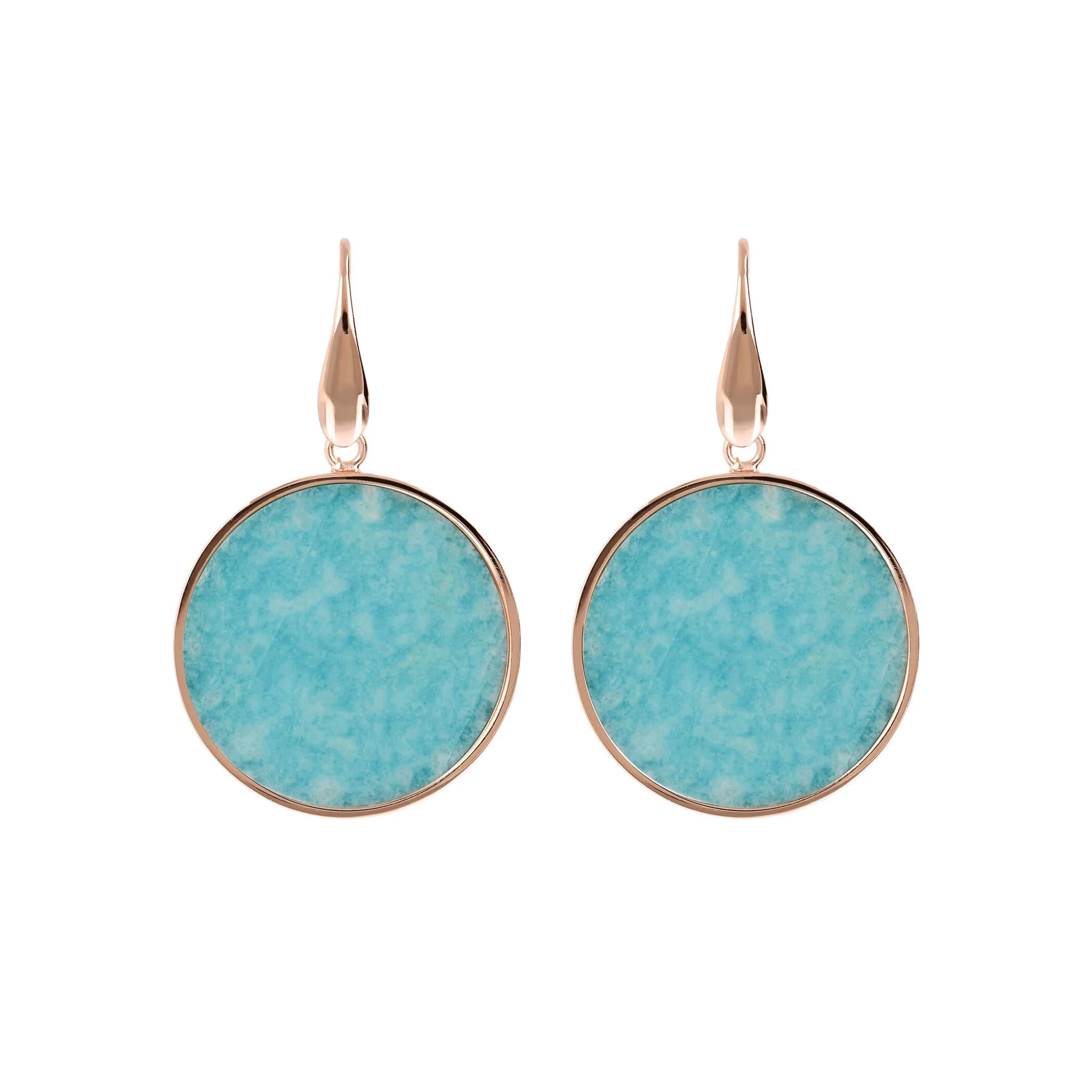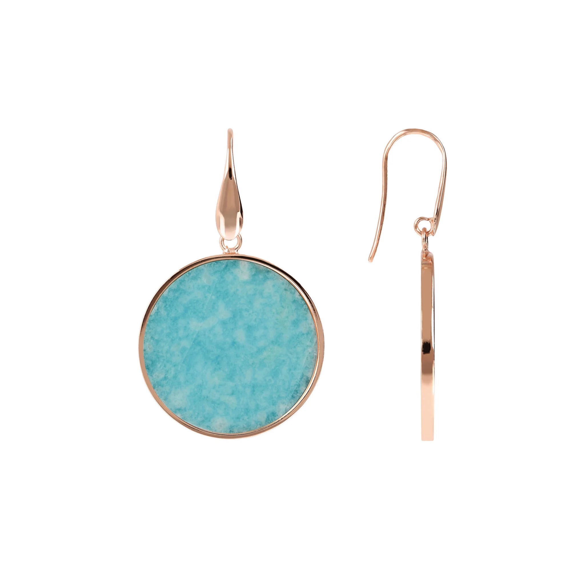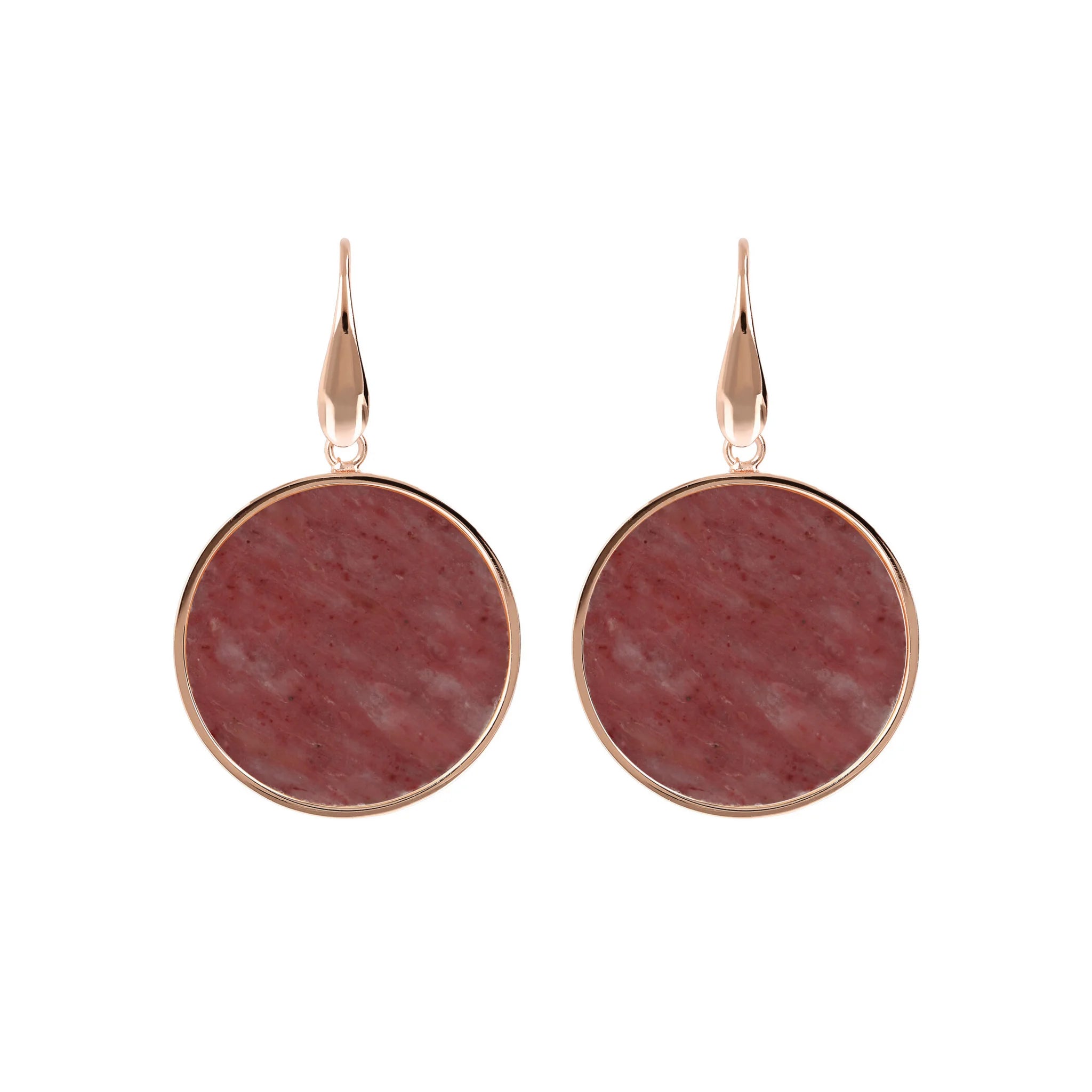 Orecchini pendenti Bronzallure realizzati in lega Golden Rosé, placcati oro rosa 18kt con disco in pietra naturale (2.5 cm) montato su base placcata oro rosa 18kt; chiusura ad amo.