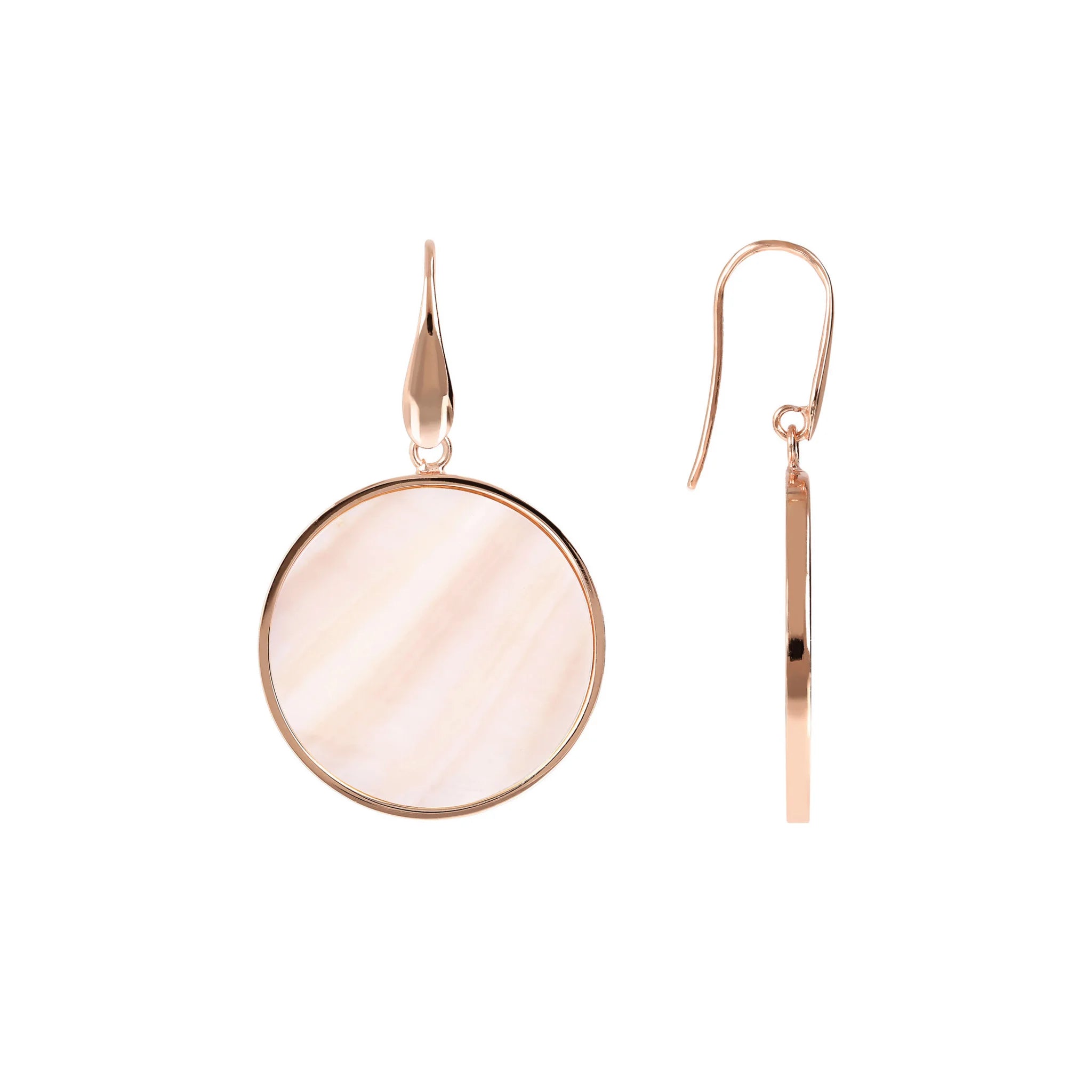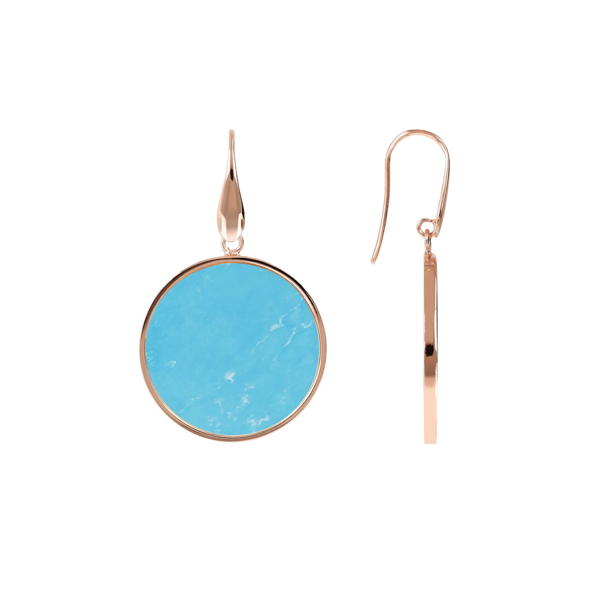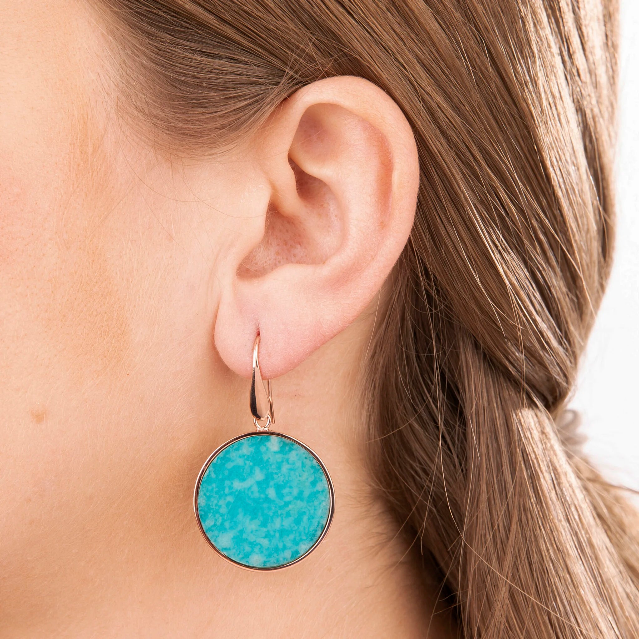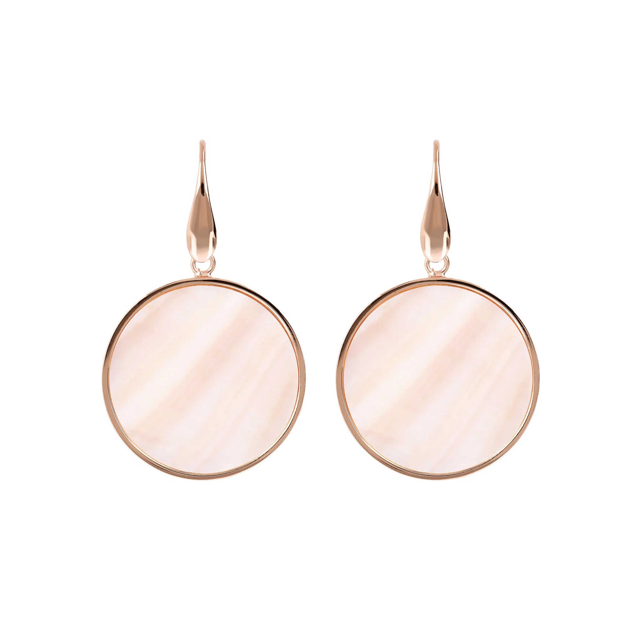 Orecchini pendenti Bronzallure realizzati in lega Golden Rosé, placcati oro rosa 18kt con disco in pietra naturale (2.5 cm) montato su base placcata oro rosa 18kt; chiusura ad amo.