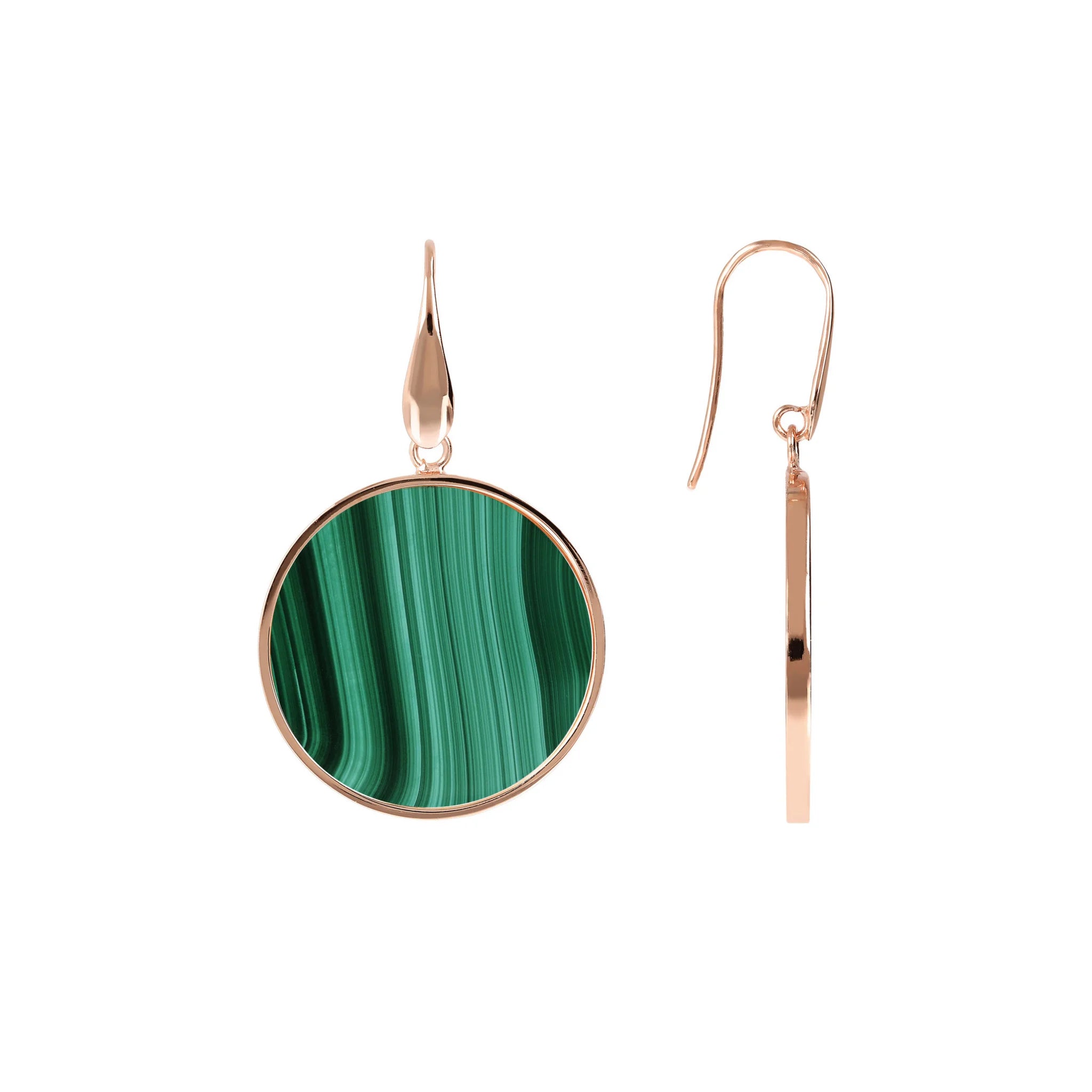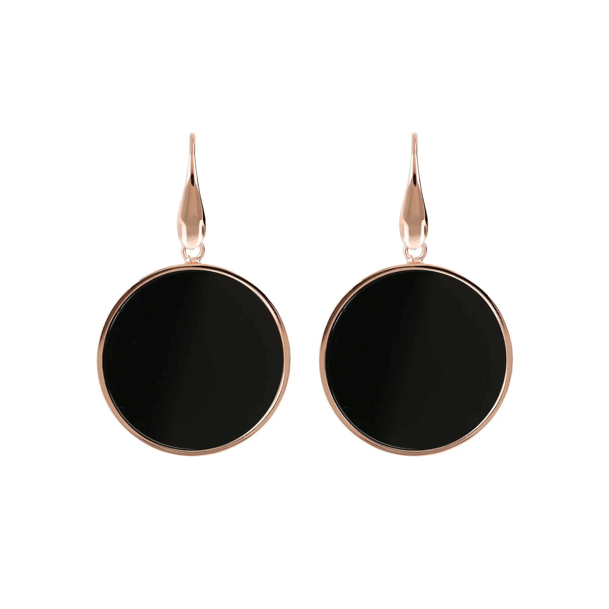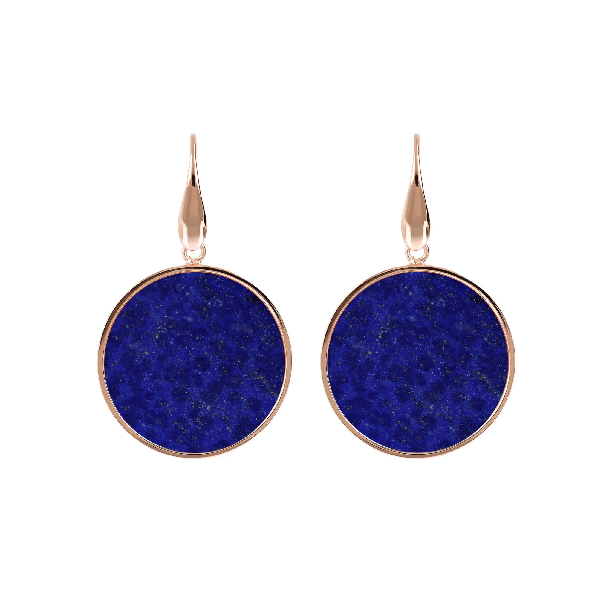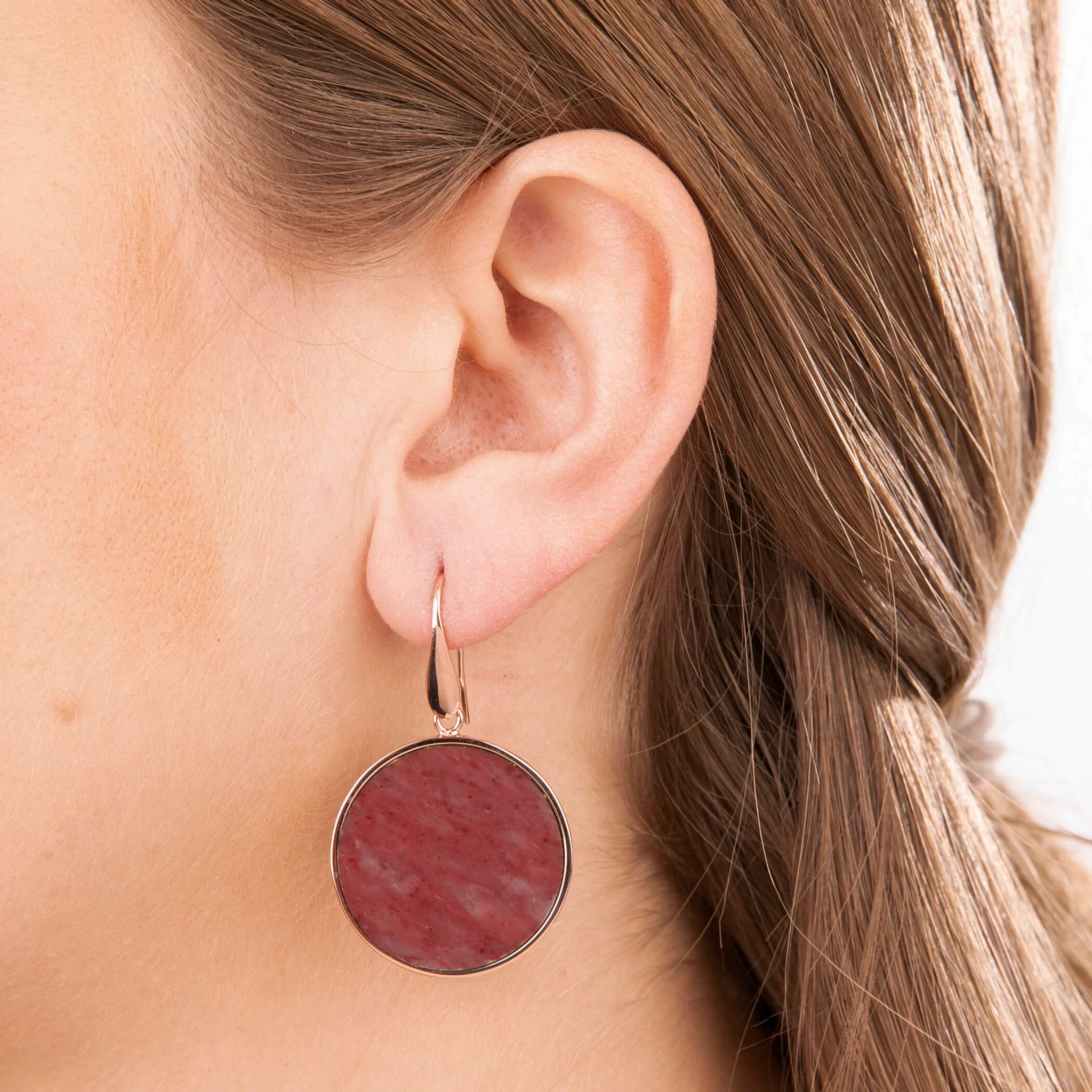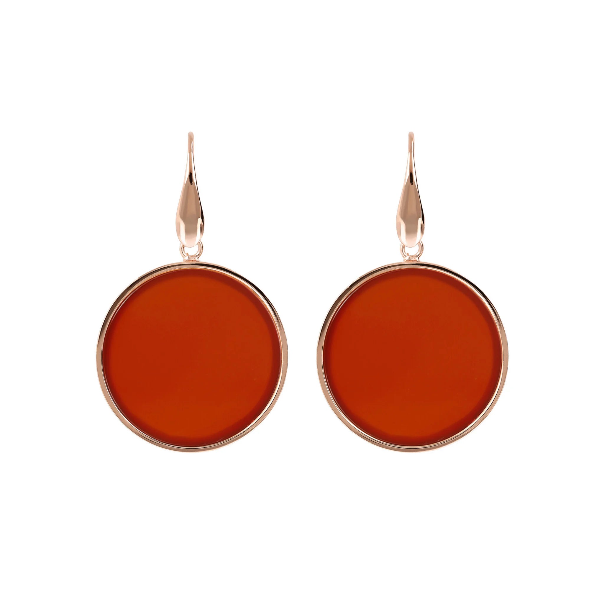 Orecchini pendenti Bronzallure realizzati in lega Golden Rosé, placcati oro rosa 18kt con disco in pietra naturale (2.5 cm) montato su base placcata oro rosa 18kt; chiusura ad amo.