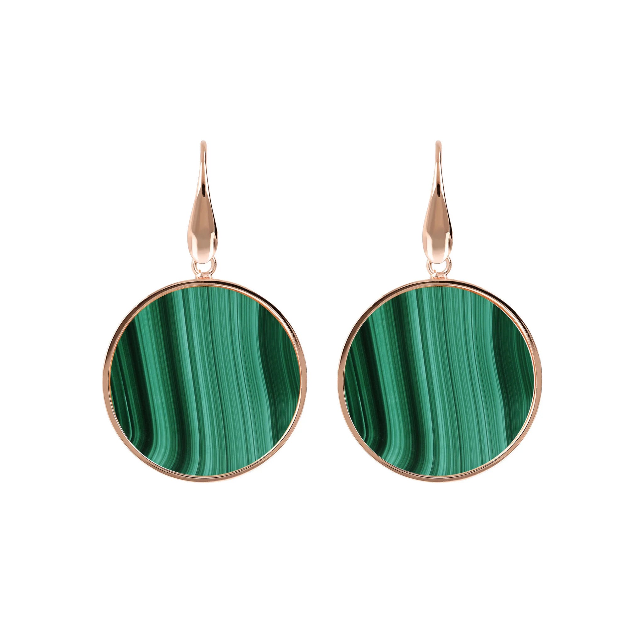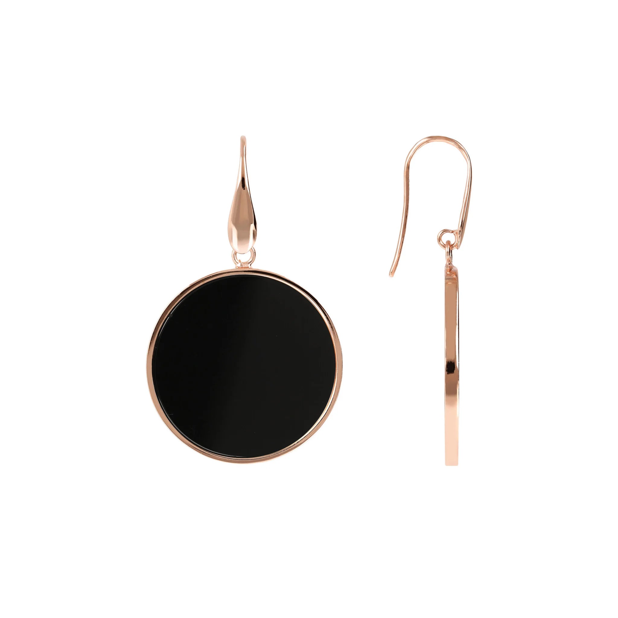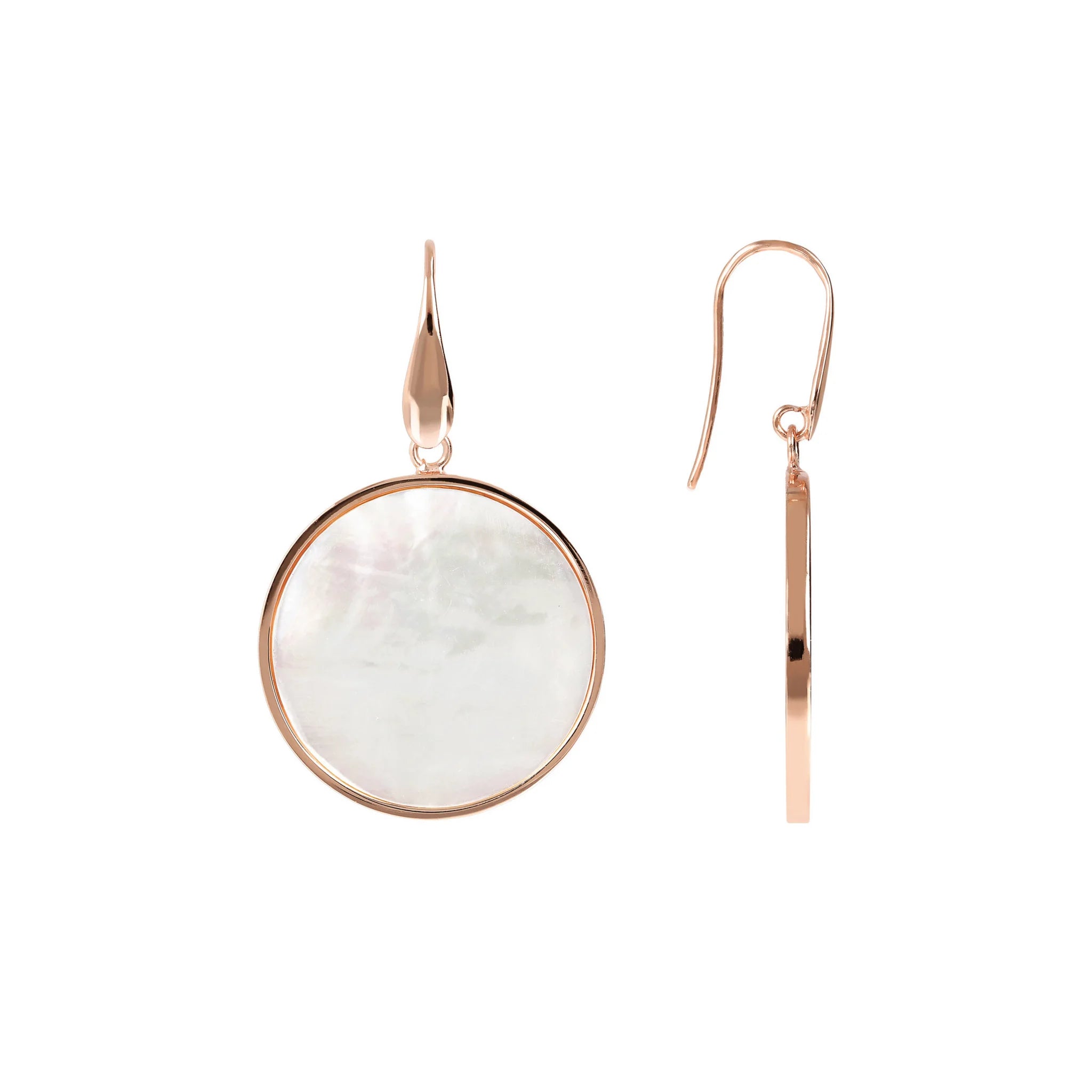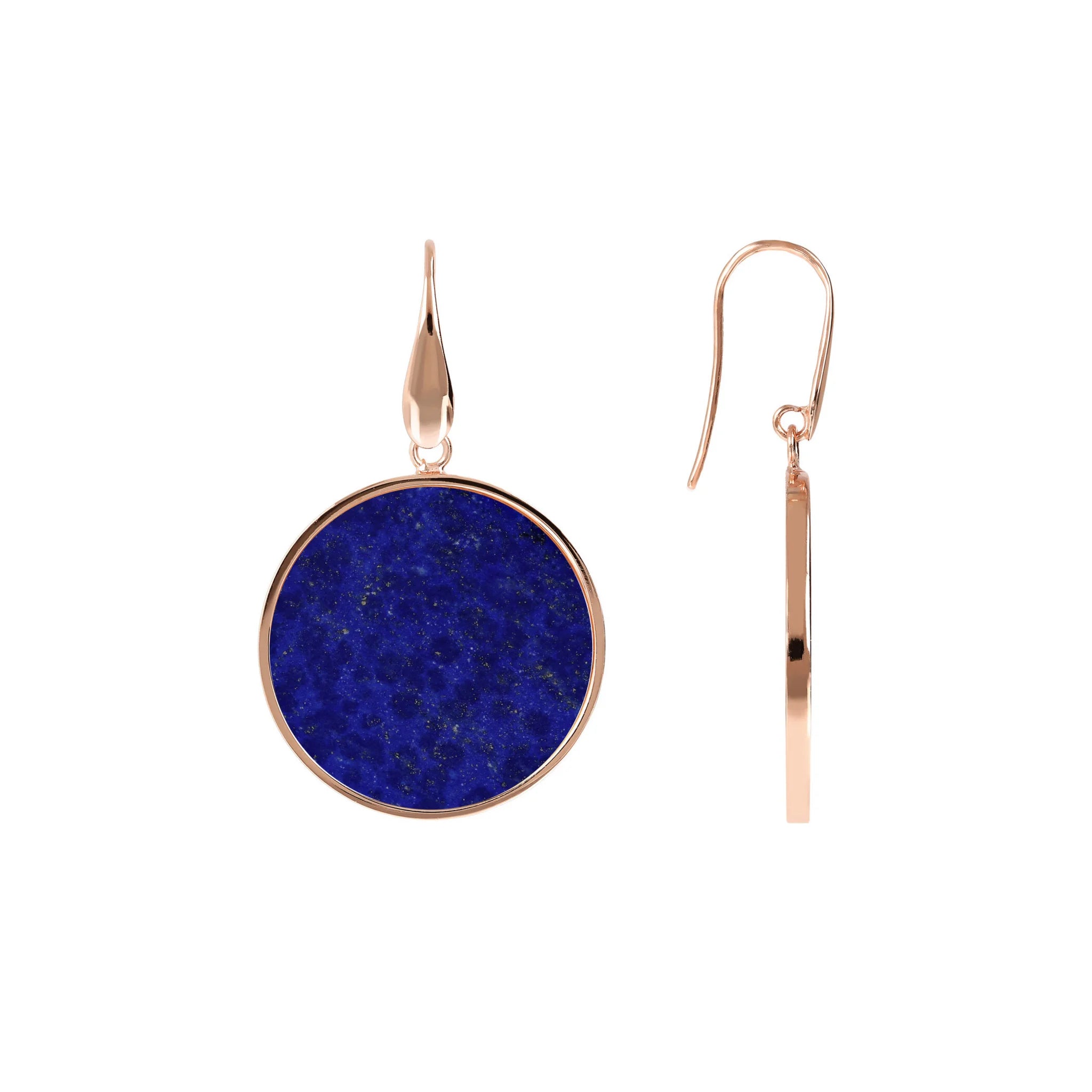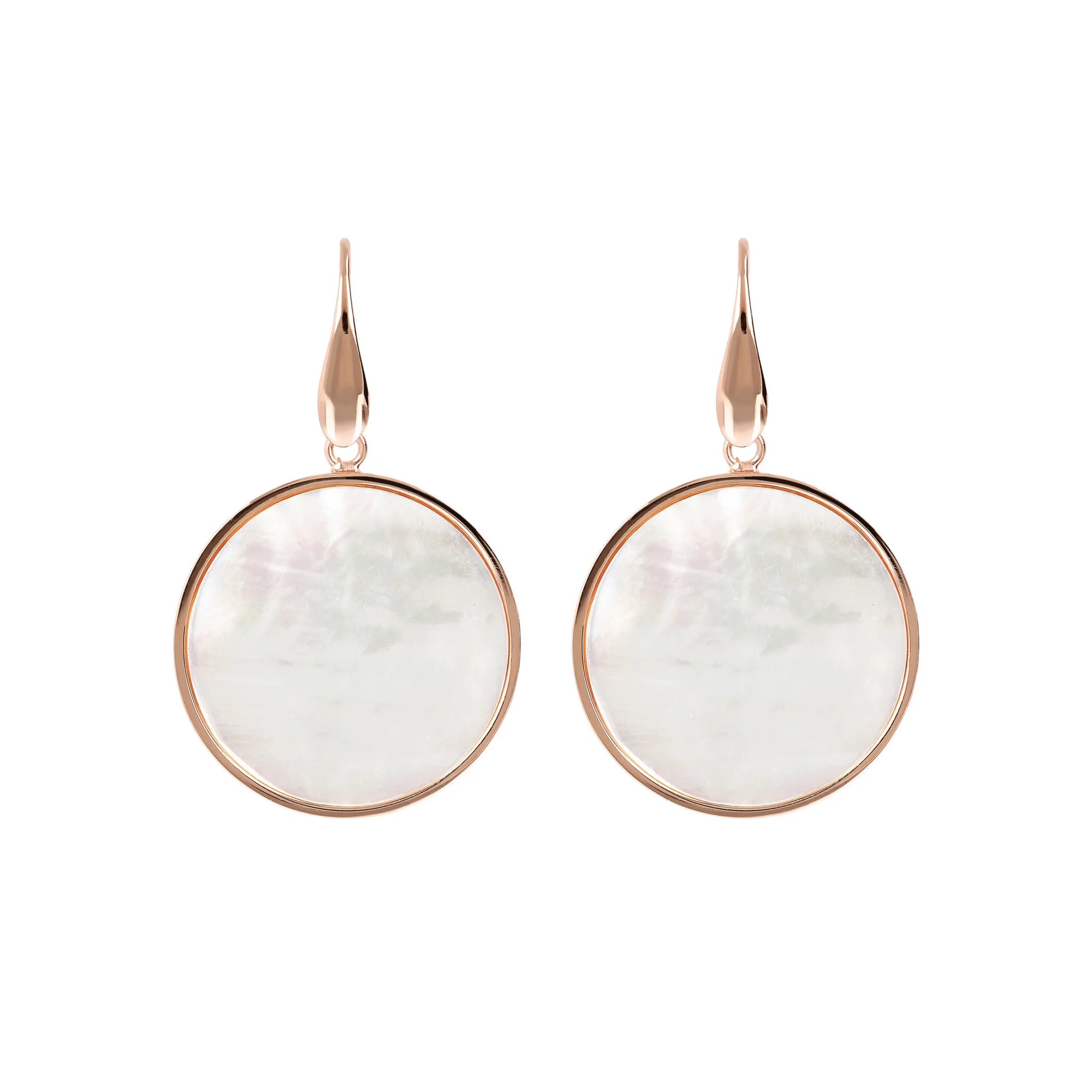 Orecchini pendenti Bronzallure realizzati in lega Golden Rosé, placcati oro rosa 18kt con disco in pietra naturale (2.5 cm) montato su base placcata oro rosa 18kt; chiusura ad amo.