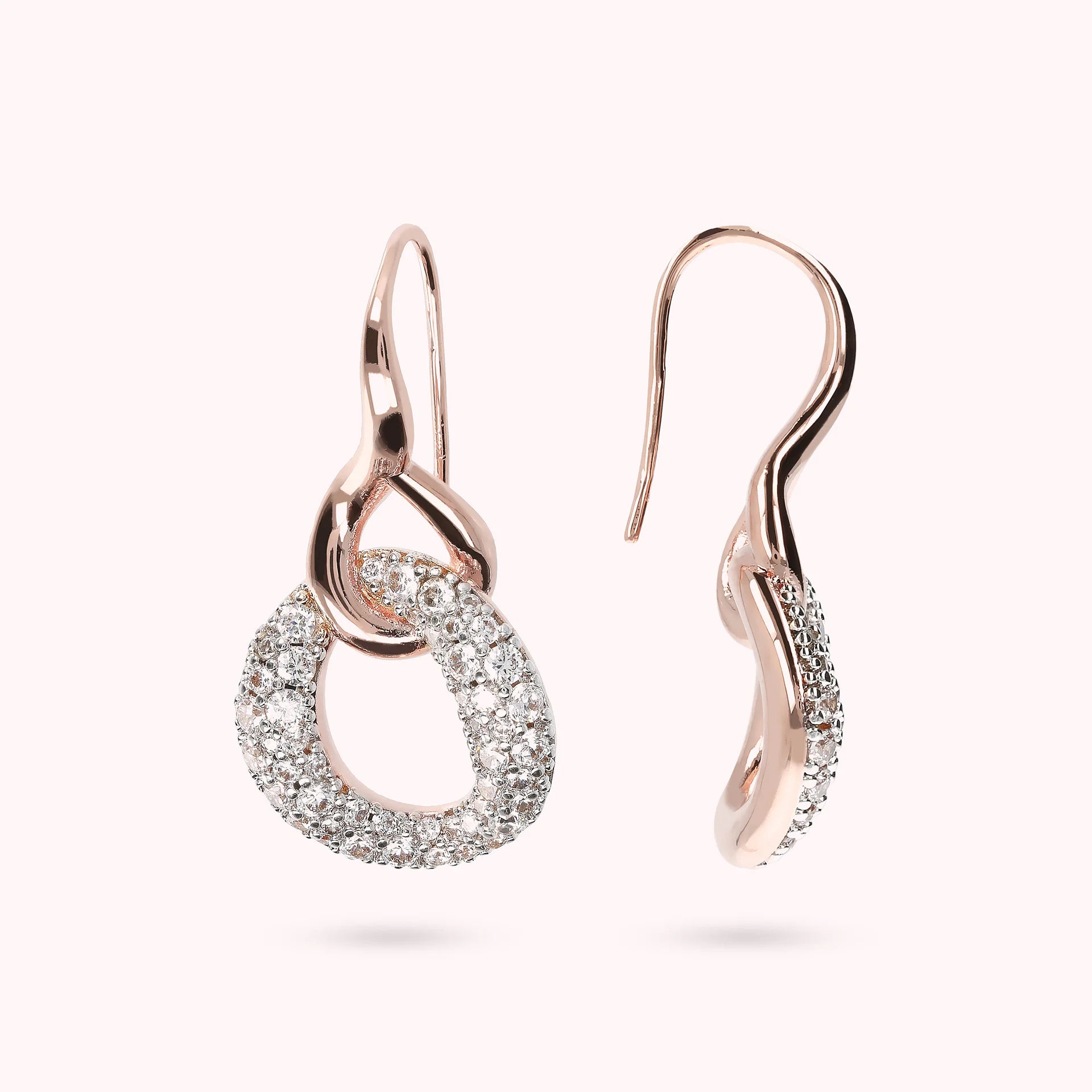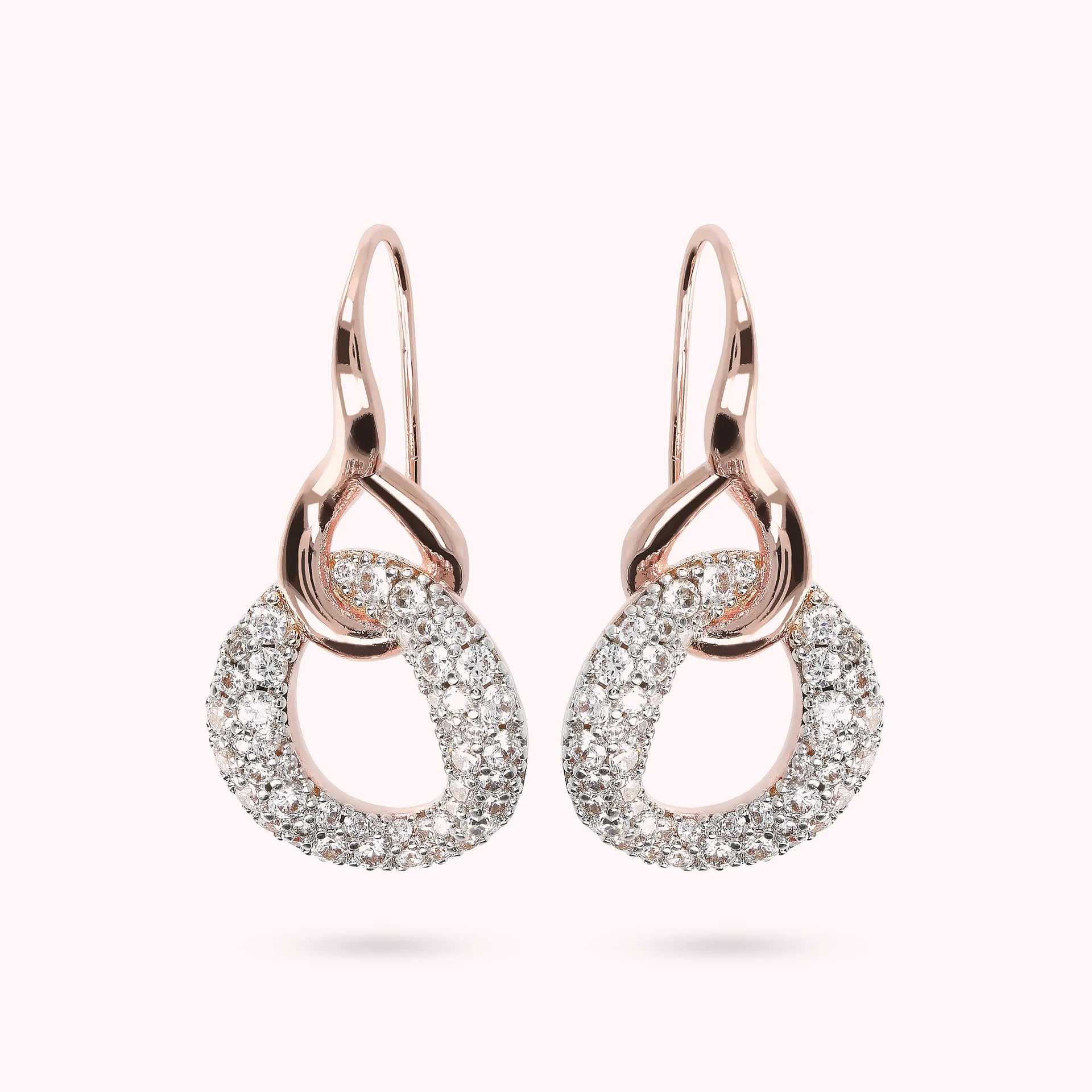 Orecchini pendenti Bronzallure realizzati in lega Golden Rosé, placcati oro rosa 18kt, impreziositi da ciondolo ricoperto da cubic zirconia, qualità luminosa, color bianco, lunghezza di 2.8 cm; chiusura ad amo. Creazione elegante, dal design perfetto per far brillare il tuo look.