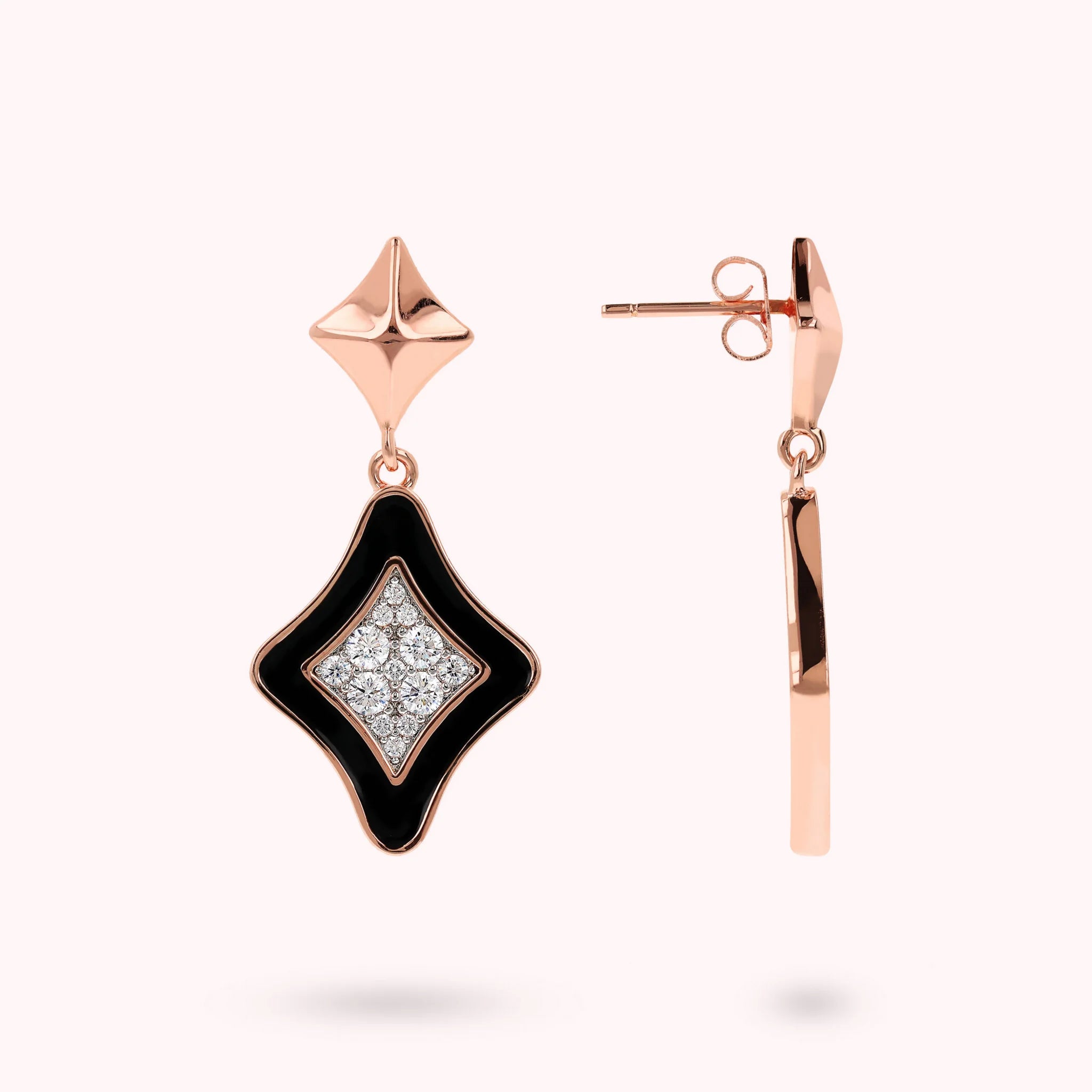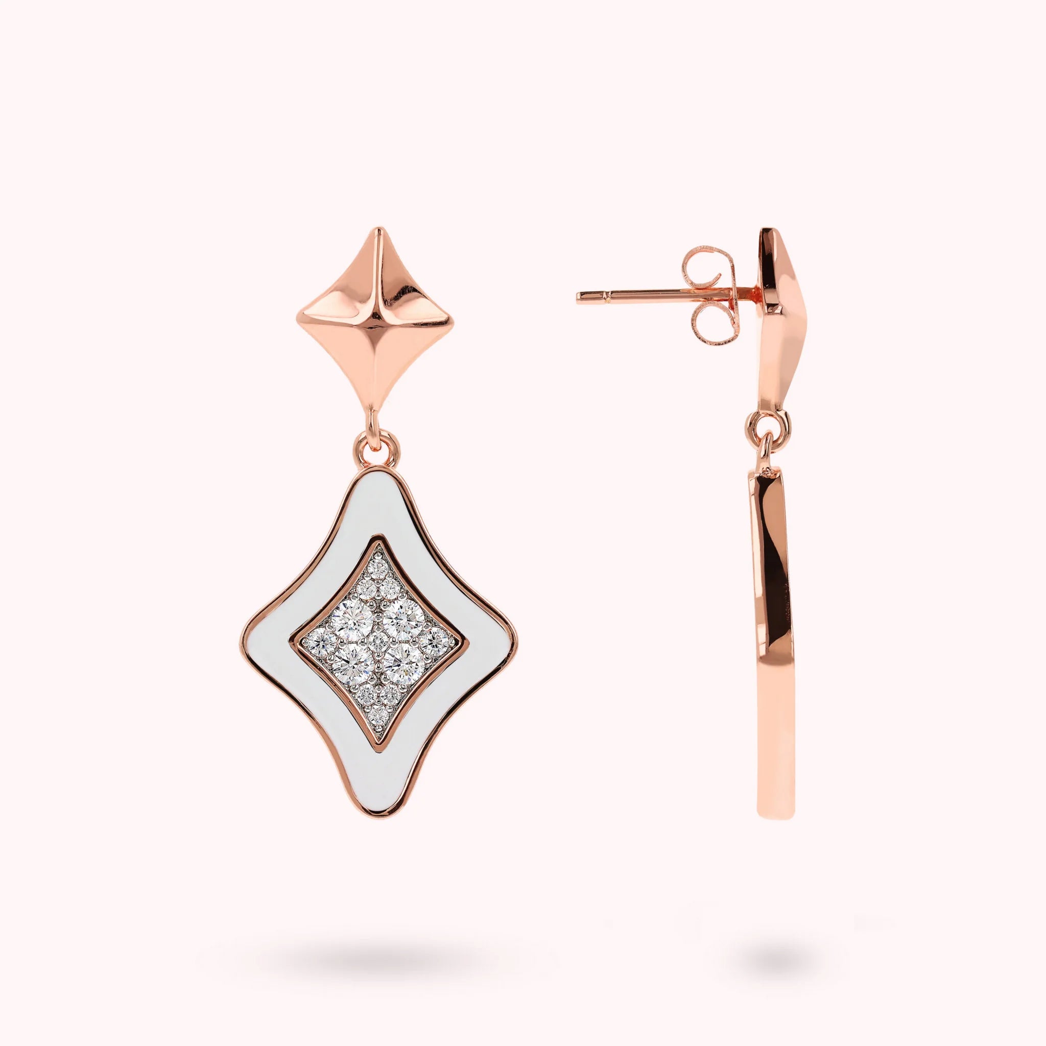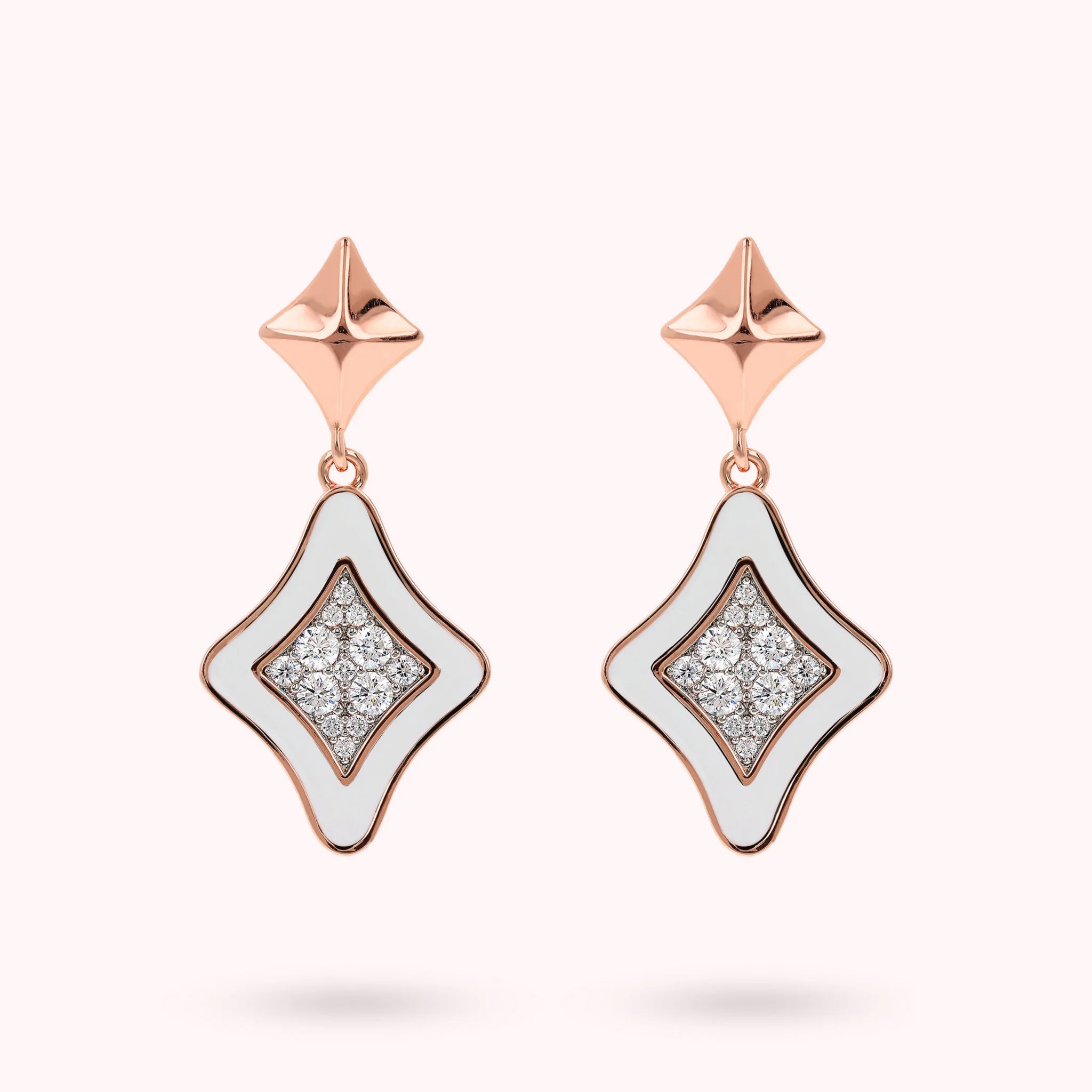 Orecchini Pendenti Smaltati con Doppia Étoile e Pavé in Cubic Zirconia