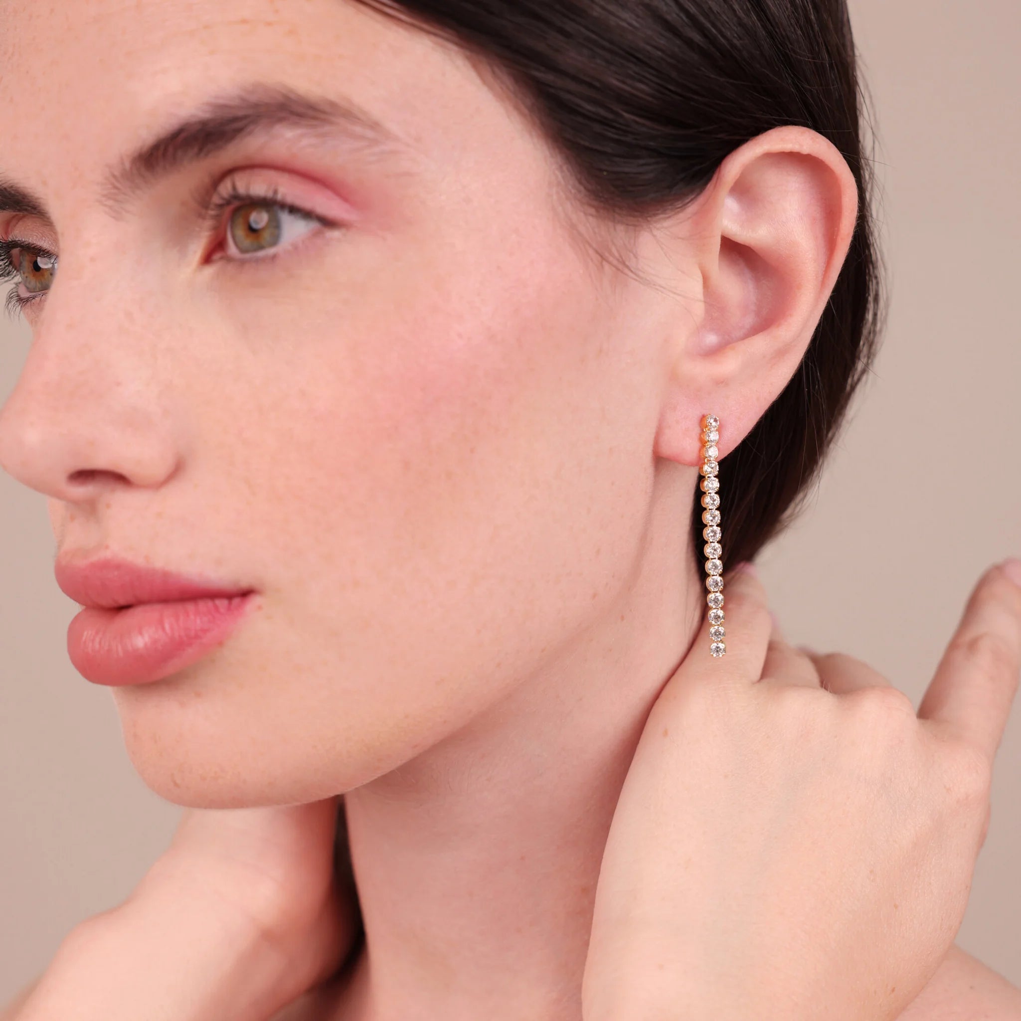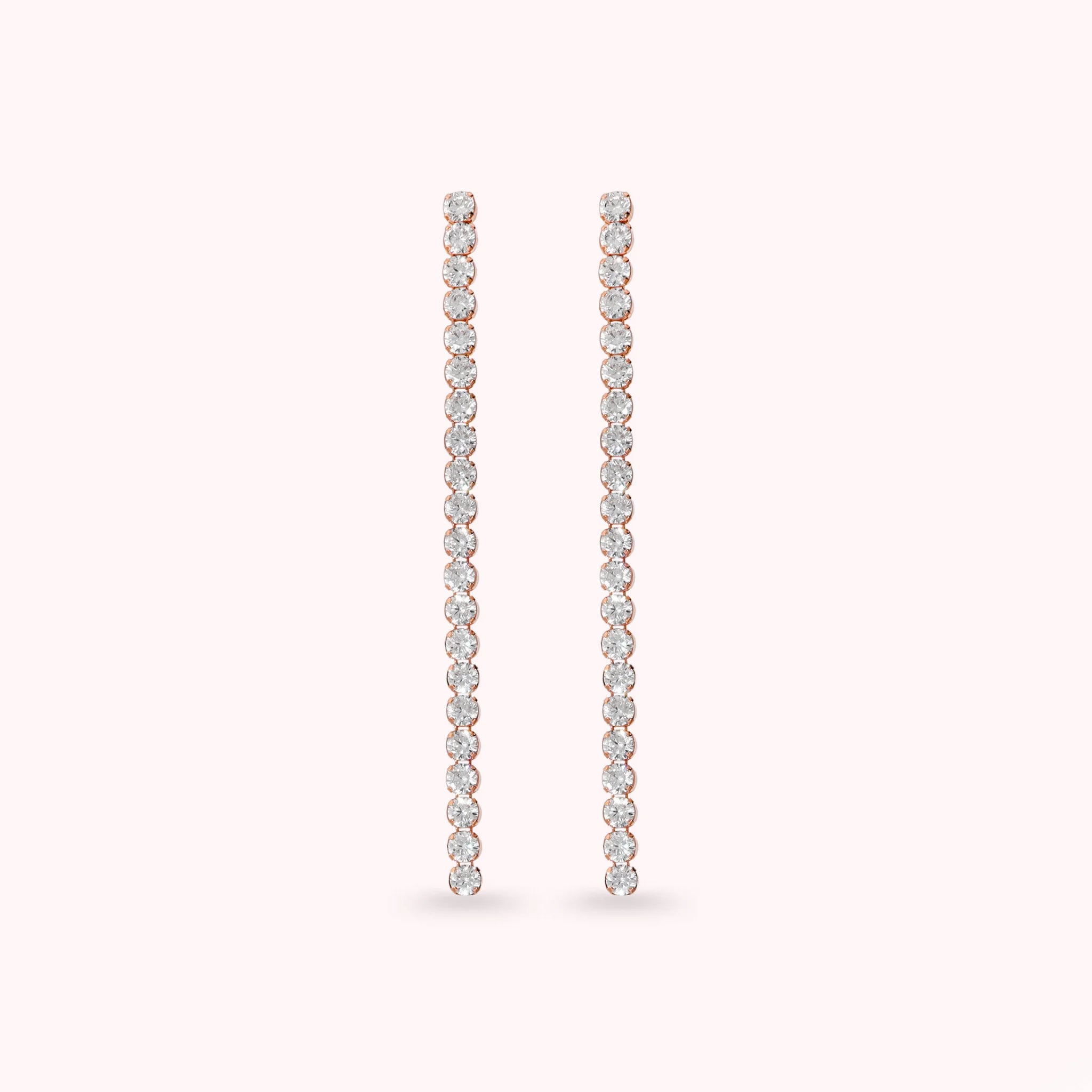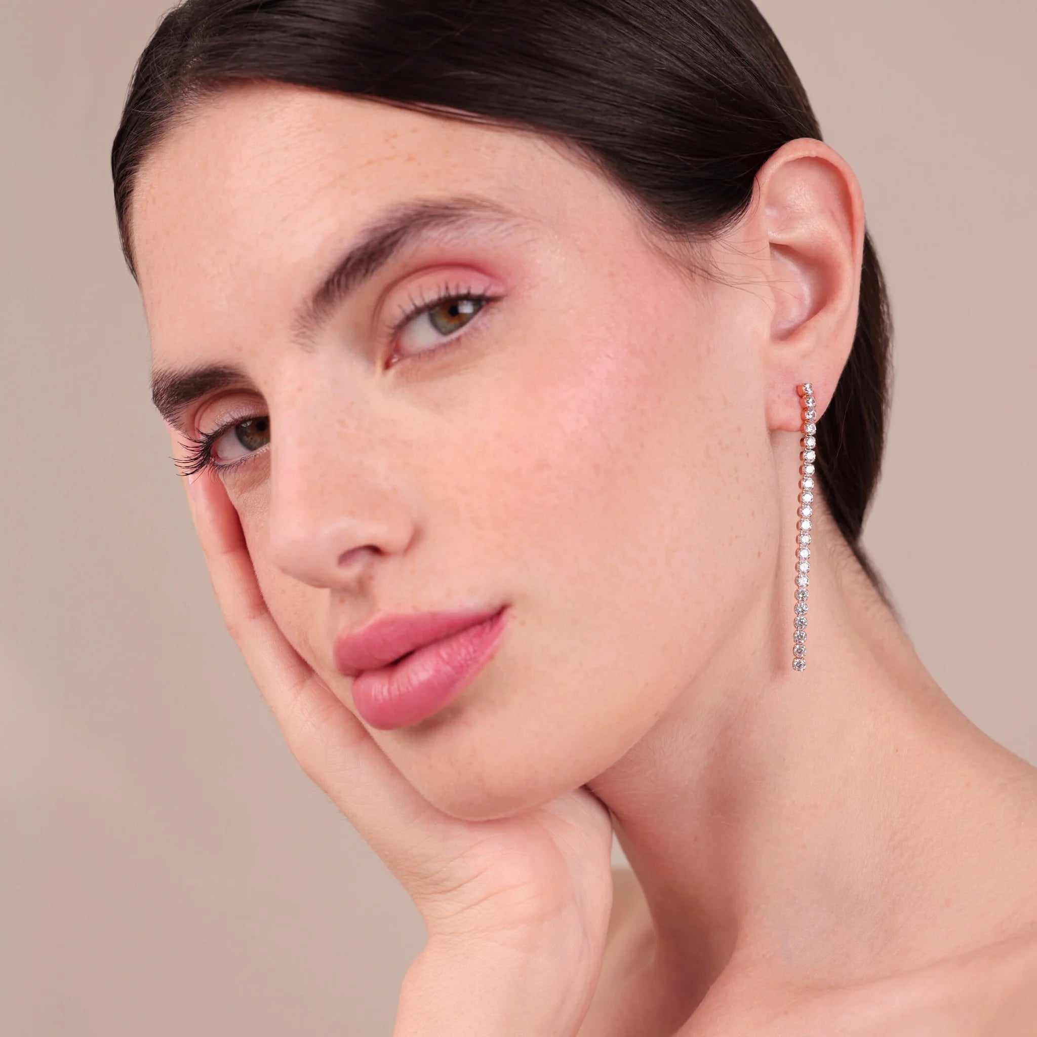 Orecchini tennis Bronzallure realizzati in lega Golden Rosé, placcata Oro 18kt o Rodio, con cubic zirconia (3mm), qualità luminosa. Chiusura a perno e farfalla. Disponibili in due misure: Small (5 cm) e Large (7 cm).
