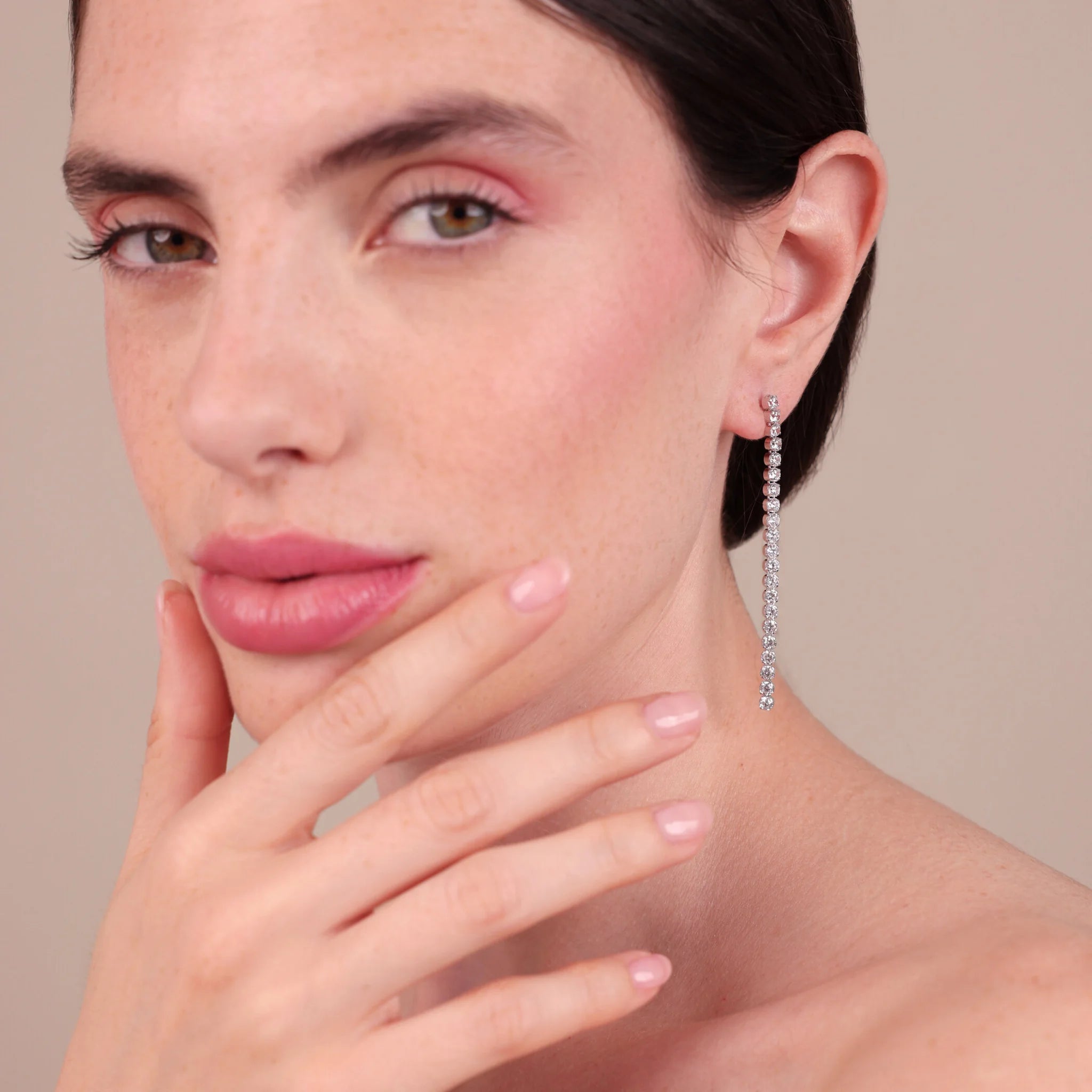 Orecchini tennis impreziositi da cubic zirconia dal bagliore raffinato, riflettono la perfezione di un design senza tempo. Un tocco di brillantezza discreta, ideale per ogni momento.