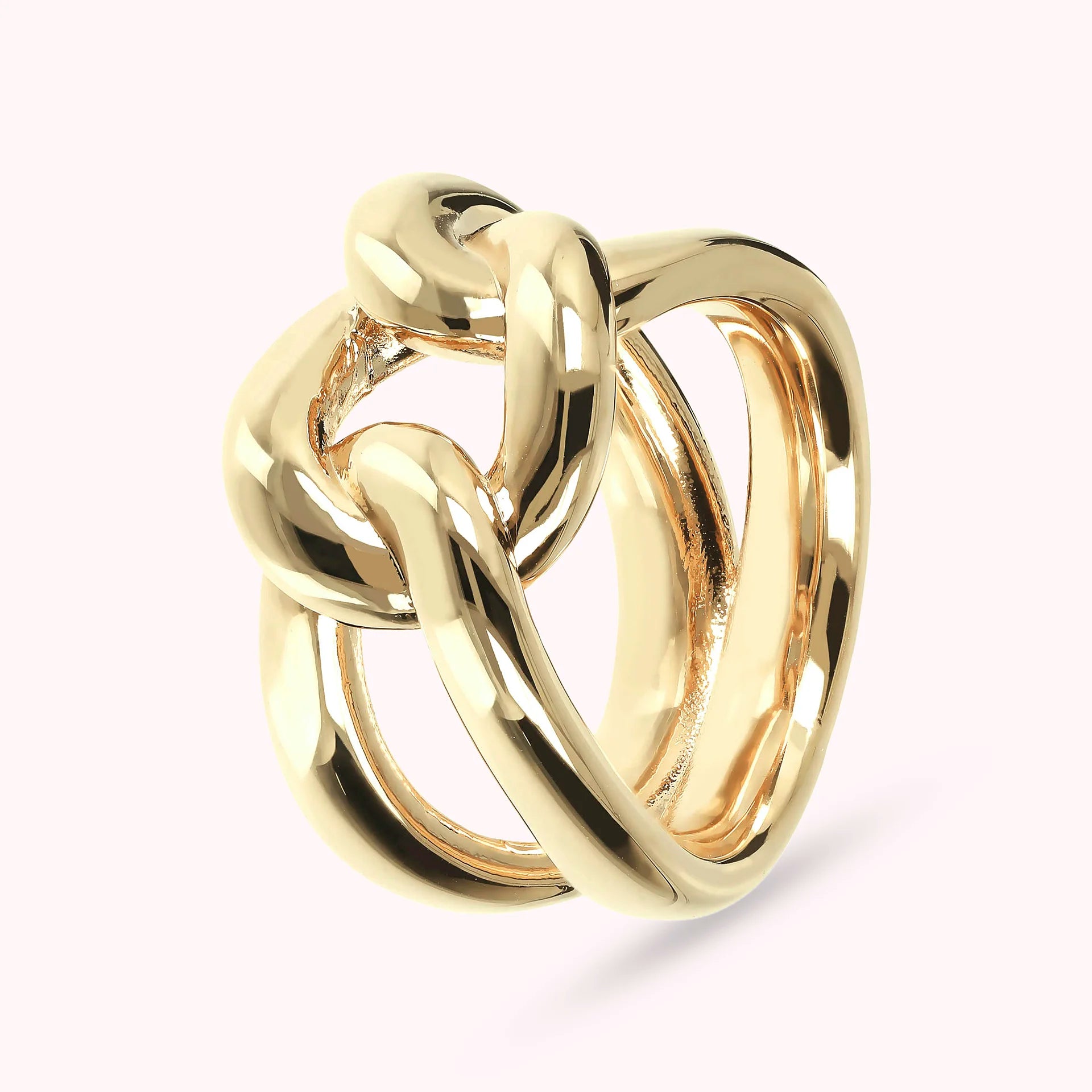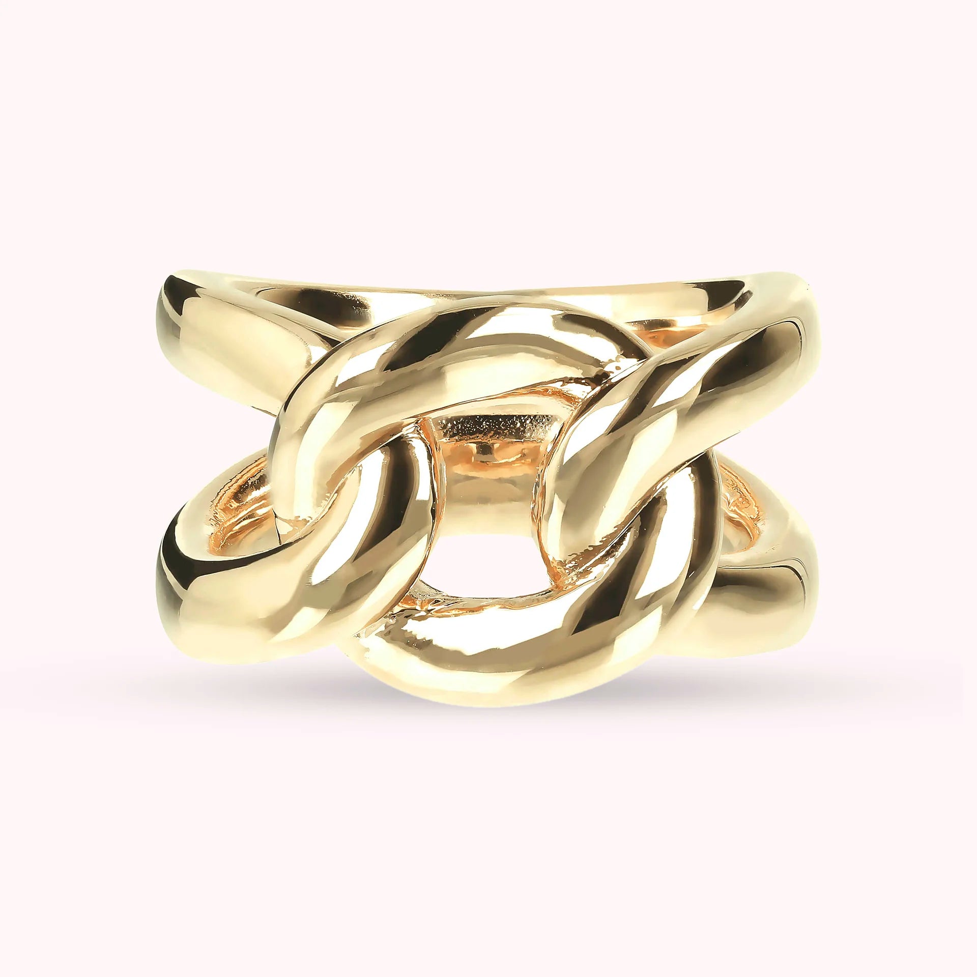 Anello a fascia Bronzallure realizzato in lega Golden Rosé, placcato oro giallo 18kt, impreziosito da una maglia intrecciata.