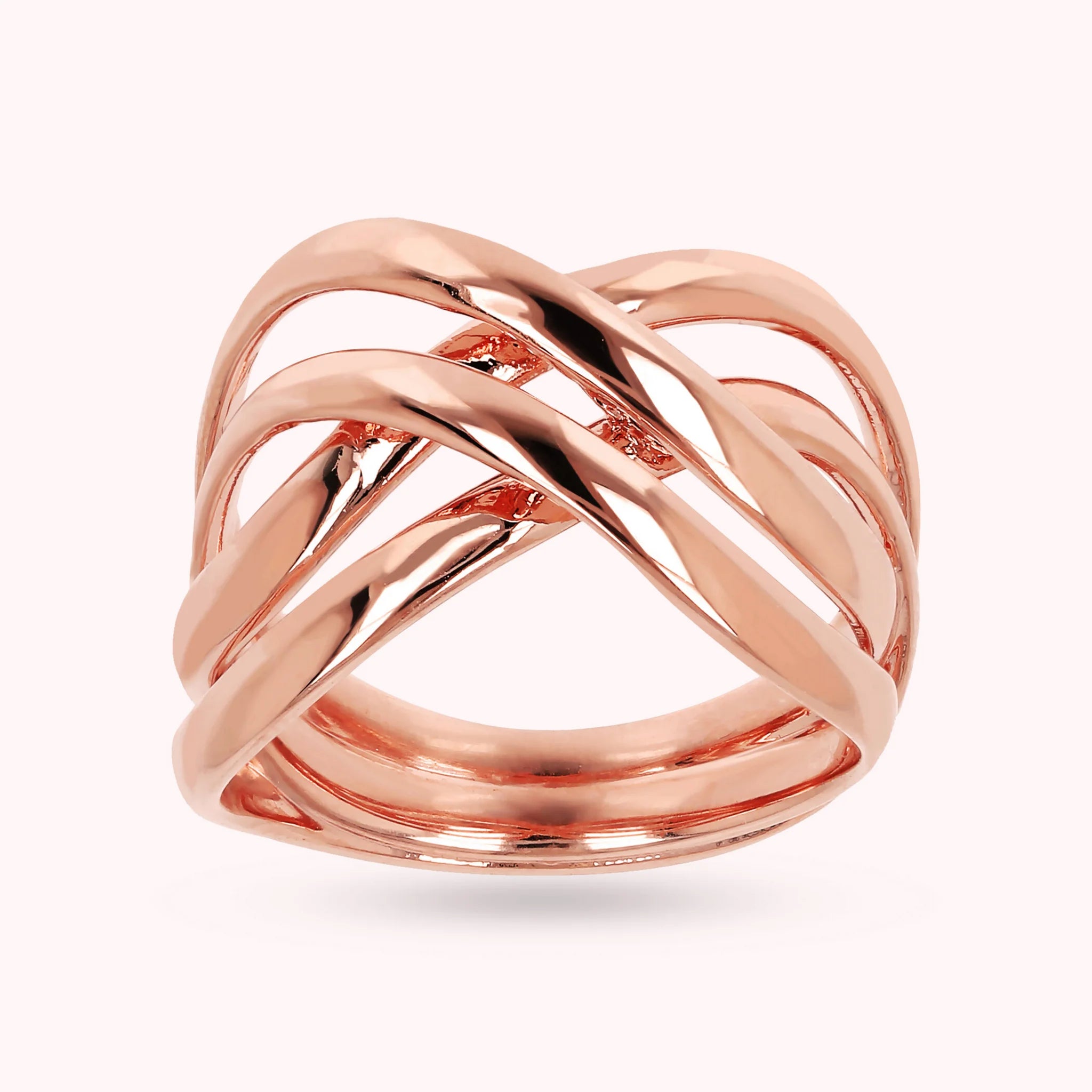 Anello a fascia Bronzallure realizzato in lega Golden Rosé, placcata oro rosa 18kt, dal design intrecciato.