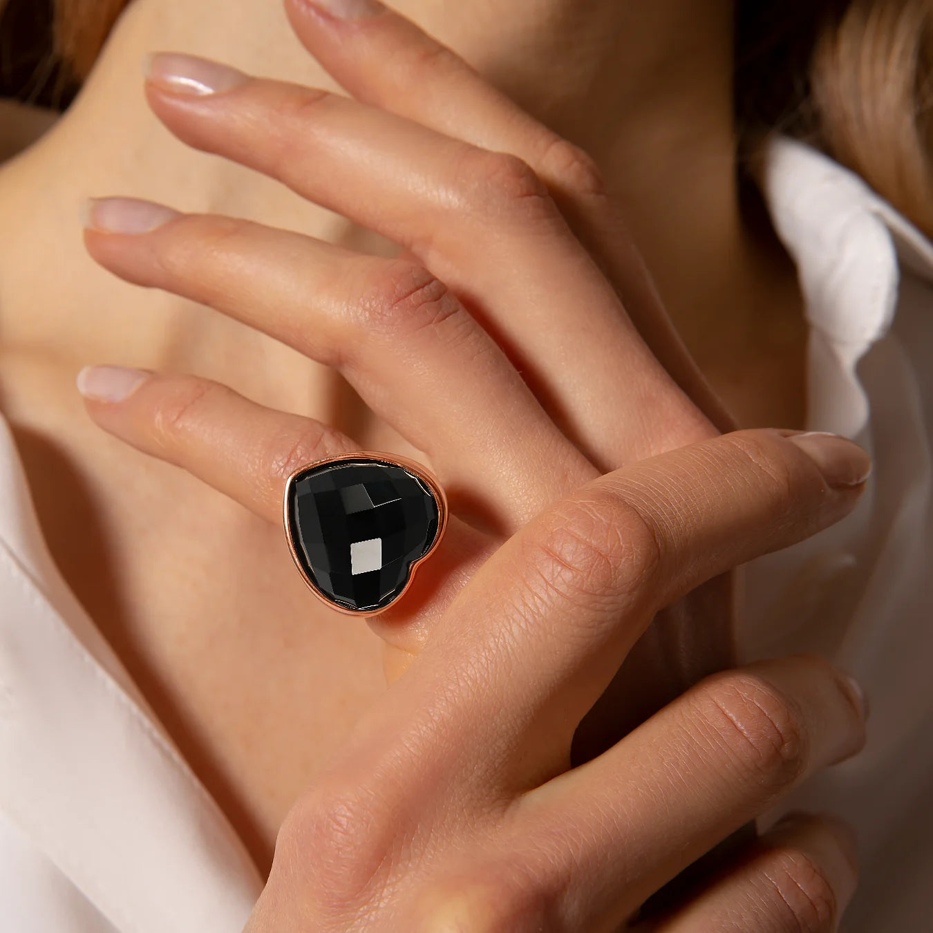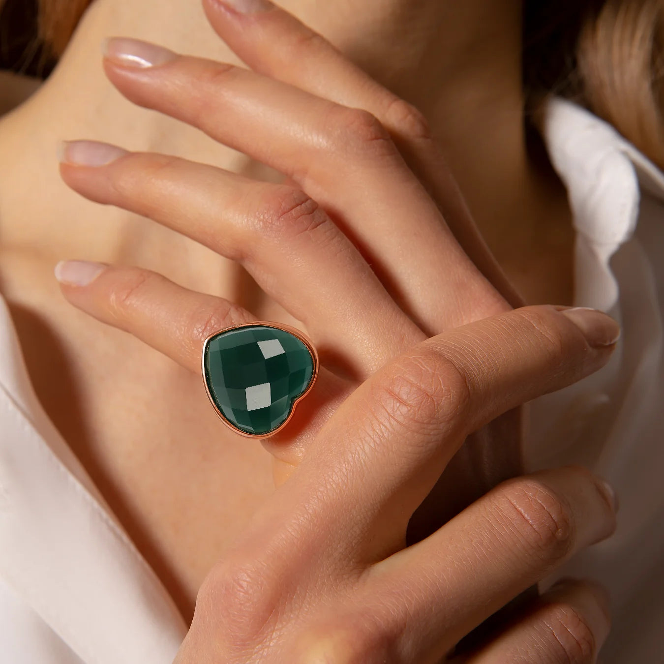 Anello Chevalier con Cuore in Pietra Naturale Sfaccettata