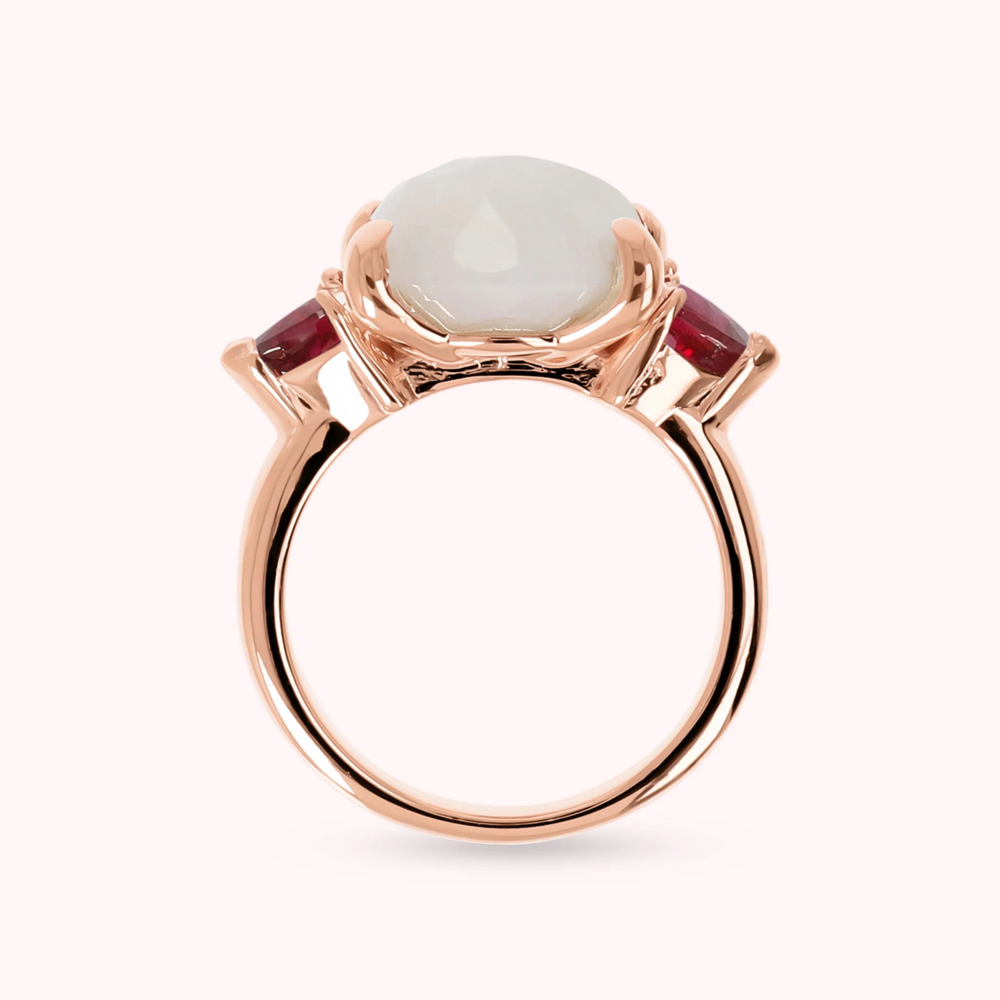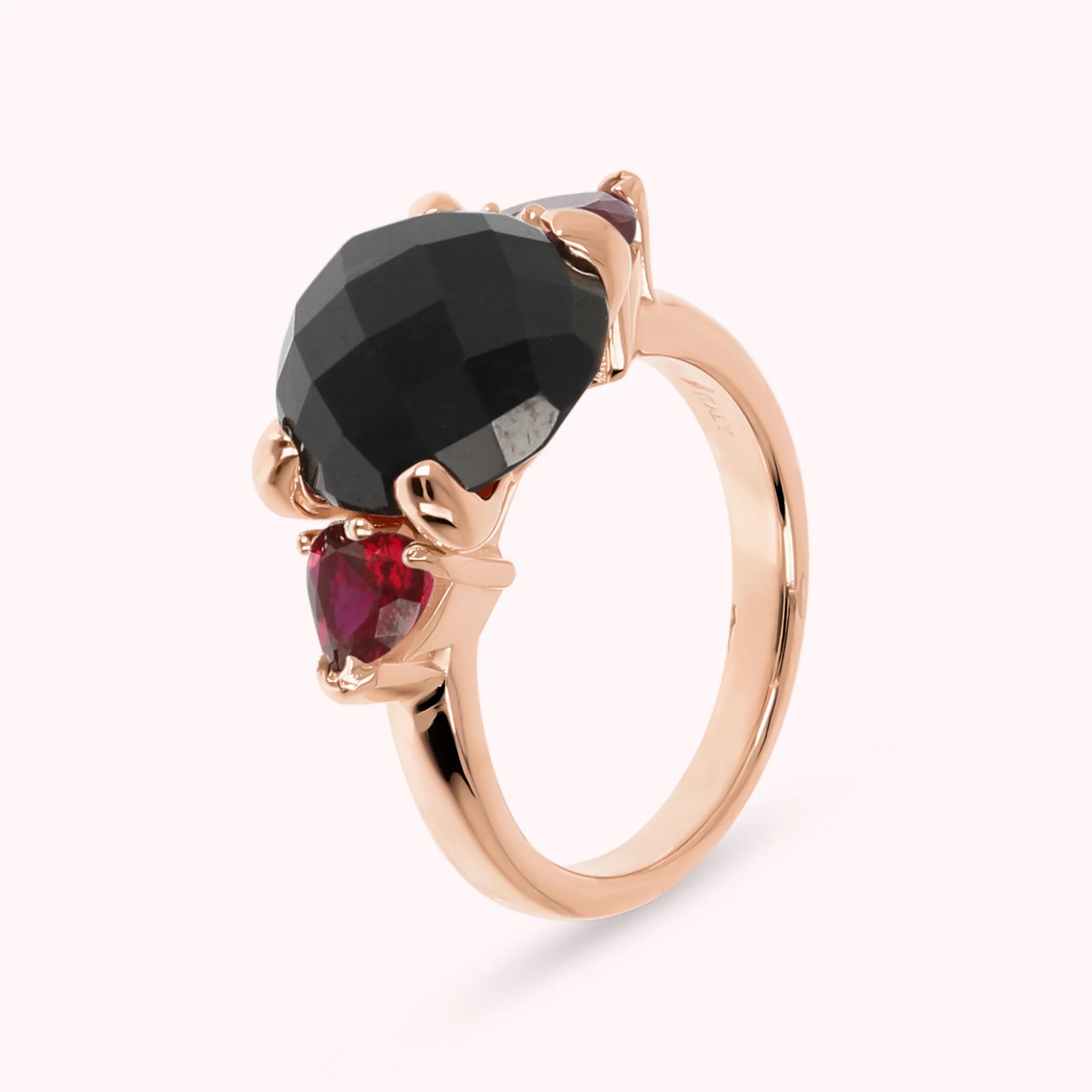 Anello Cocktail con Pietra Naturale e Cuore in Cubic Zirconia
