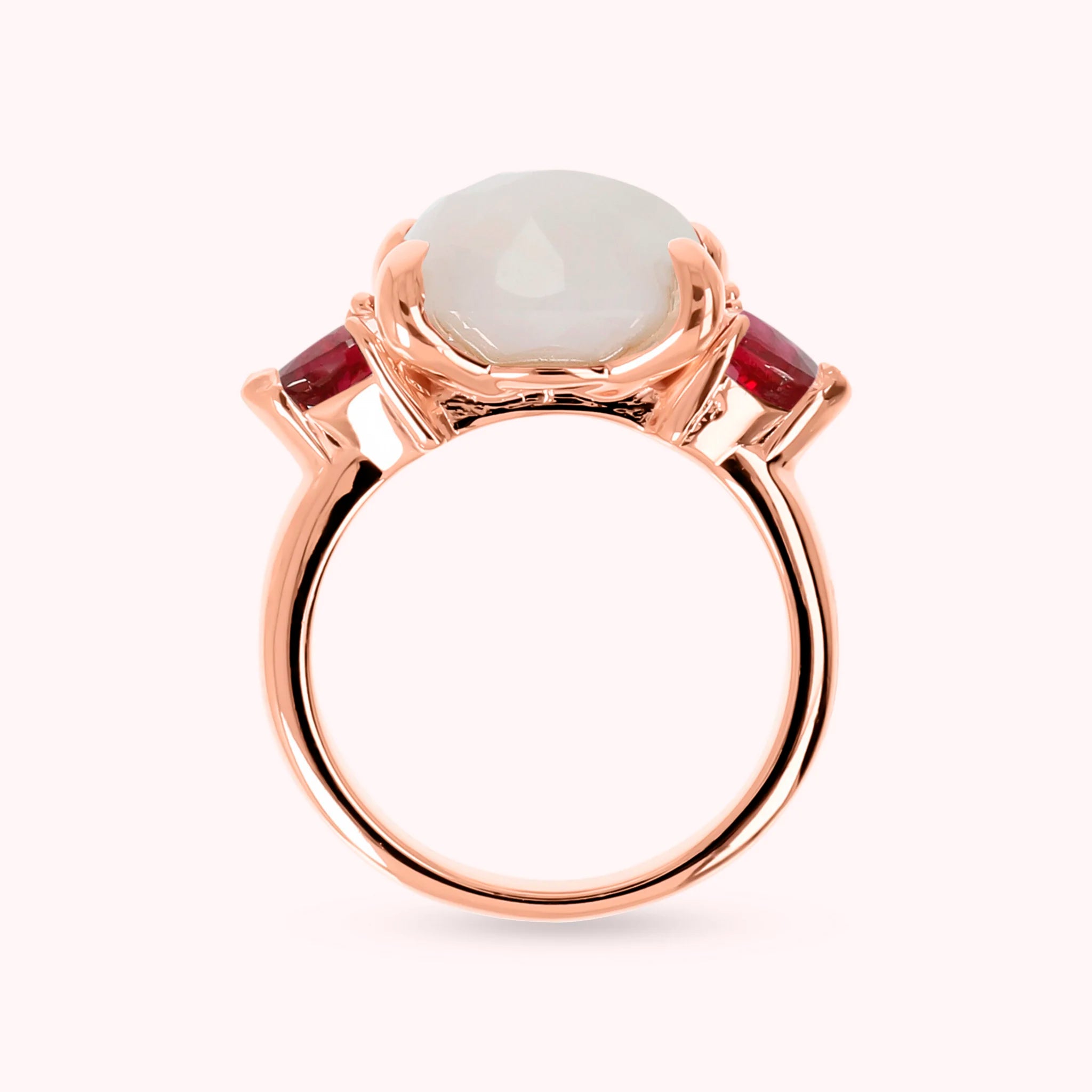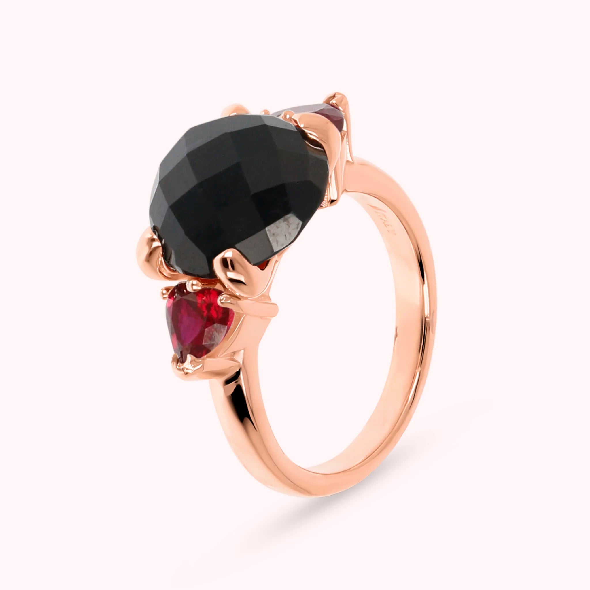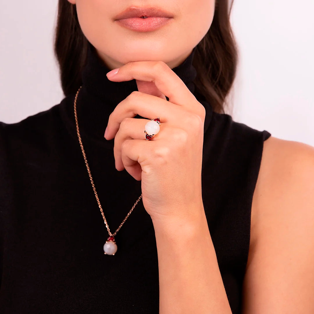 Anello Cocktail con Pietra Naturale e Cuore in Cubic Zirconia