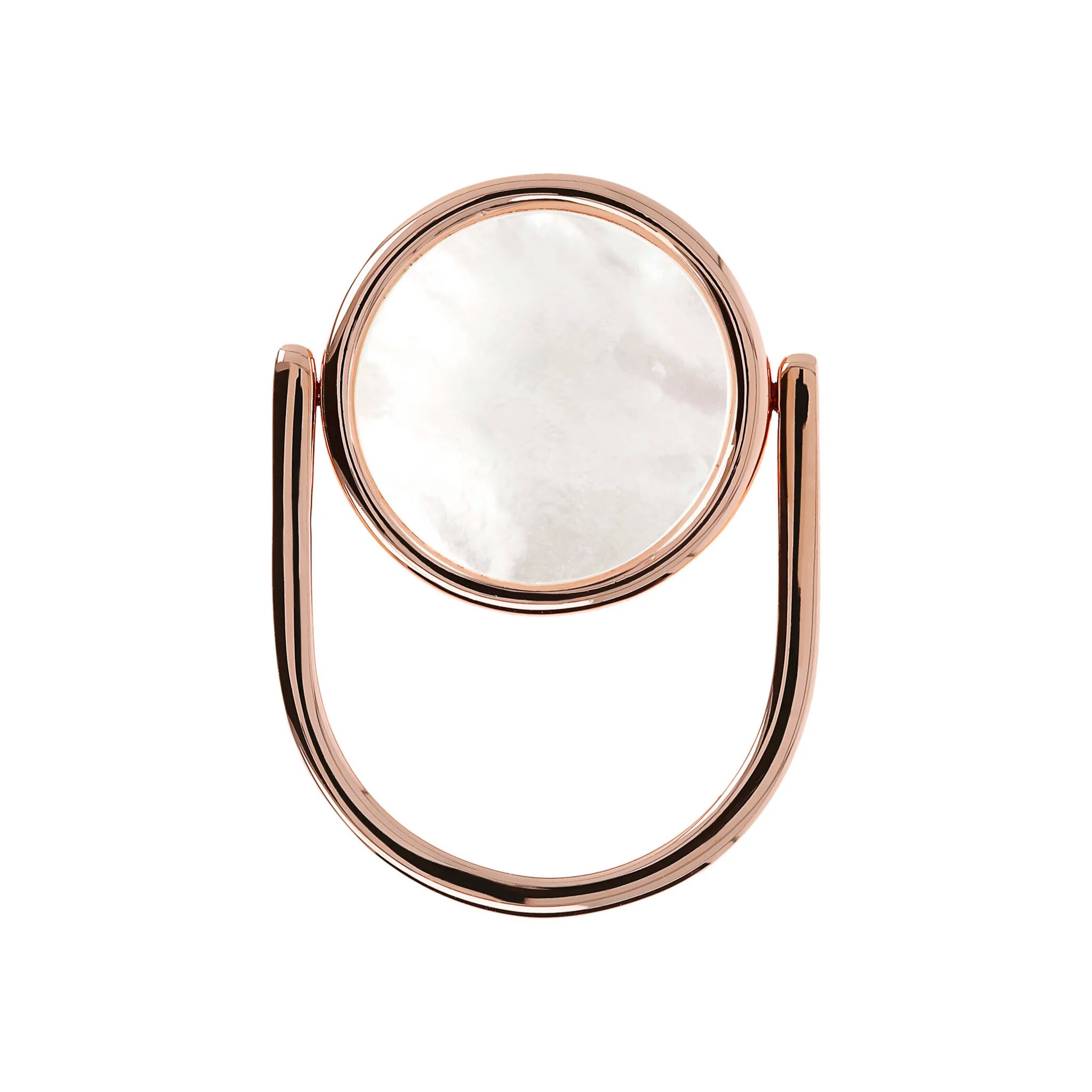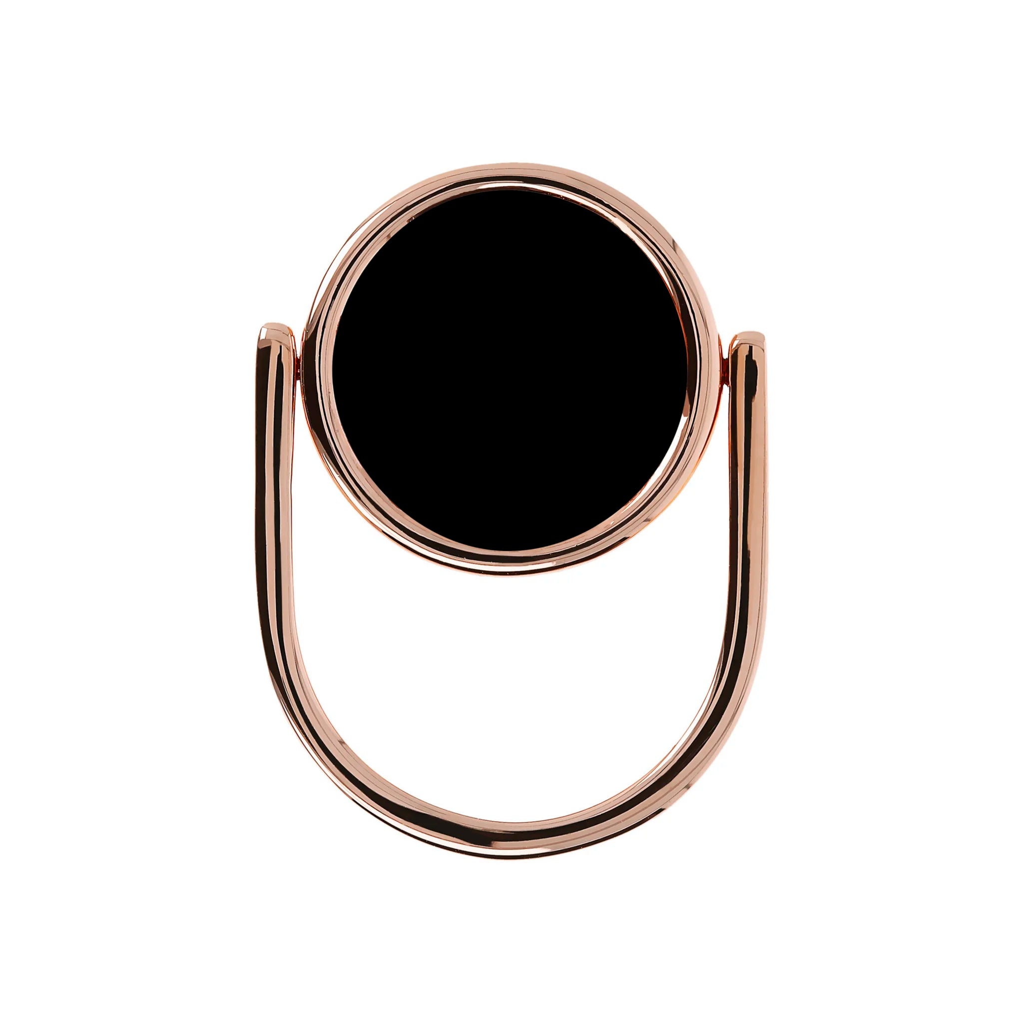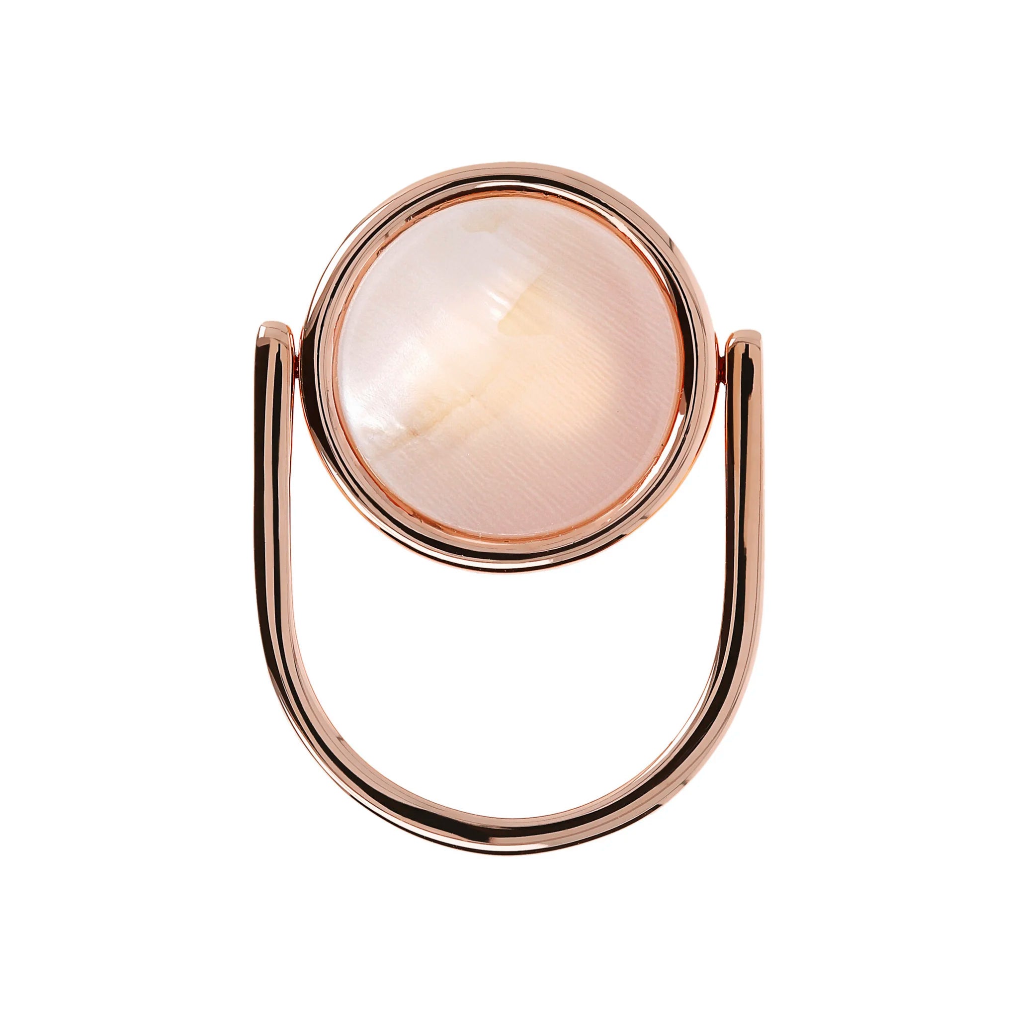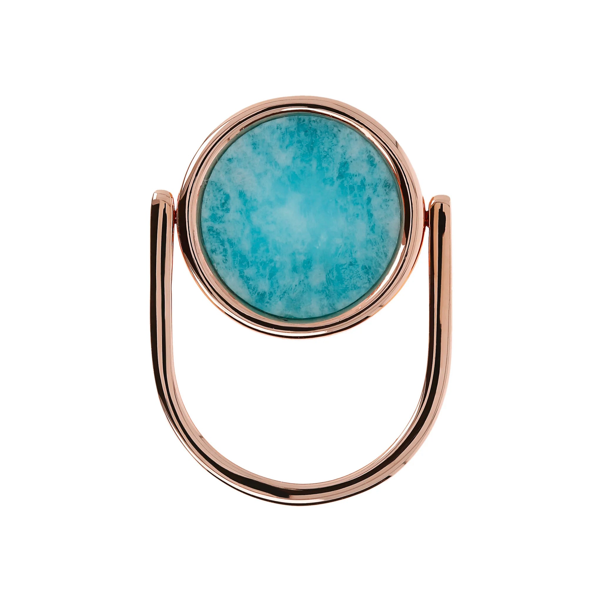 Anello cocktail girevole Bronzallure realizzato in lega Golden Rosé, placcato oro rosa 18kt, impreziosito da un lato da un tondo in pietra naturale e dall'altro da un elemento a forma di cuore traforato.