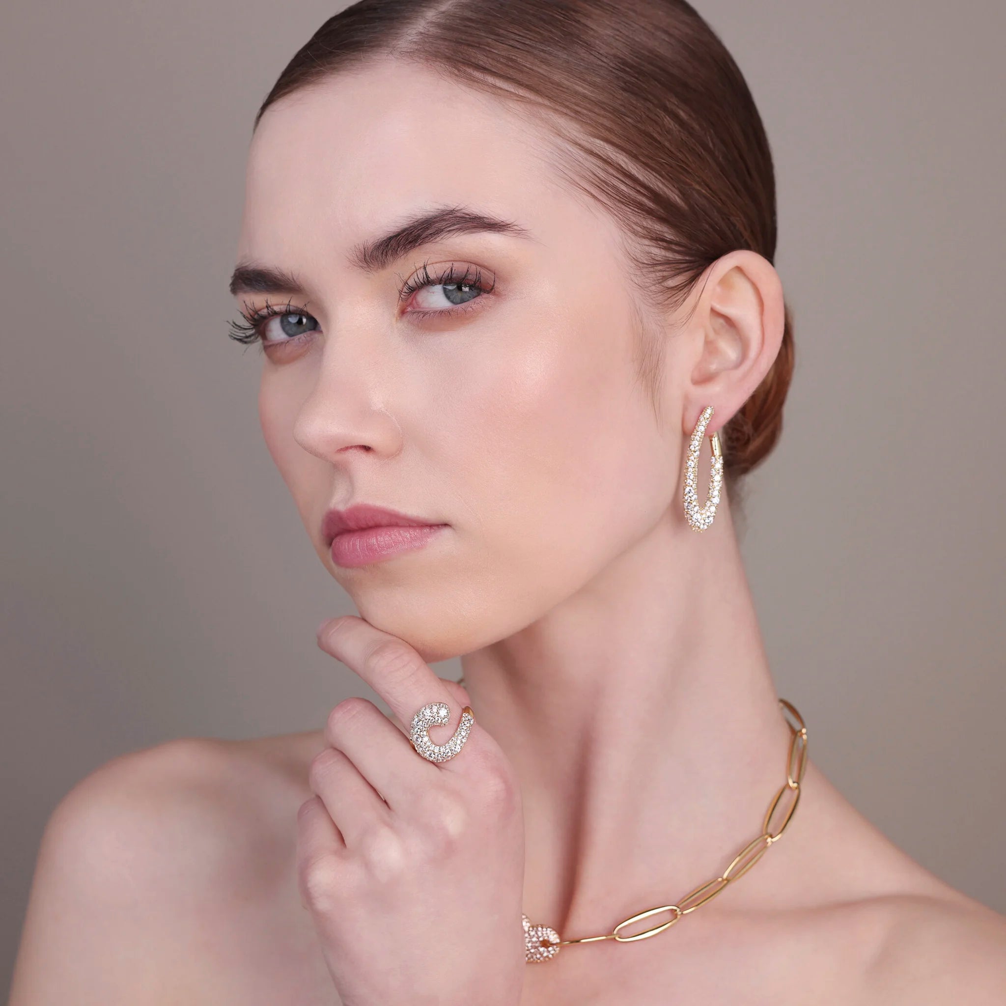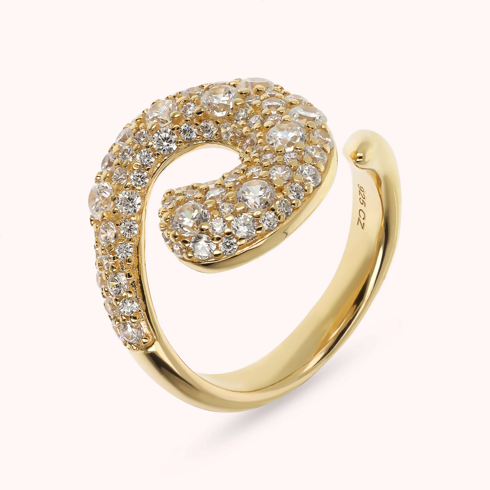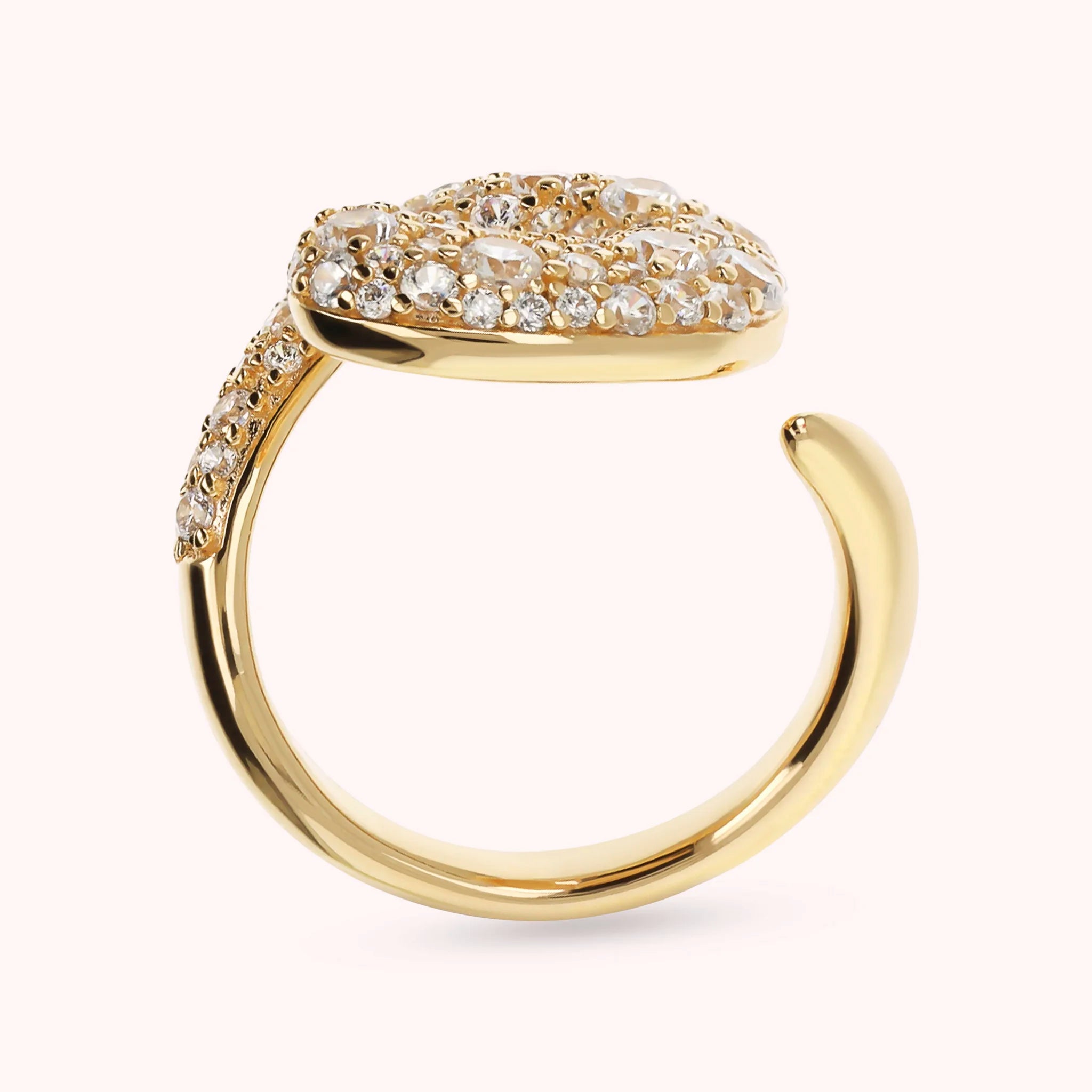 Anello contrarié Bronzallure realizzato in lega Golden Rosé, placcata Oro giallo 18kt, con superficie in pavé misto di cubic zirconia (1.25/1.75/2.5 mm), qualità luminosa.