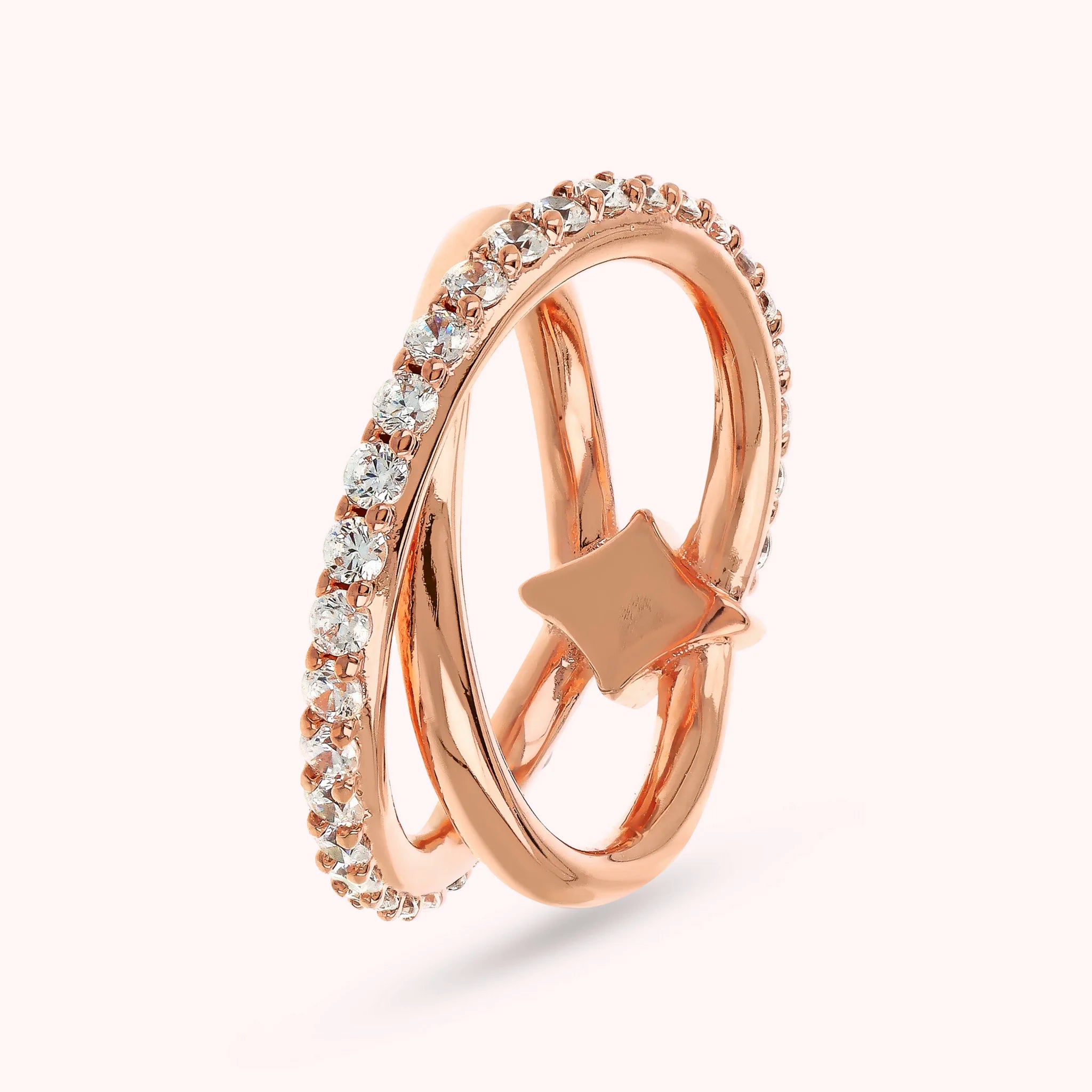 Anello Doppio Intrecciato Étoile con Cubic Zirconia