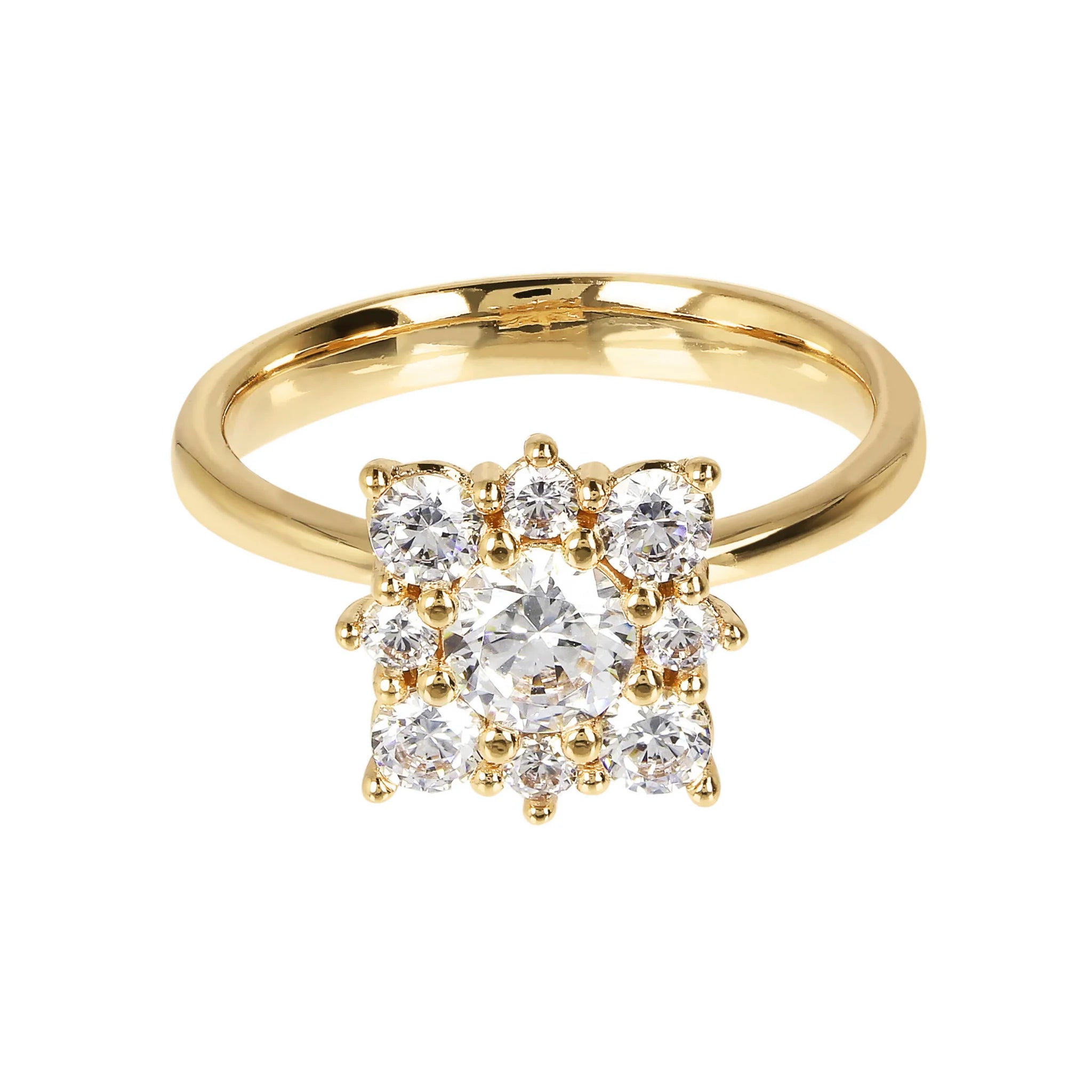 Anello Solitario Golden con Fiore in Cubic Zirconia