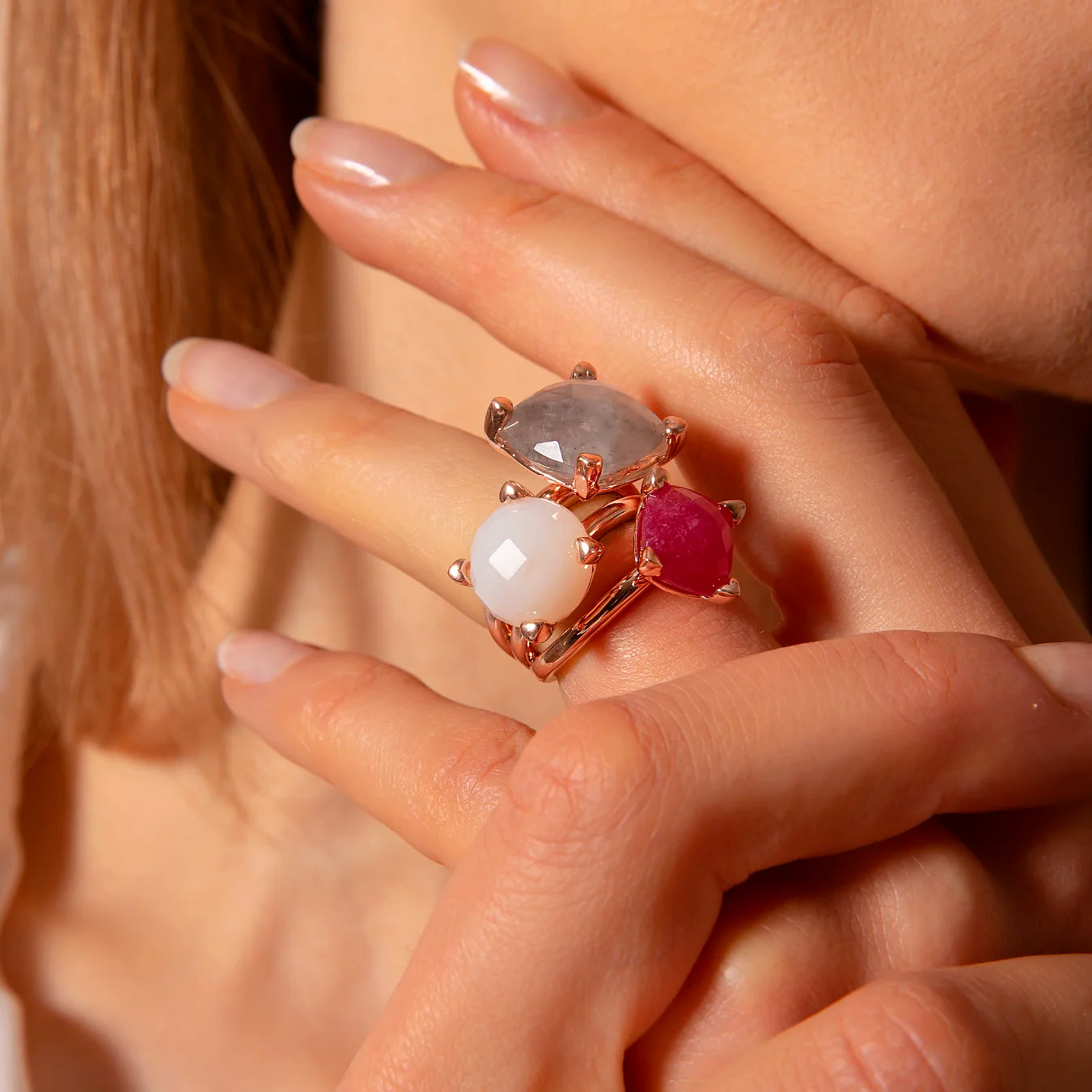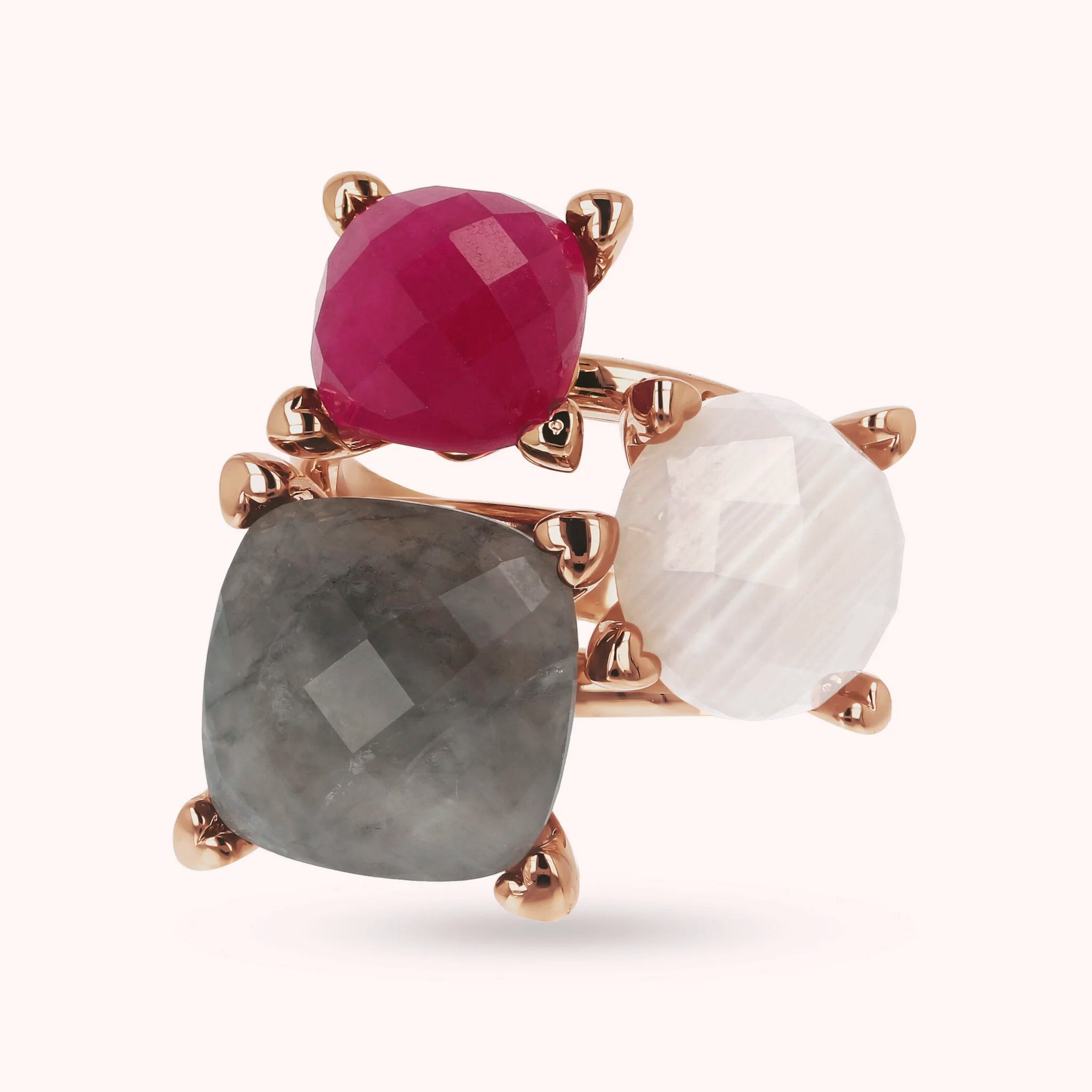 Anello Trilogy con Pietre Naturali e Castoni a Cuore