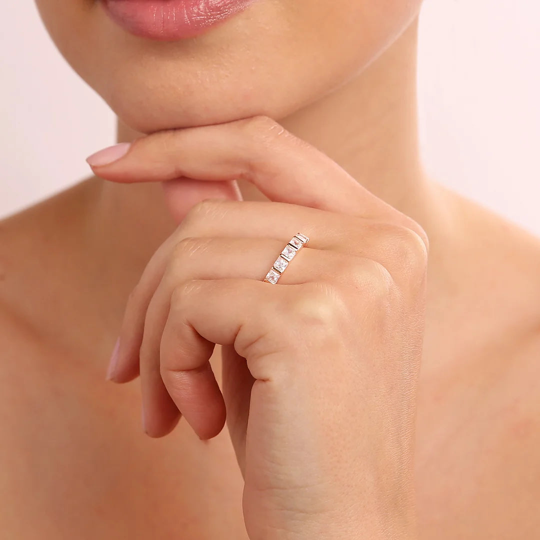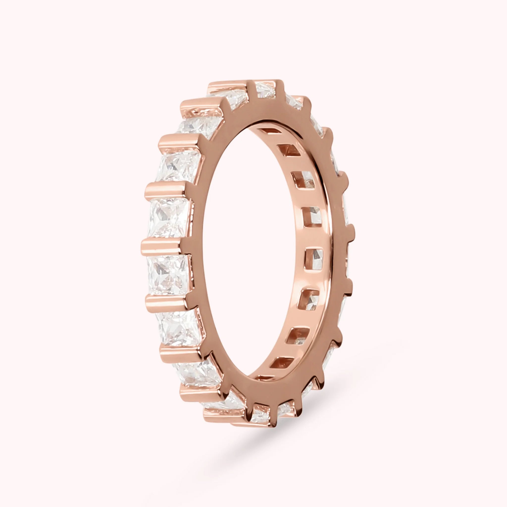 Anello veretta Bronzallure realizzato in lega Golden Rosé, placcato oro rosa 18kt, impreziosito da cubic zirconia quadrate di colore bianco, qualità luminosa. Creazione elegante e perfetta per far brillare il tuo look.