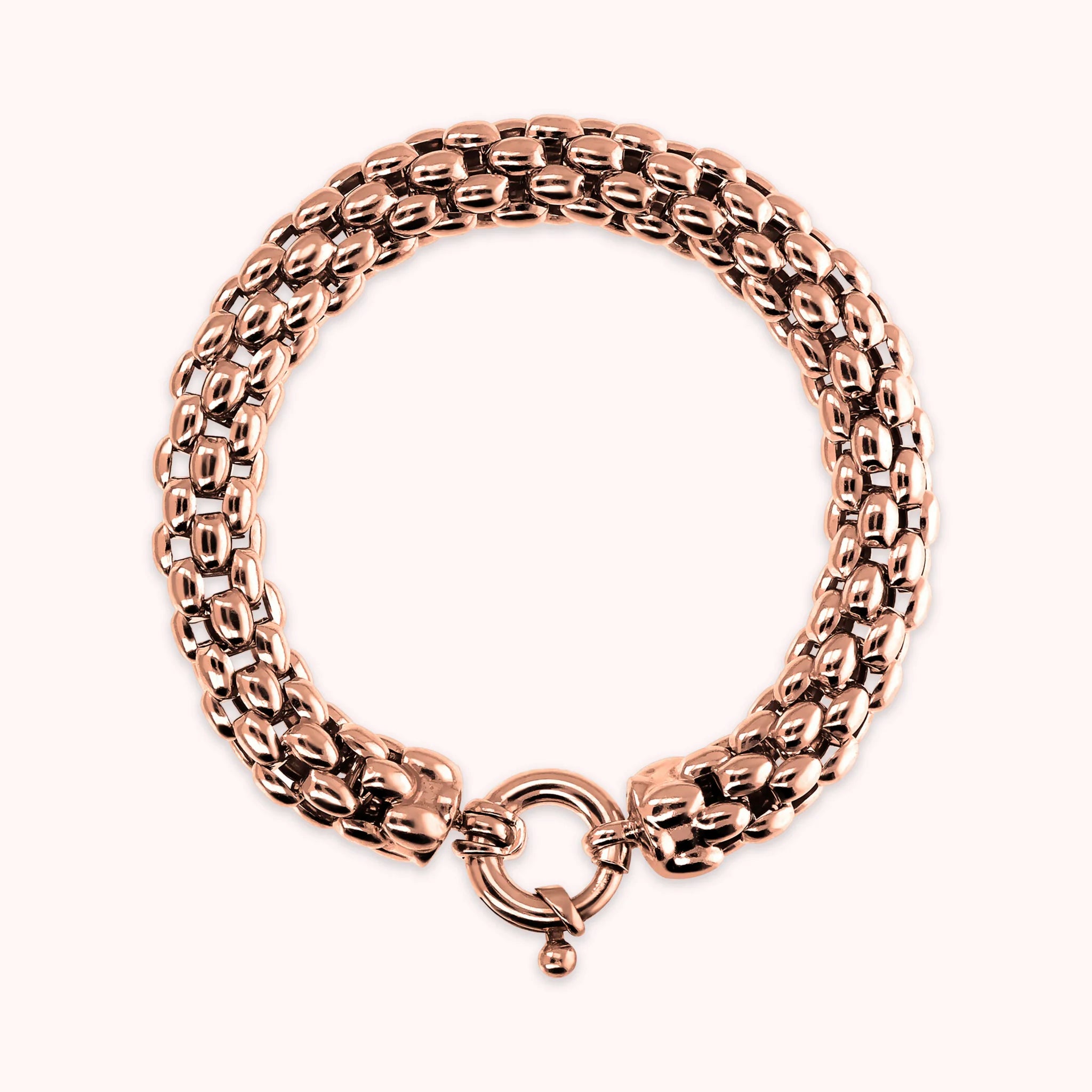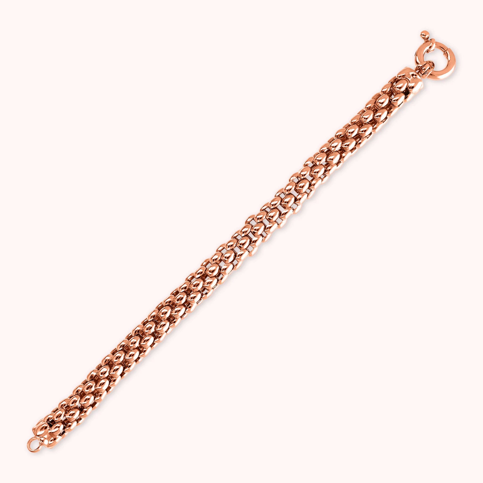 Bracciale Bronzallure realizzato in lega Golden Rosé, placcata oro rosa 18kt, con catena coreana; chiusura ad anello a molla.