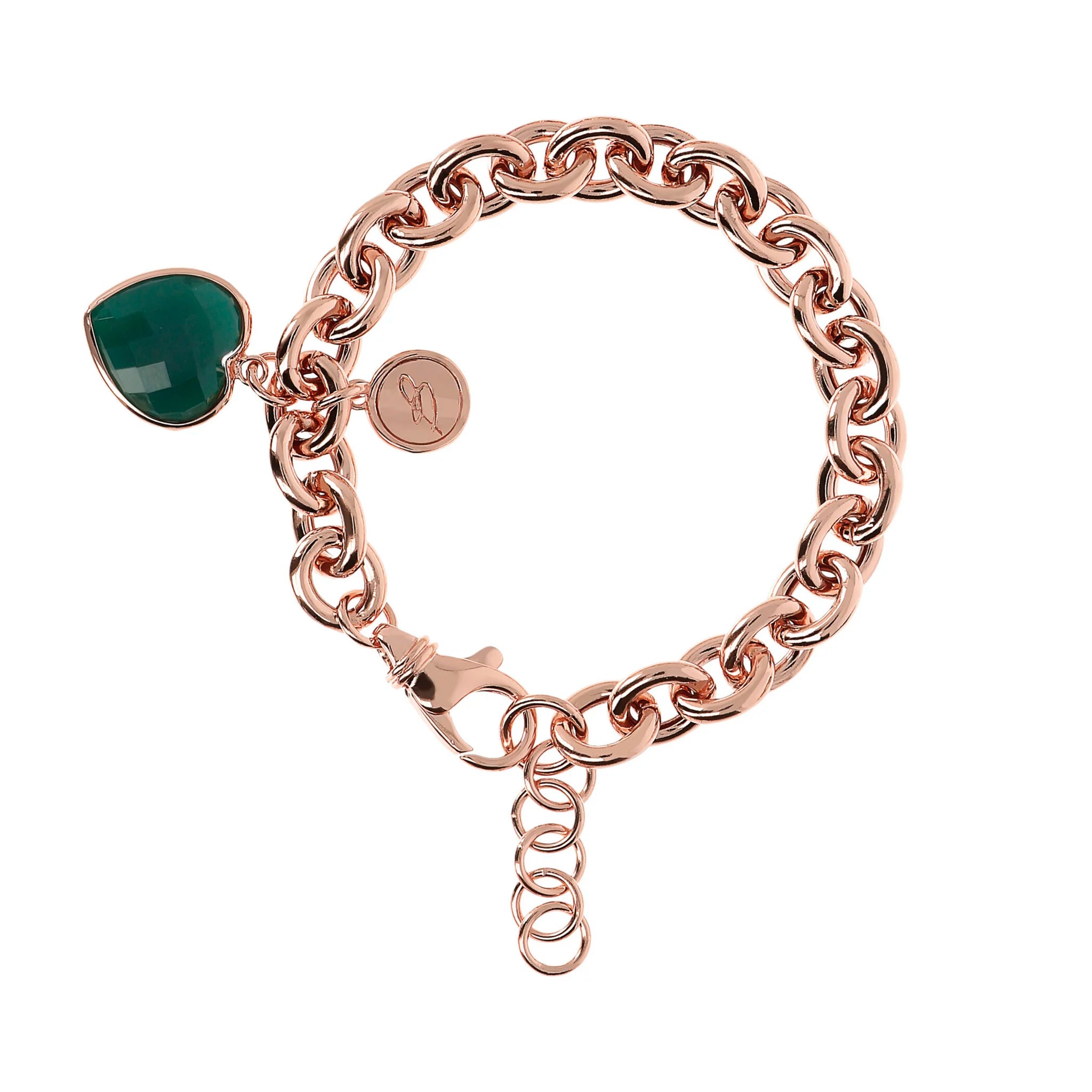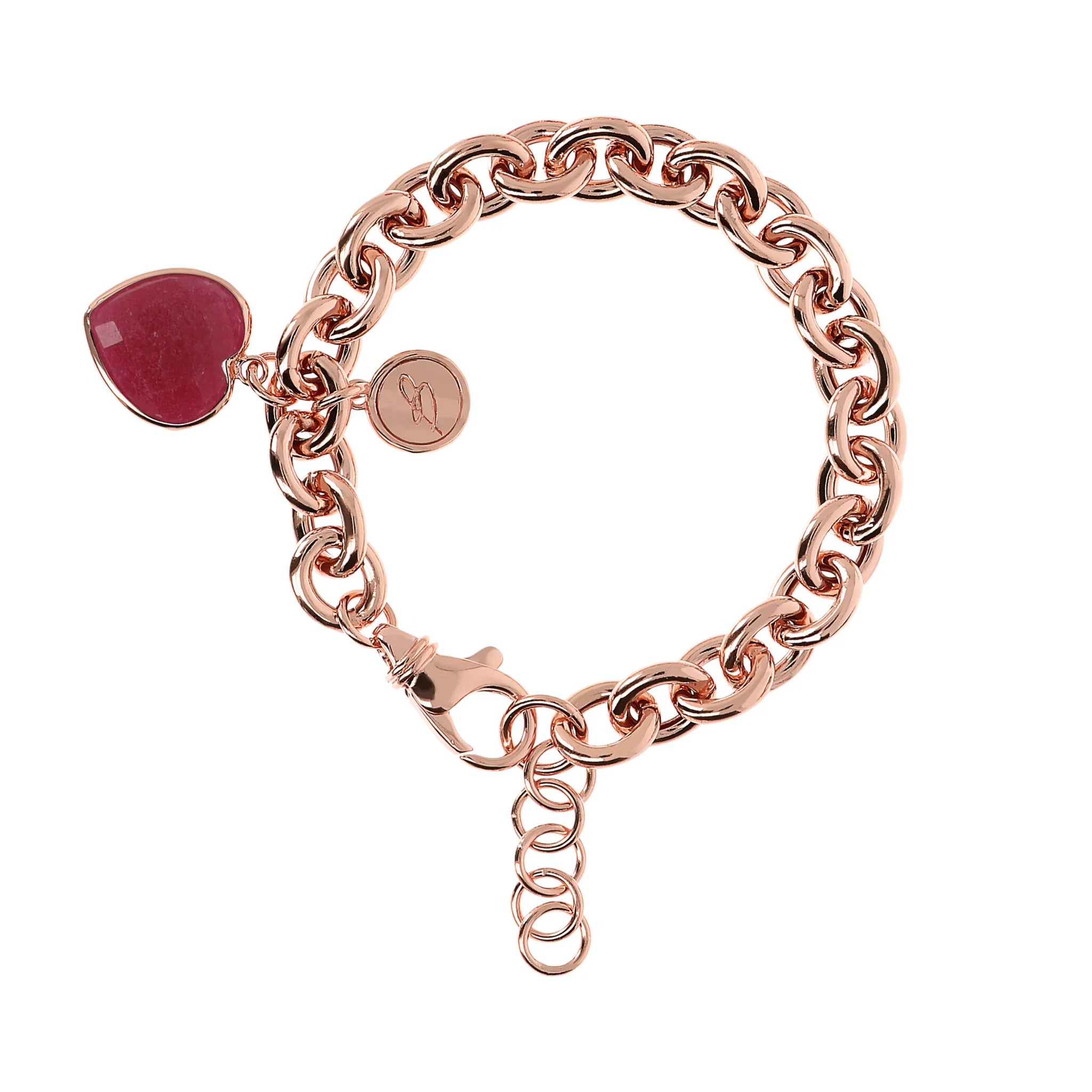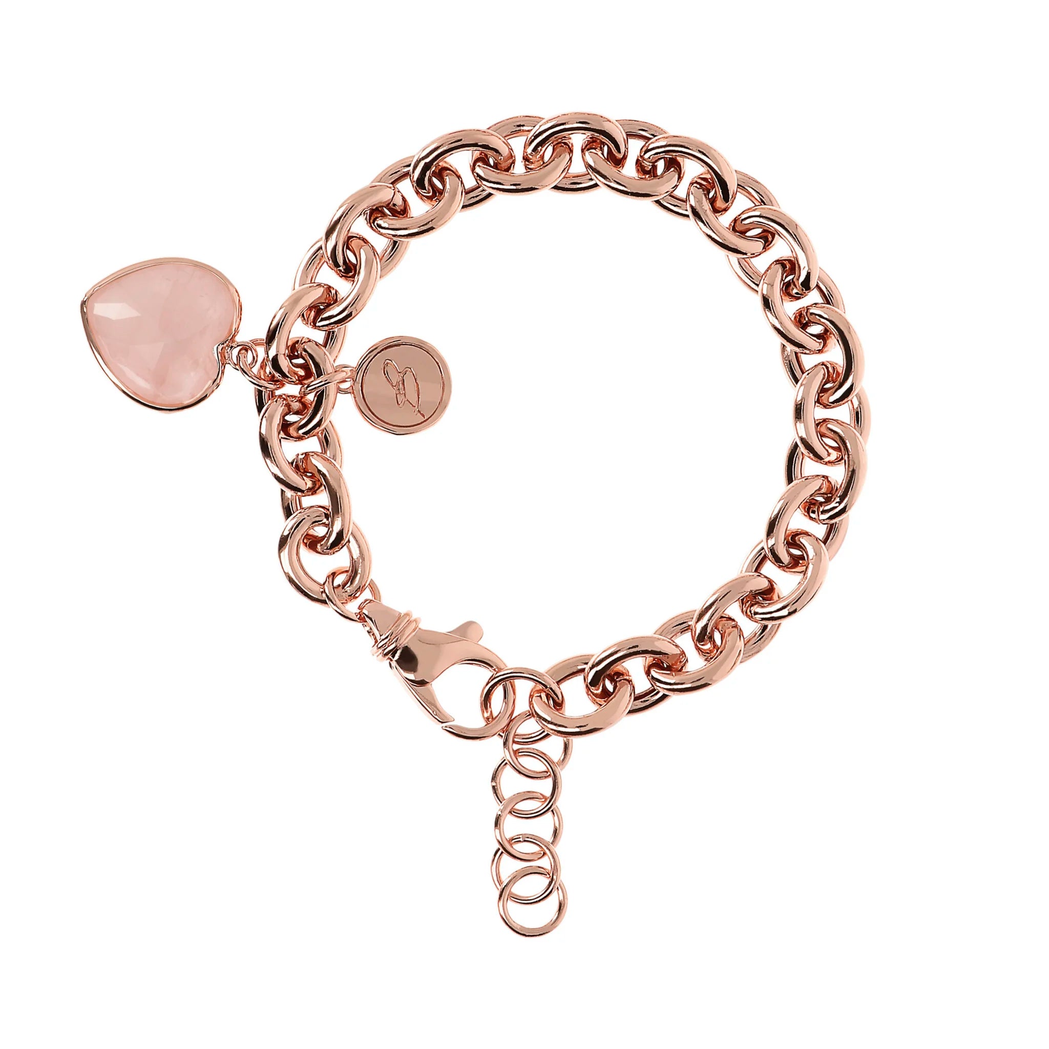 Bracciale Bronzallure con catena rolo realizzato in lega Golden Rosé, placcato oro rosa 18kt, con ciondolo a forma di cuore in pietra naturale (16 mm); chiusura a moschettone con extender.