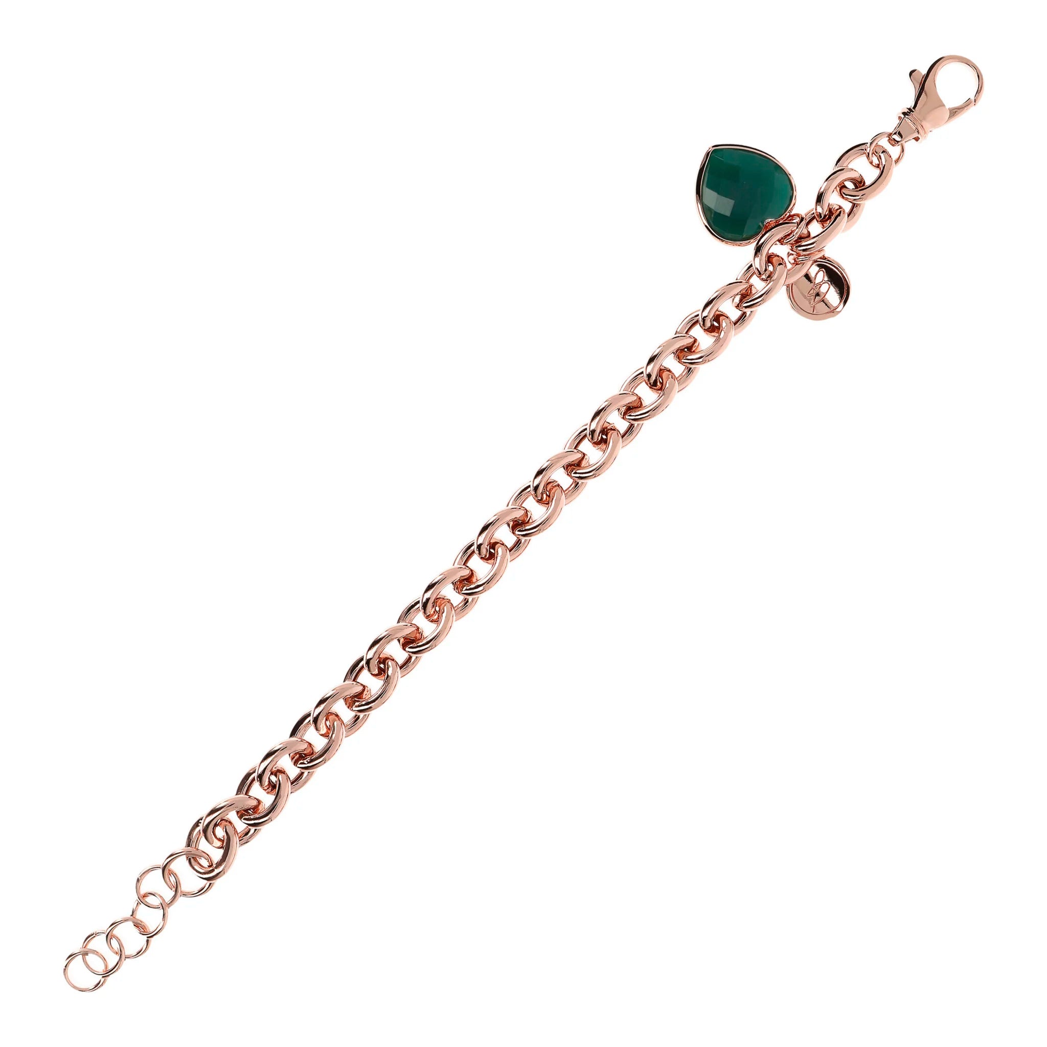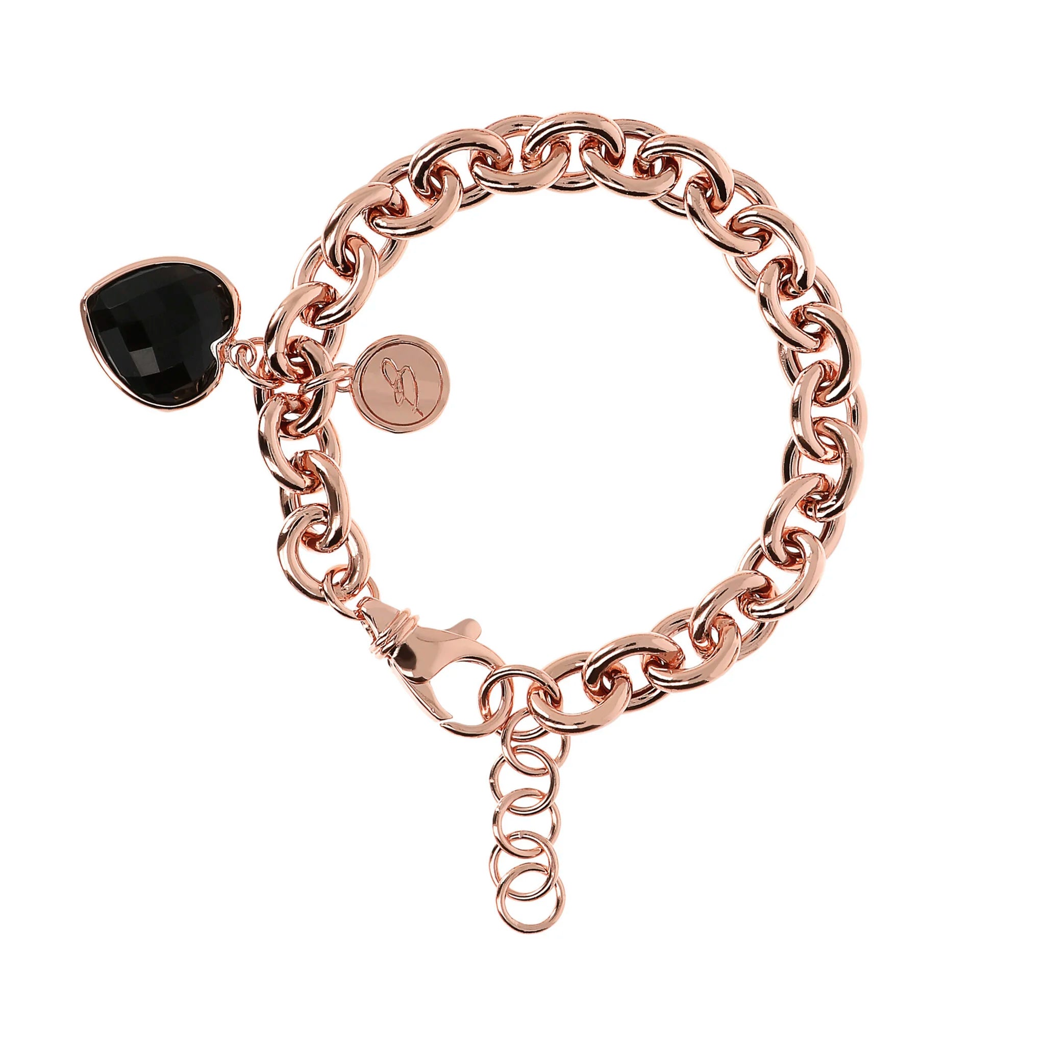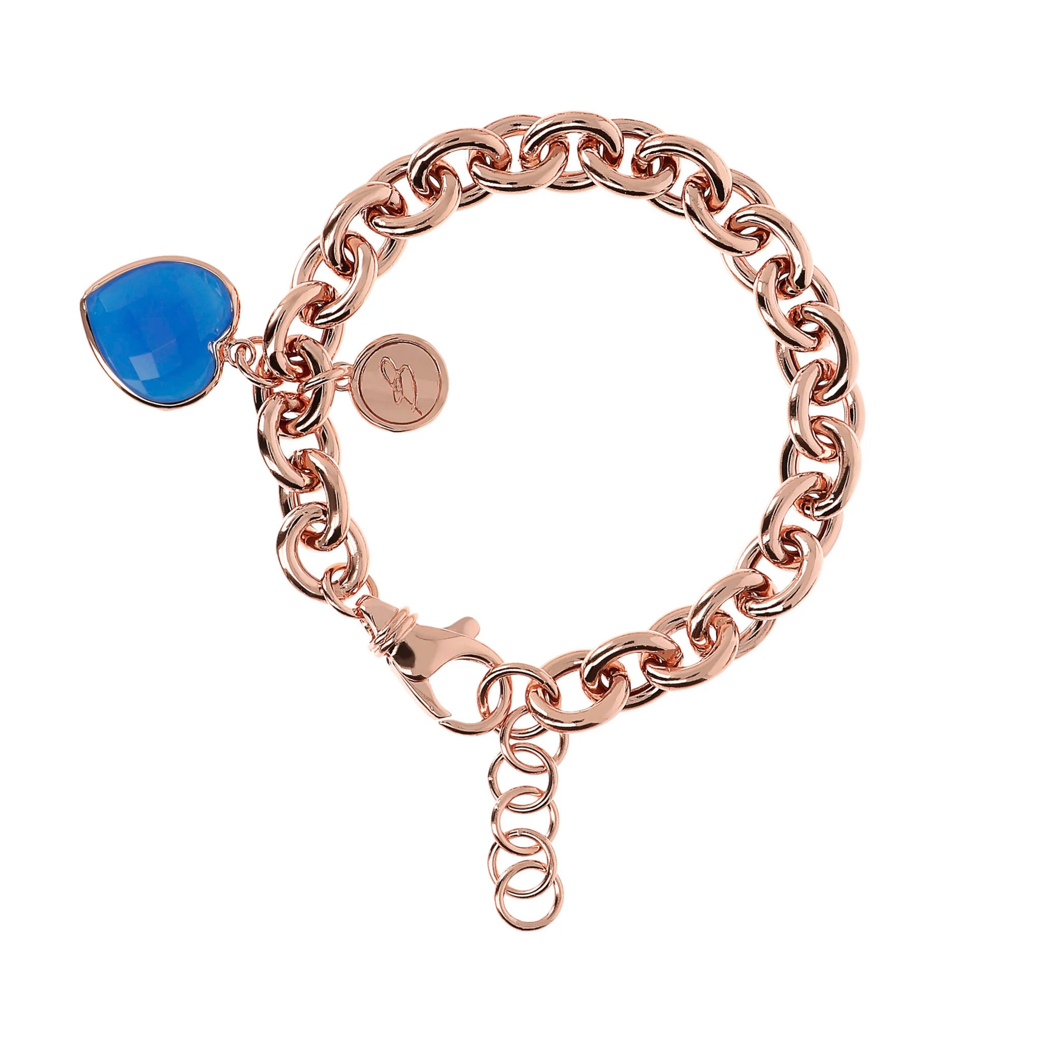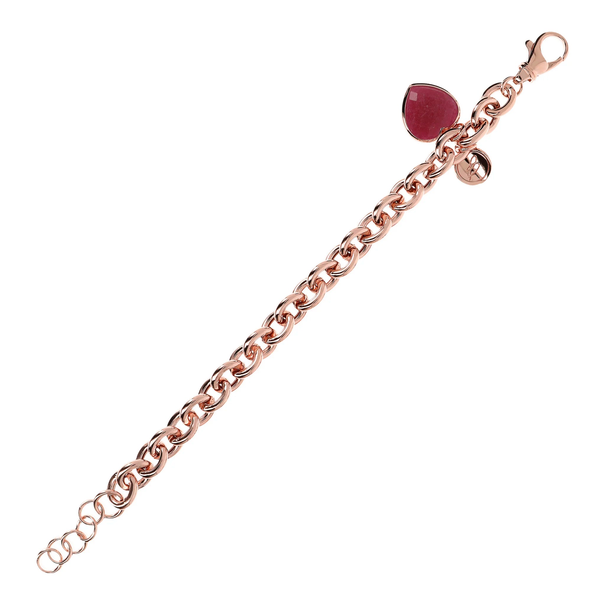 Bracciale Bronzallure con catena rolo realizzato in lega Golden Rosé, placcato oro rosa 18kt, con ciondolo a forma di cuore in pietra naturale (16 mm); chiusura a moschettone con extender.