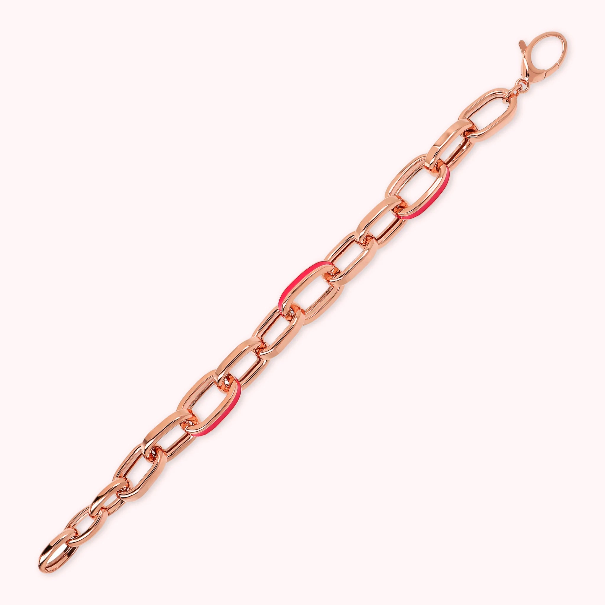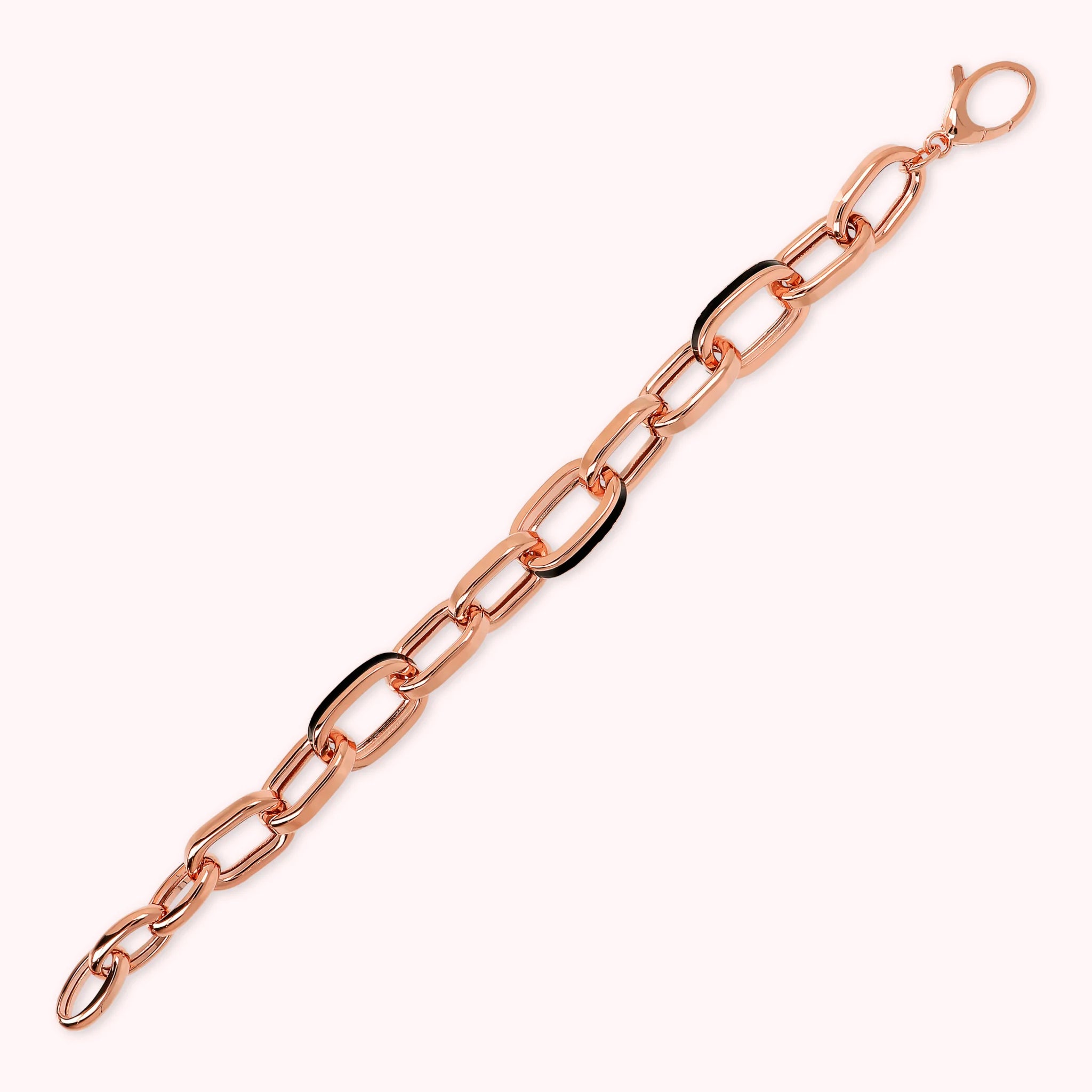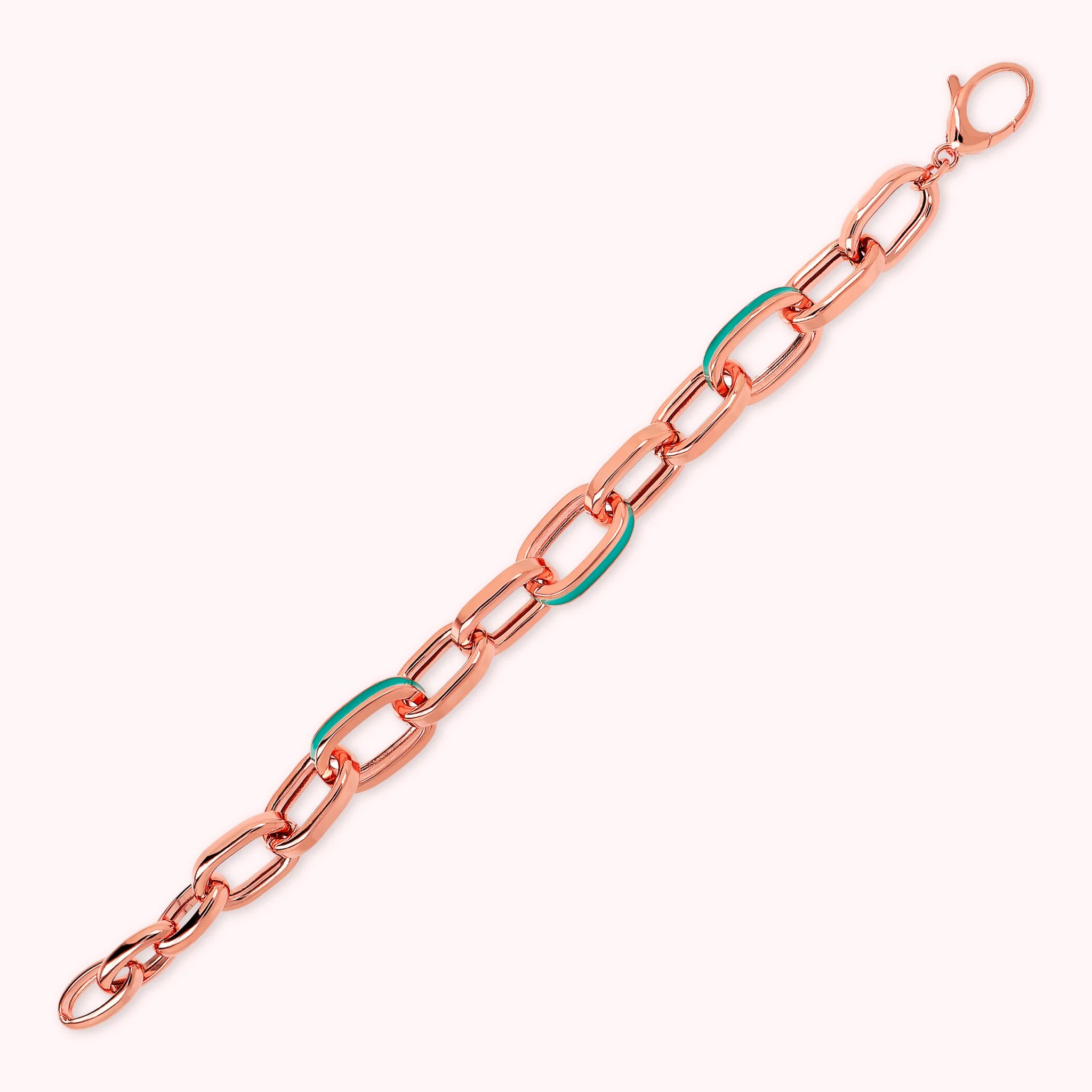 Bracciale Bronzallure realizzato in lega Golden Rosé, placcato oro rosa 18kt con maglie ovali allungate, alternate a maglie smaltate. Pratico da indossare con chiusura a moschettone.