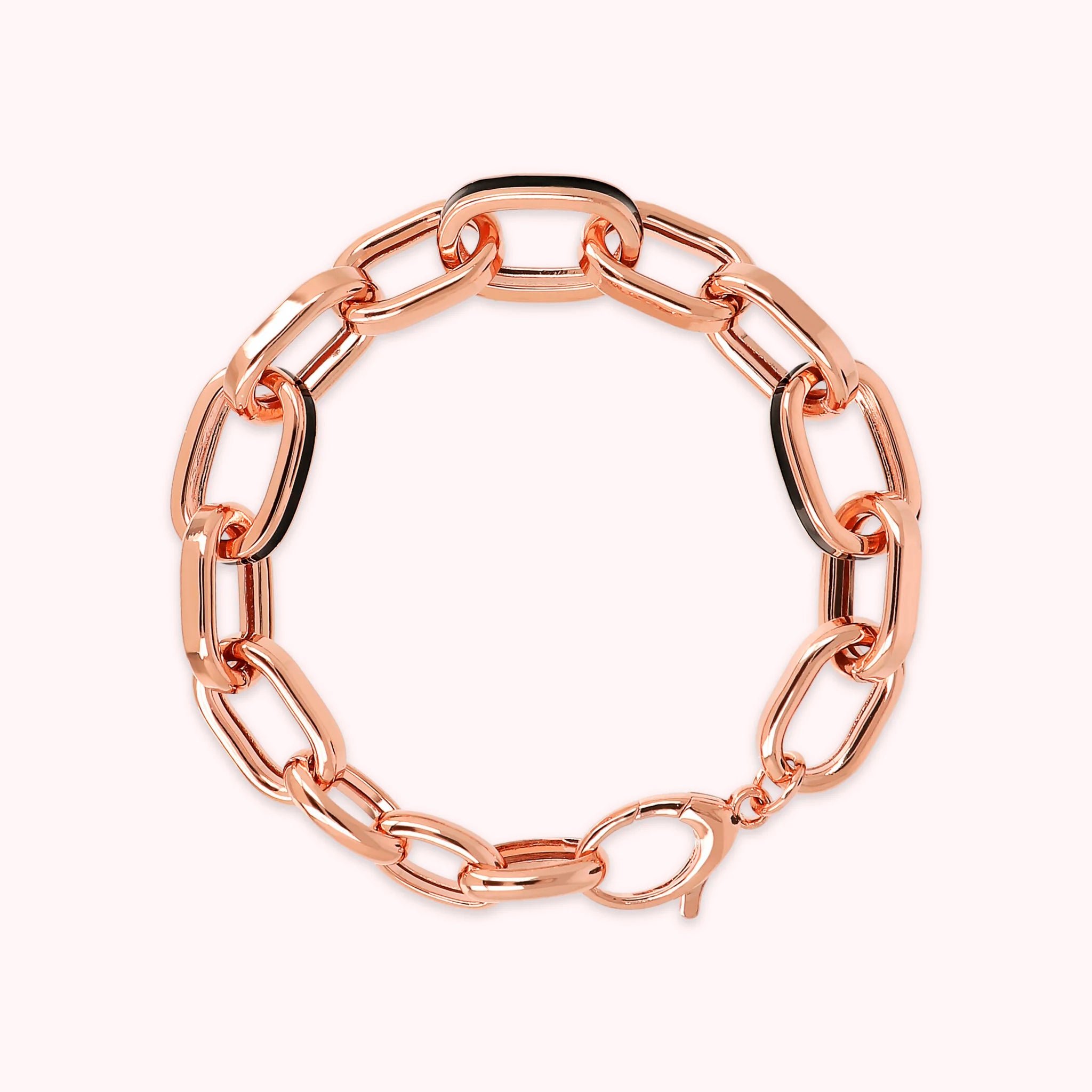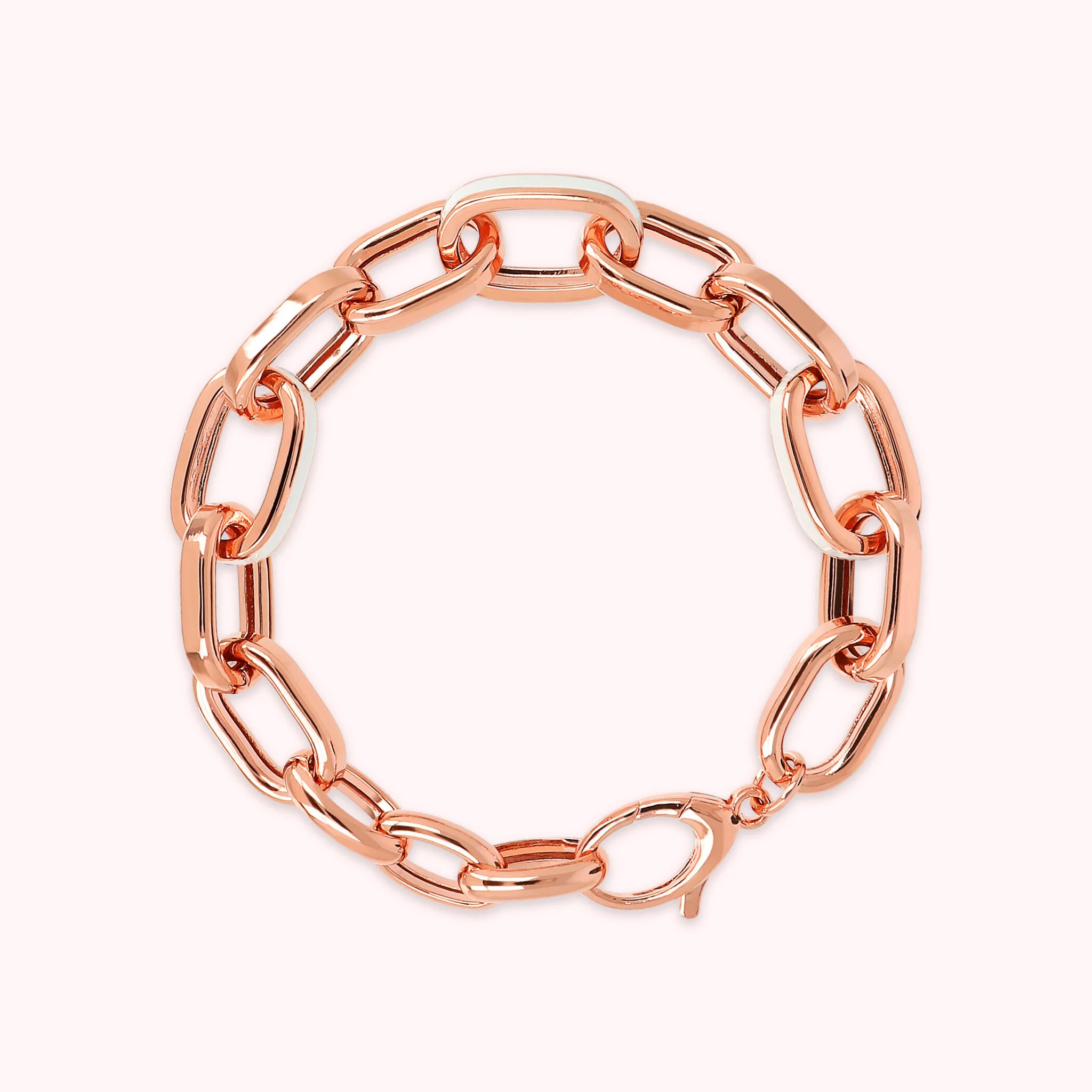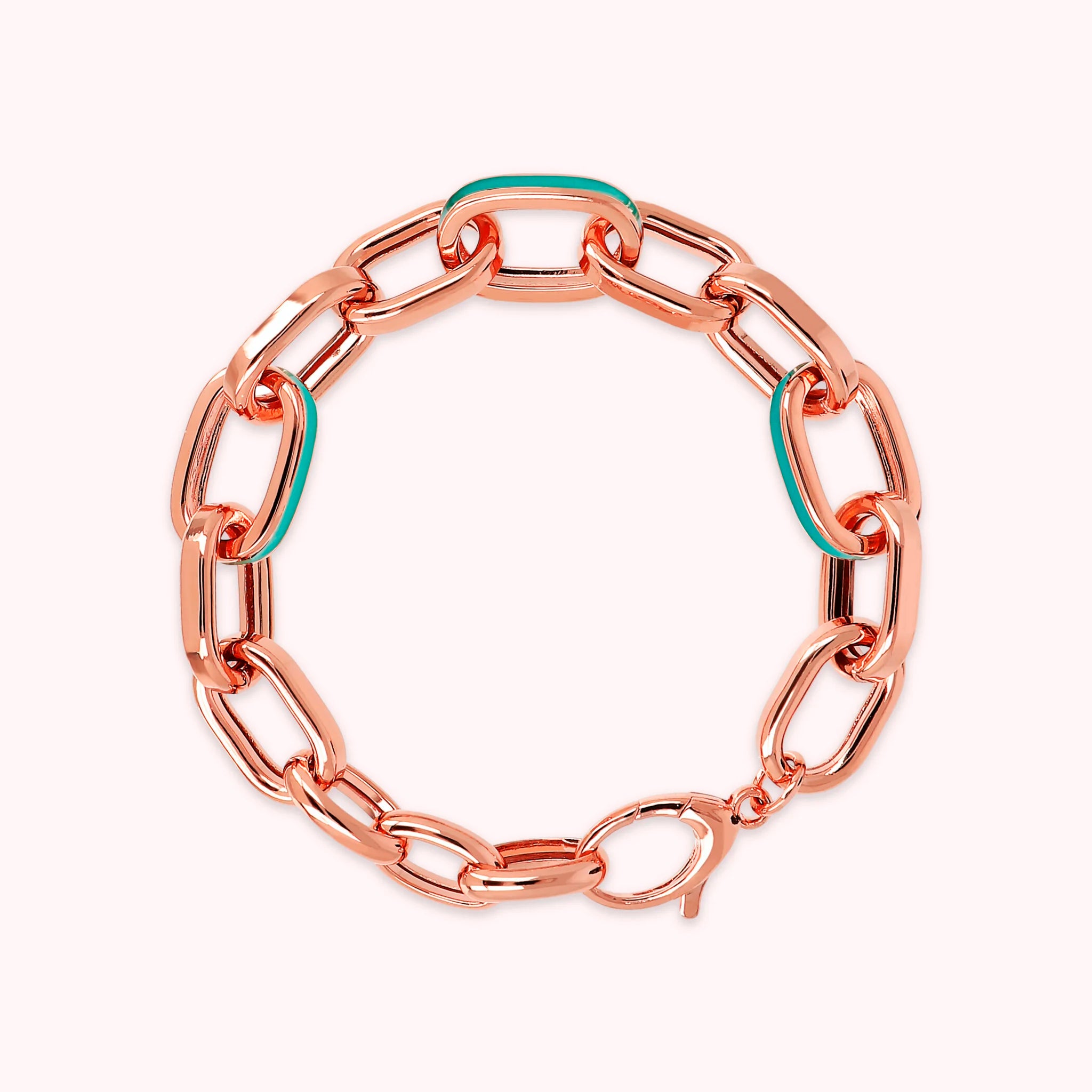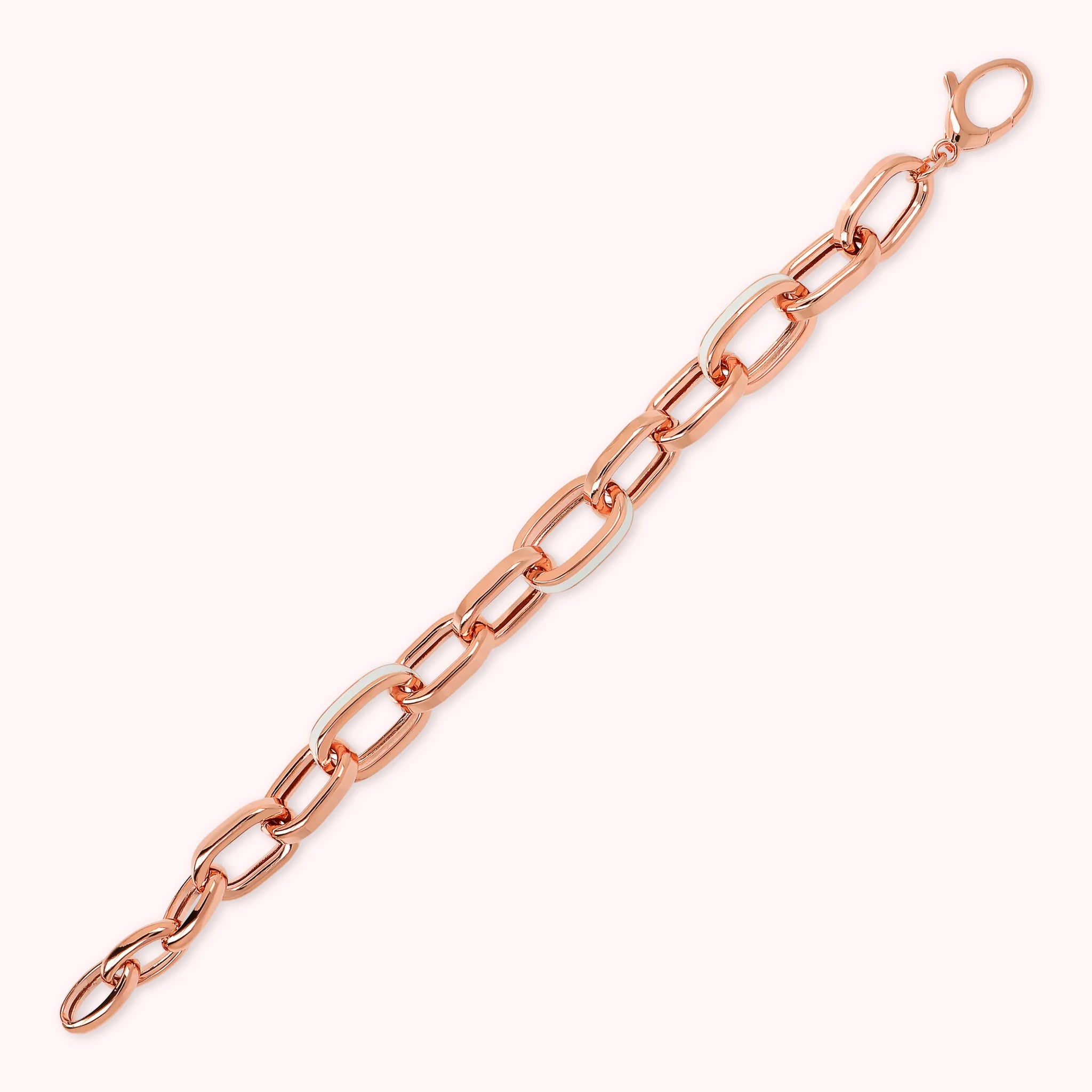 Bracciale Bronzallure realizzato in lega Golden Rosé, placcato oro rosa 18kt con maglie ovali allungate, alternate a maglie smaltate. Pratico da indossare con chiusura a moschettone.