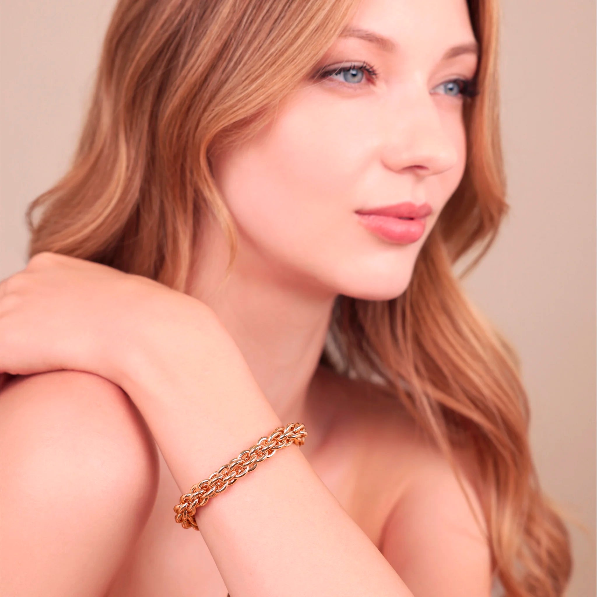 Bracciale Bronzallure in Golden Rosé, caratterizzato da una raffinata trama intrecciata che cattura la luce con discreta eleganza. Un gioiello dal fascino moderno e senza tempo.