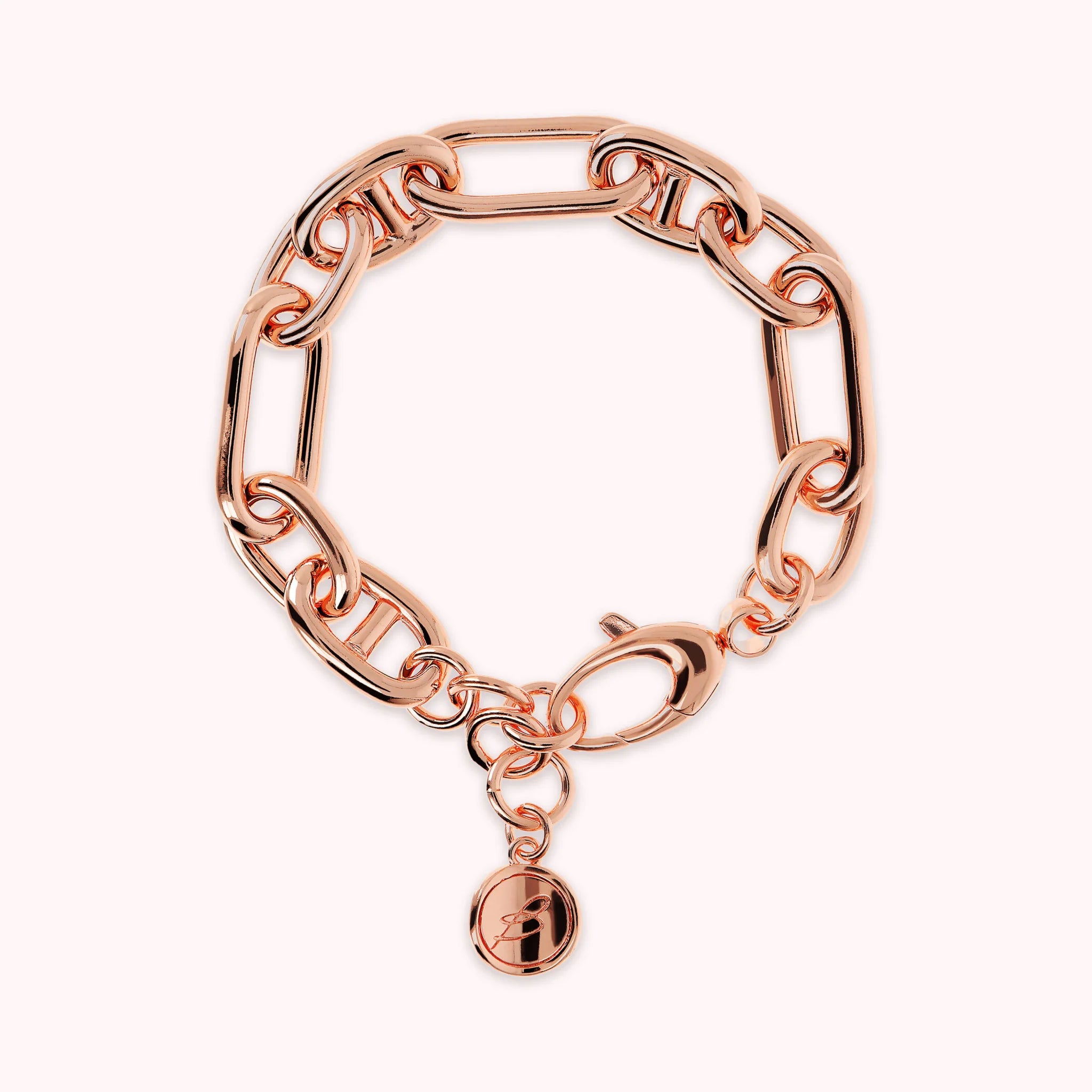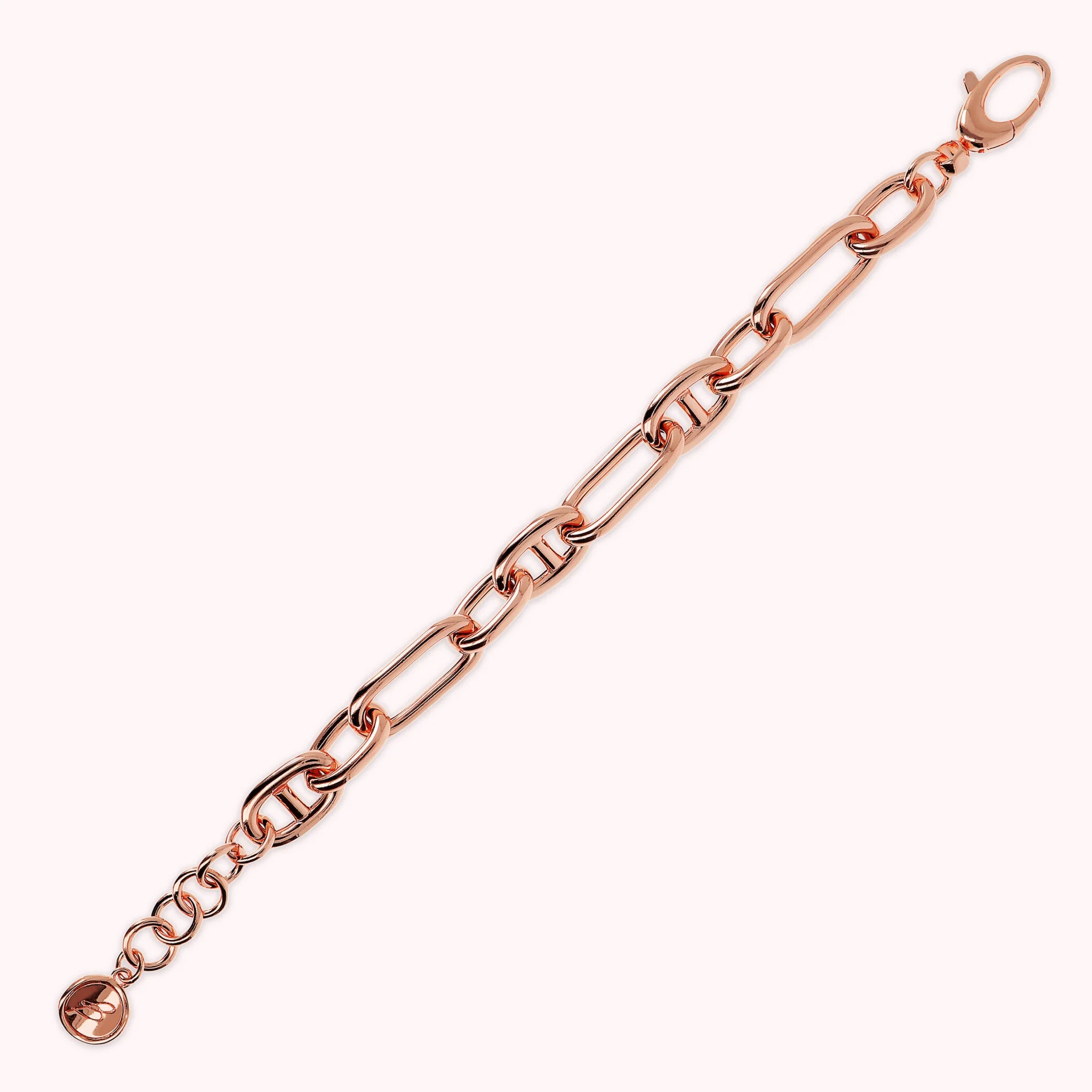 Bracciale Bronzallure realizzato in lega Golden Rosé, placcato oro rosa 18kt, impreziosito da maglie marine alternate a maglie ovali; chiusura a moschettone con extender.