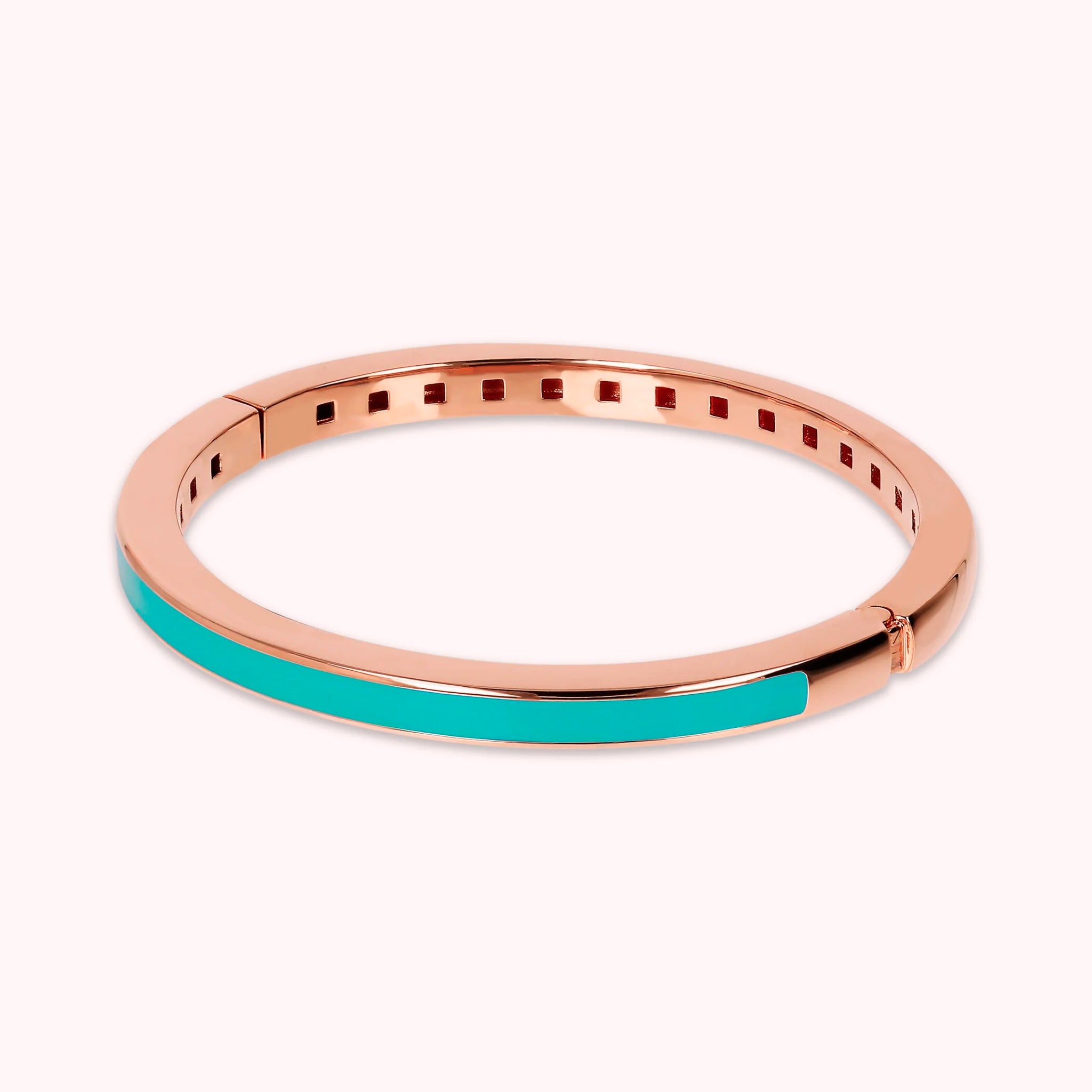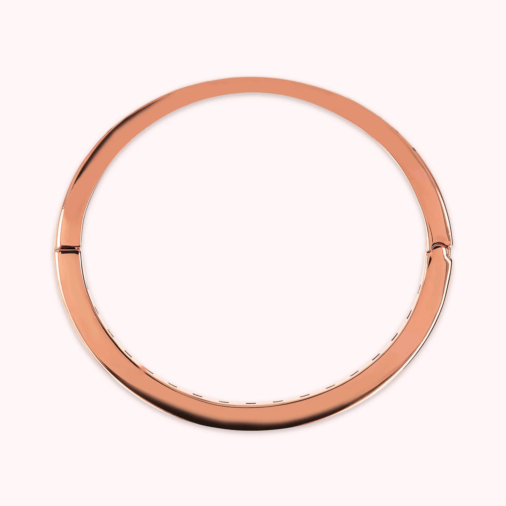 Bracciale rigido Bronzallure realizzato in lega Golden Rosé, placcato oro rosa 18kt, con smalto applicato in superficie. Pratico da indossare, dotato di snodo. Diametro interno bracciale: 56x50.5 mm.
