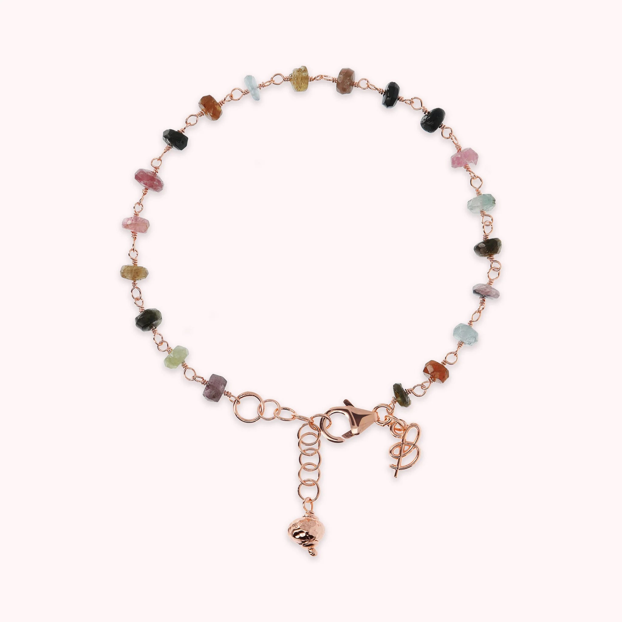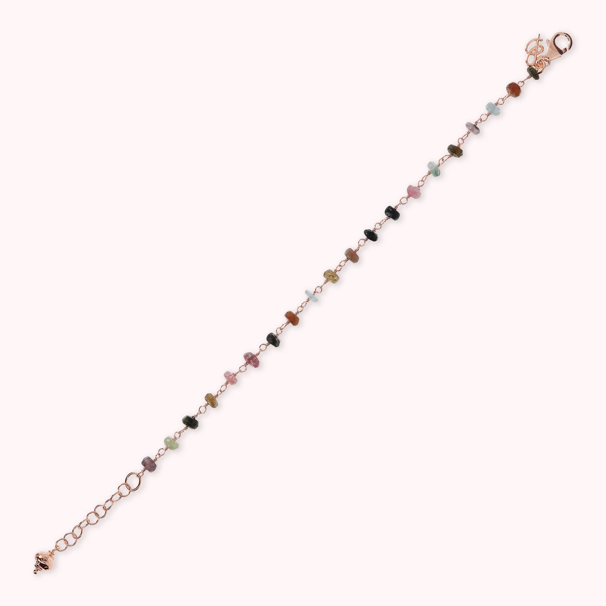 Bracciale rosario Bronzallure realizzato in lega Golden Rosé, placcato oro rosa 18kt, impreziosito da pietre naturali tormaline multicolore (4 mm).