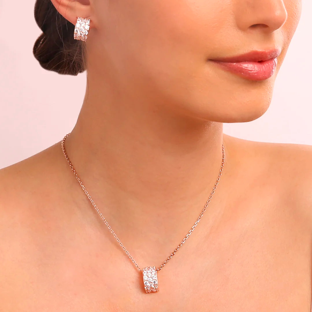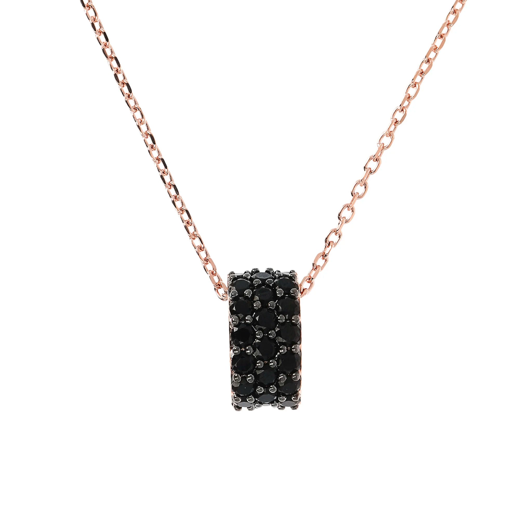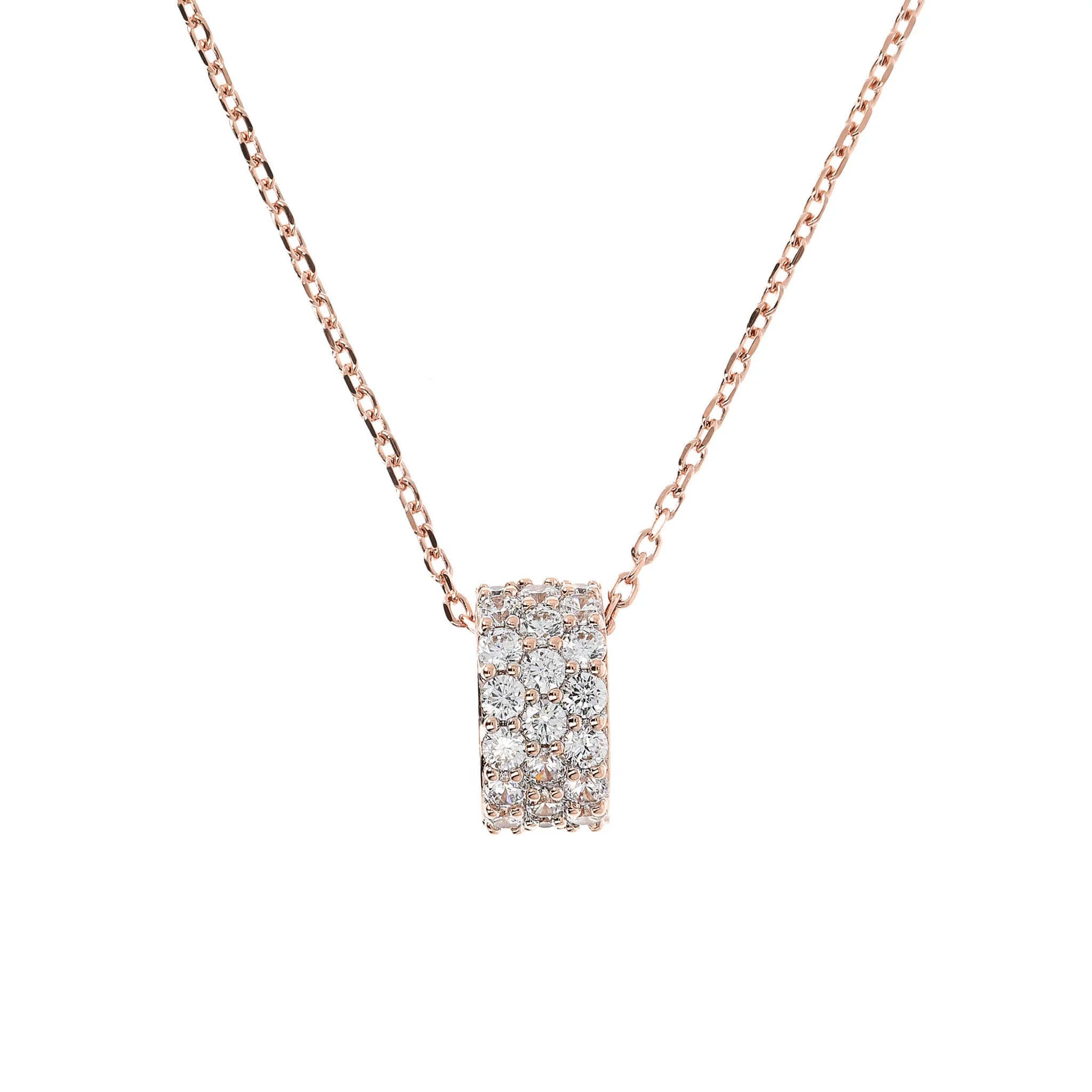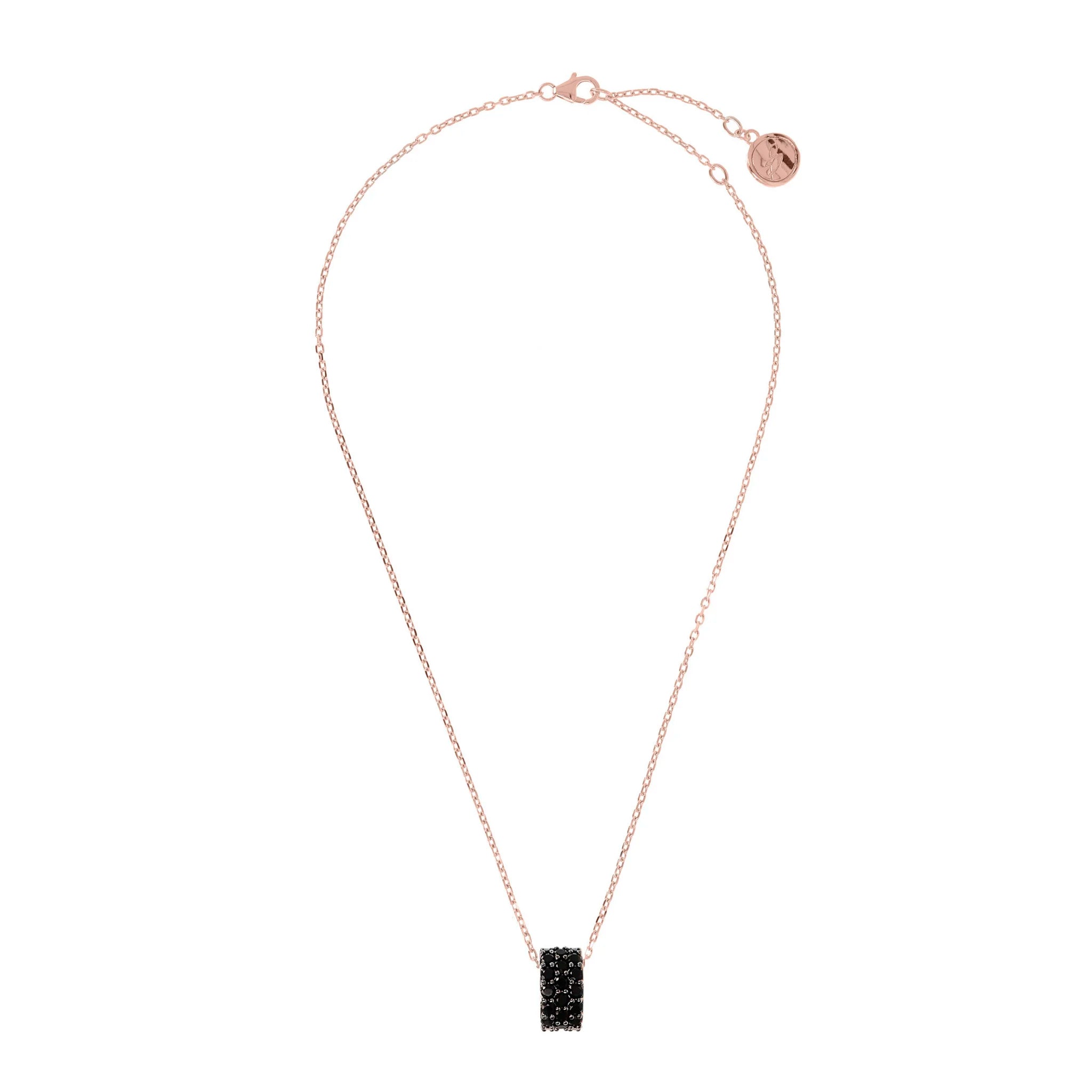 Collana Bronzallure realizzata in lega Golden Rosé, placcata Oro rosa 18kt, con catena forzatina impreziosita da un pendente in pavé. Chiusura a moschettone e lunghezza 47 cm con anellino interposto a 41 cm.