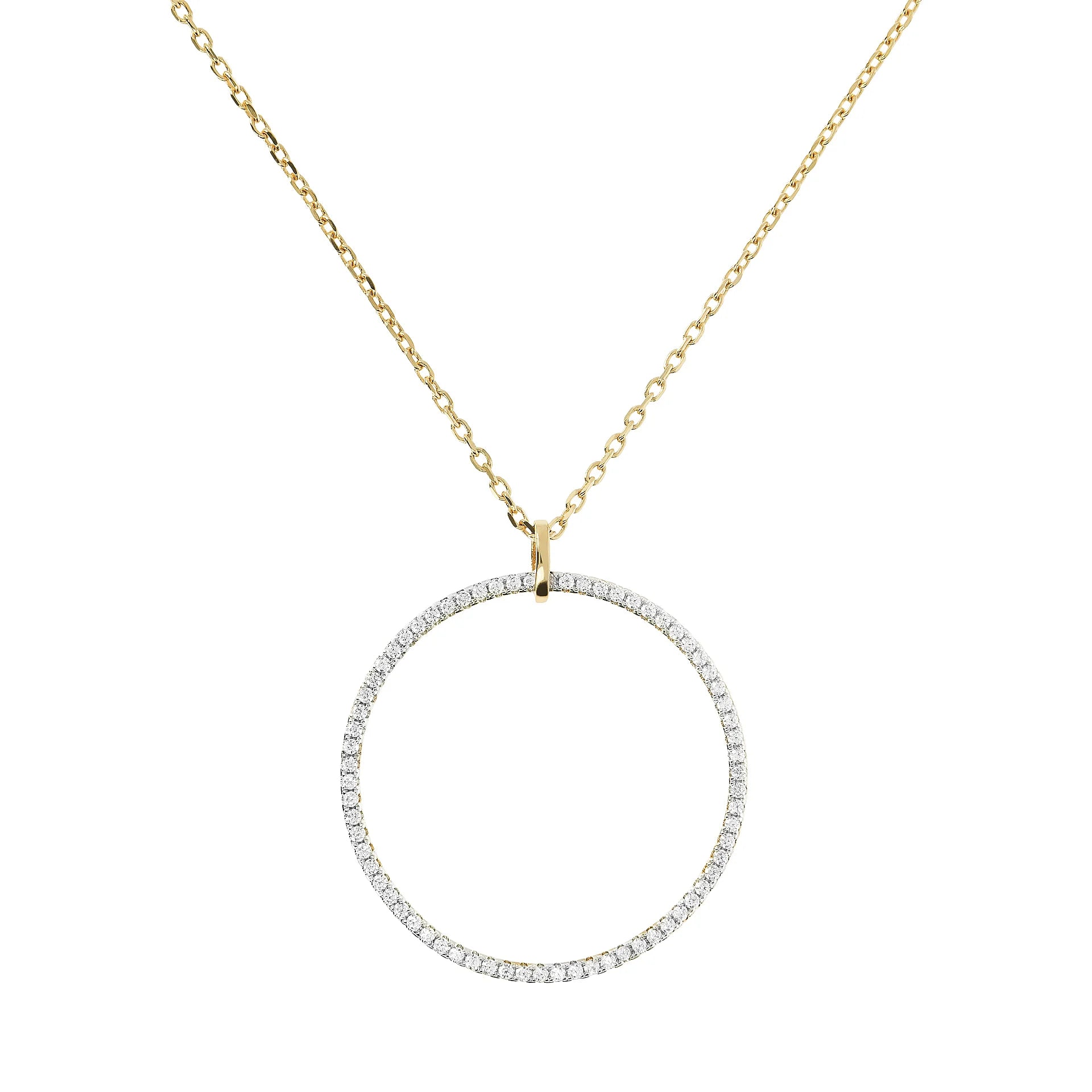 Collana Catena Forzatina Golden con Pendente Cerchio Pavé