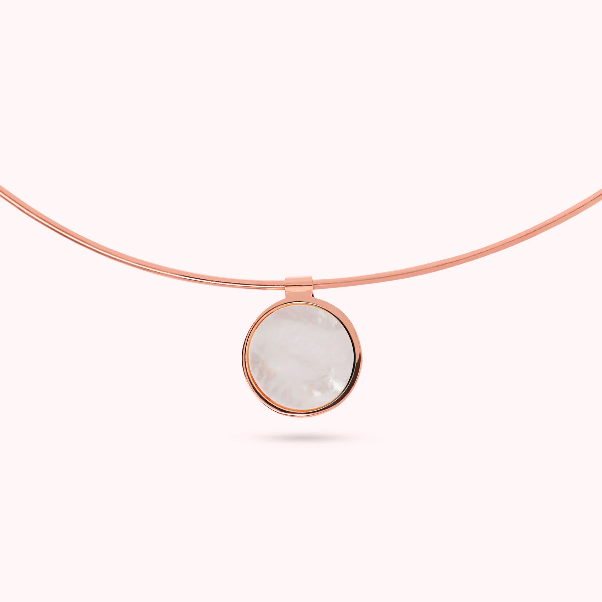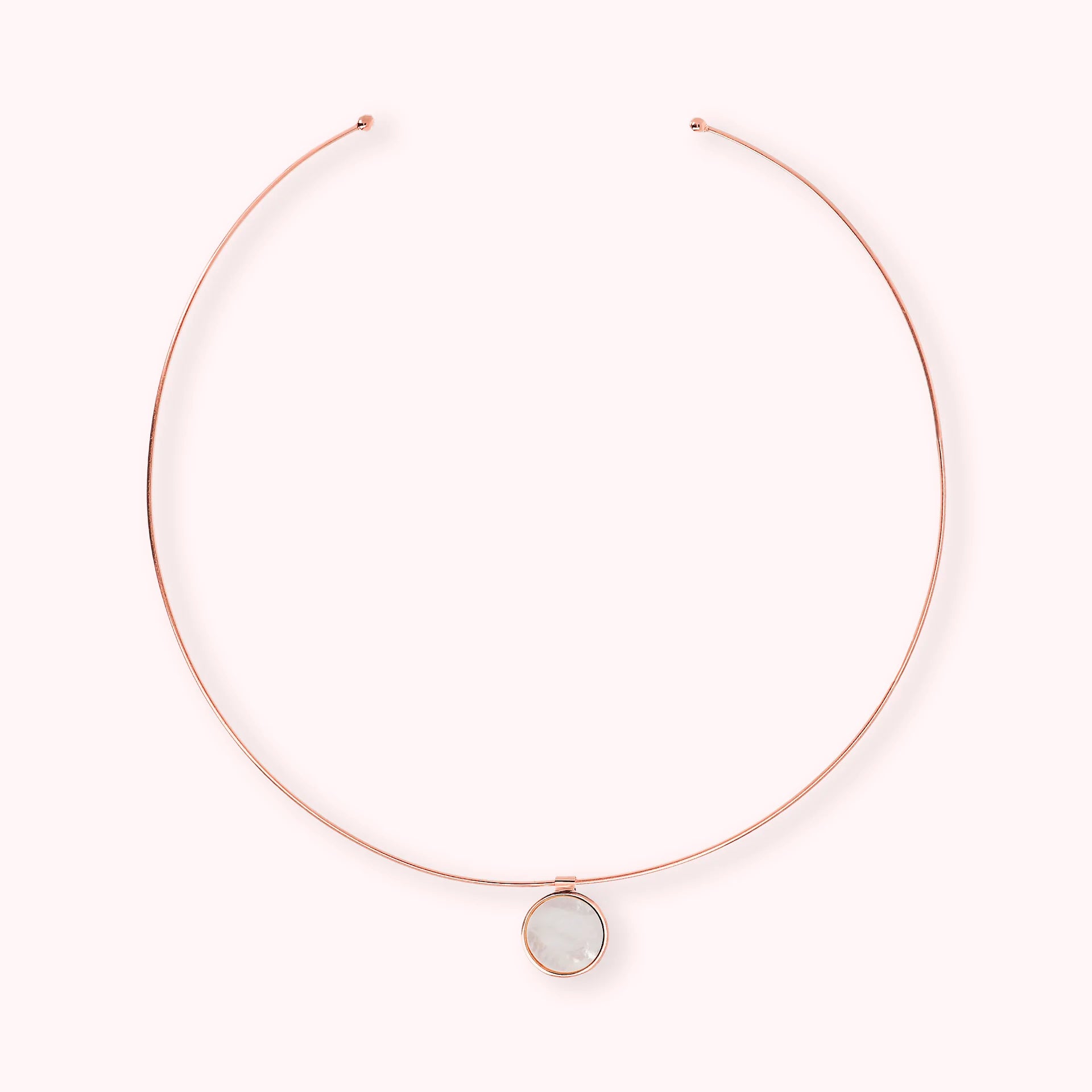 Collana choker Bronzallure realizzata in lega Golden Rosé, placcata oro rosa 18kt con pendente a bottone in pietra naturale piatta (12 mm).