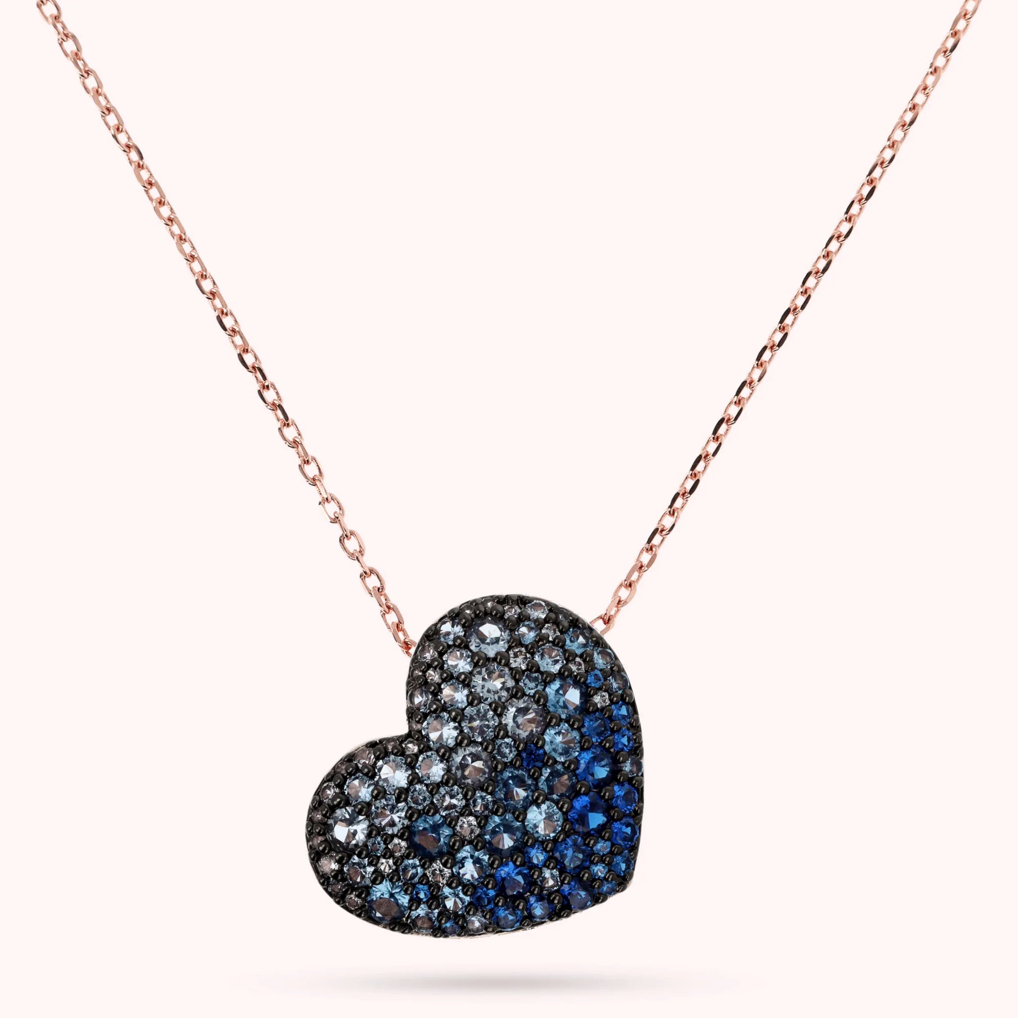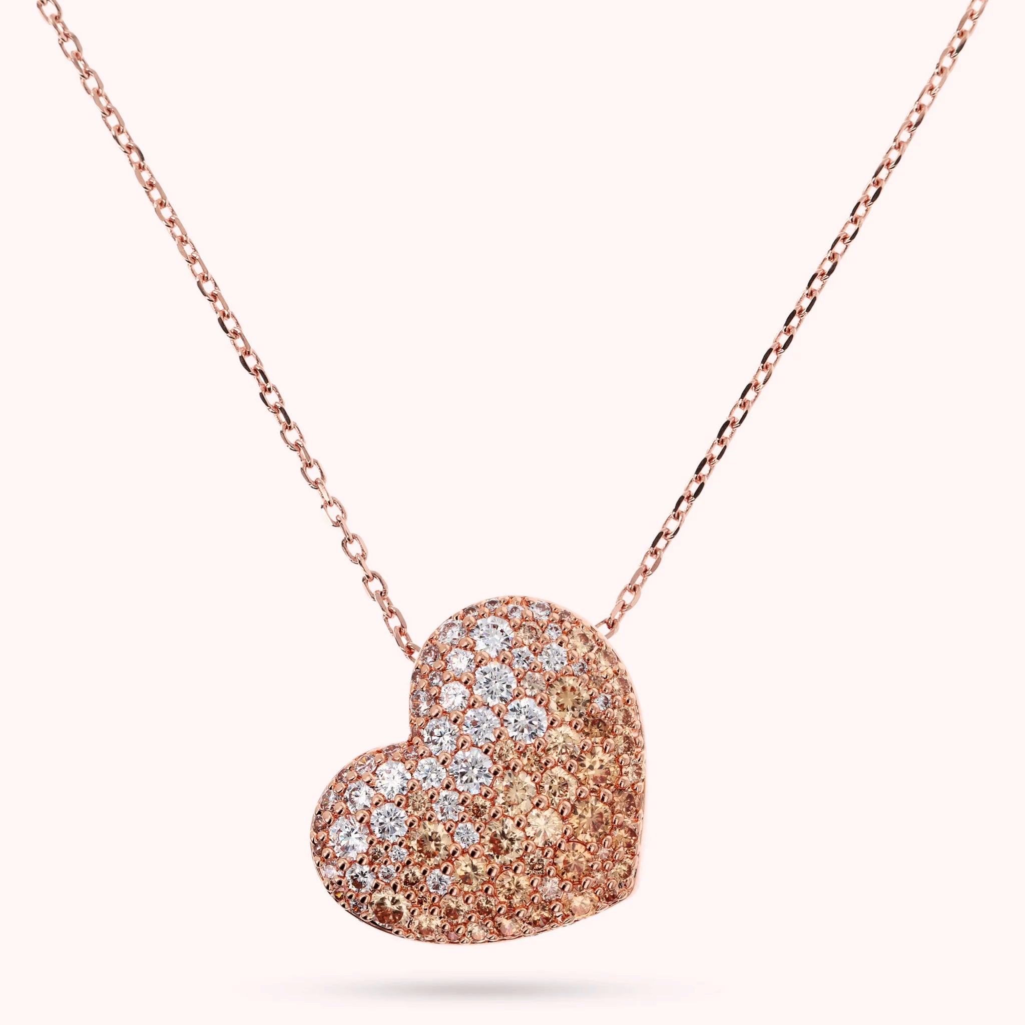 Collana lunga Bronzallure realizzata in lega Golden Rosé, placcata oro rosa 18kt, con catena forzatina impreziosita da un pendente a cuore (30x25 mm) con pavé in cubic zirconia, qualità luminosa; chiusura a moschettone. Disponibile in due misure: short (45cm) e long (91.4cm).