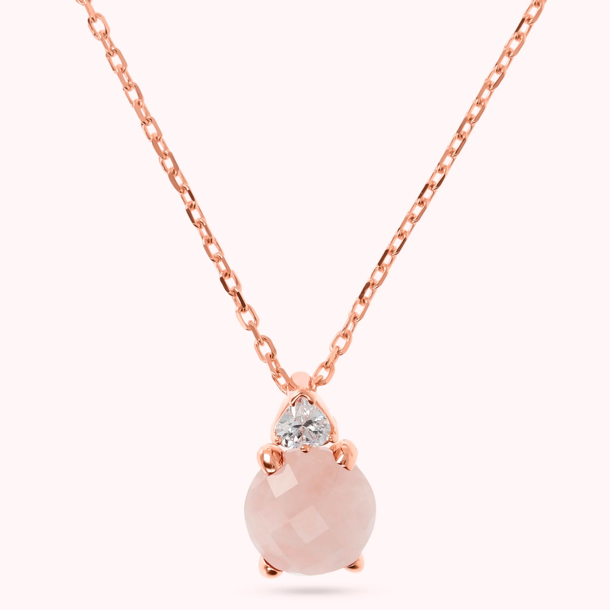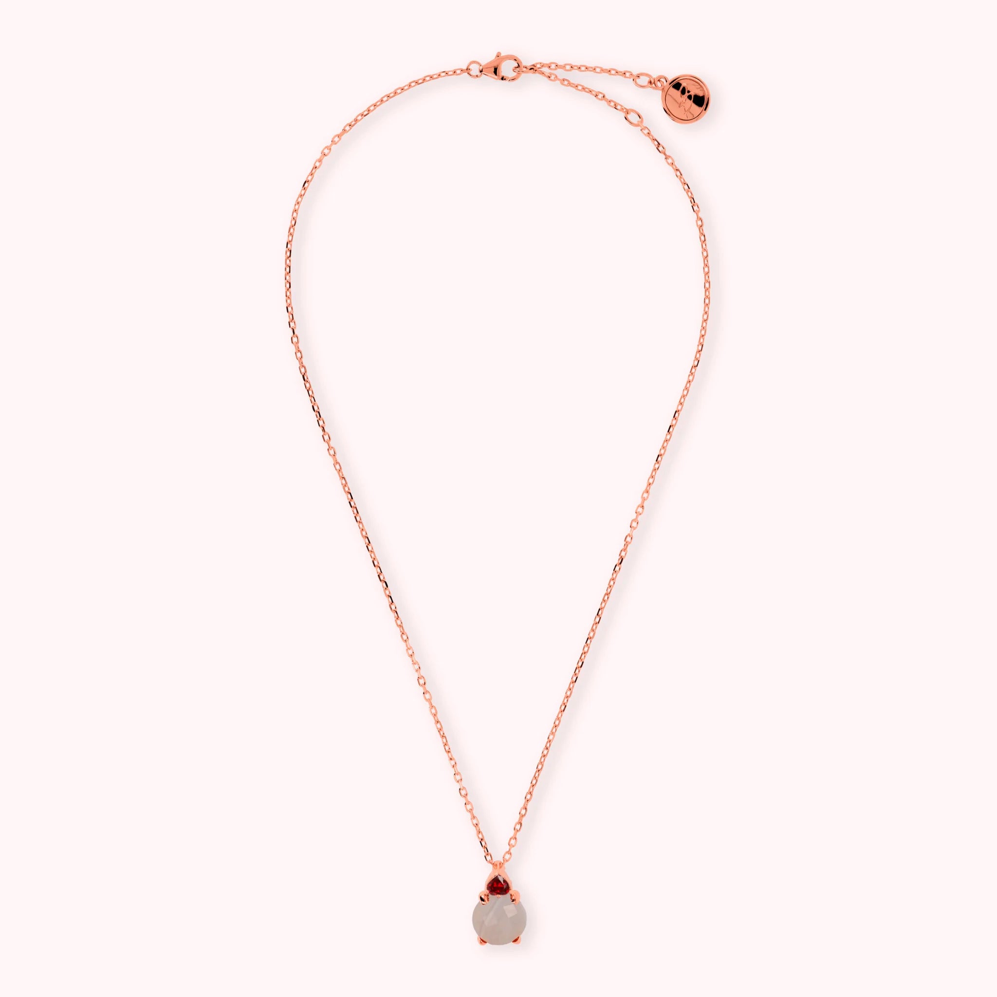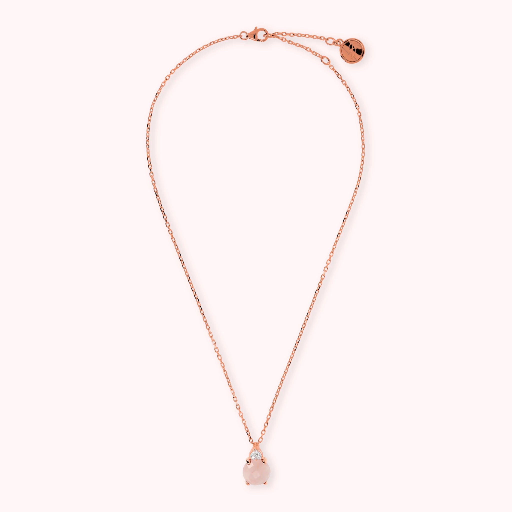 Collana Bronzallure realizzata in lega Golden Rosé, placcata oro rosa 18kt, con catena forzatina allungata e ciondolo impreziosito da una pietra naturale dalla forma tonda (12 mm) e da un cuore (5x5 mm) in cubic zirconia, qualità luminosa. Chiusura a moschettone e lunghezza 47 cm con anellini interposti a 41 e 44 cm.