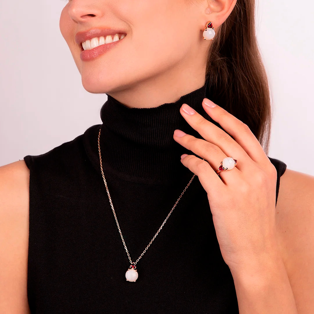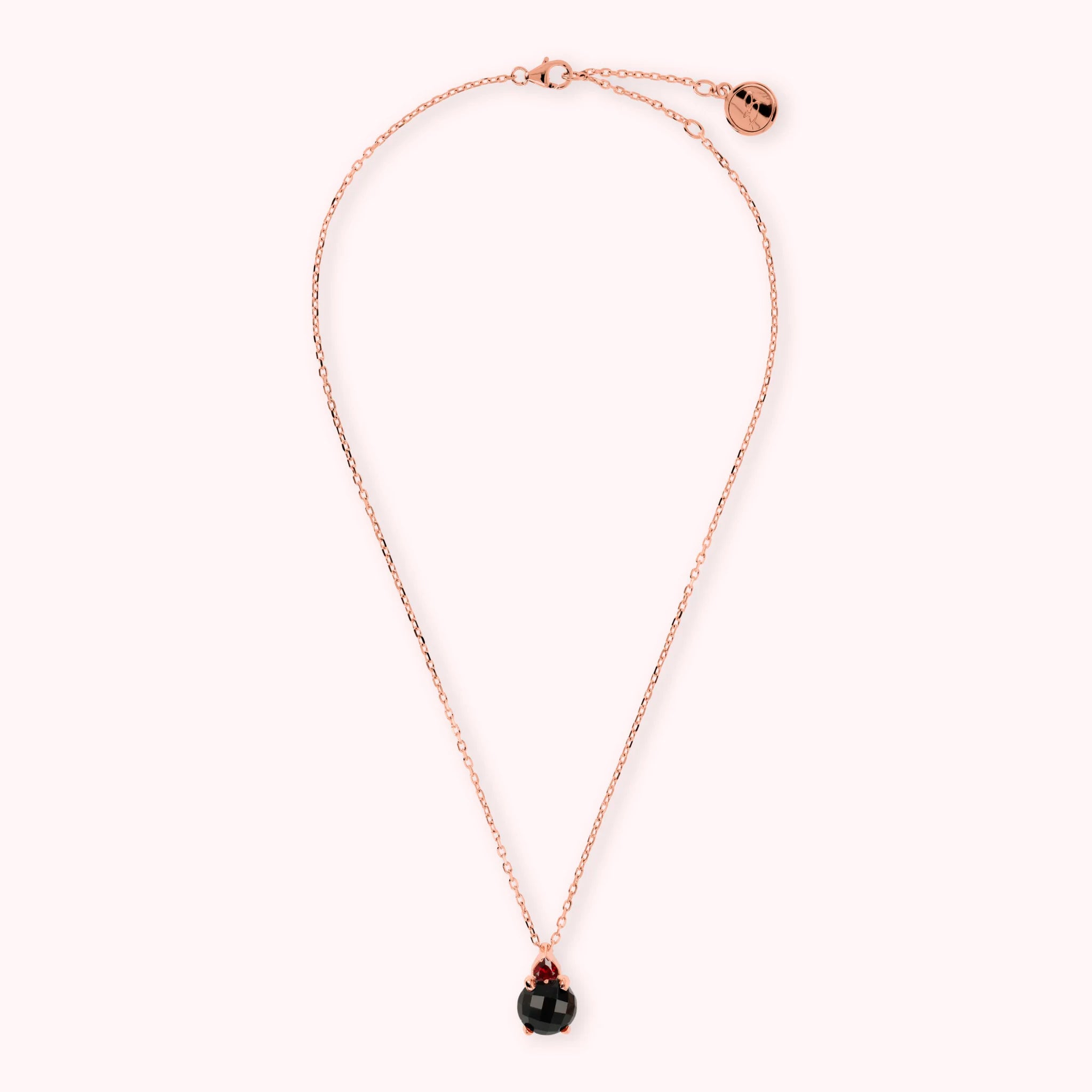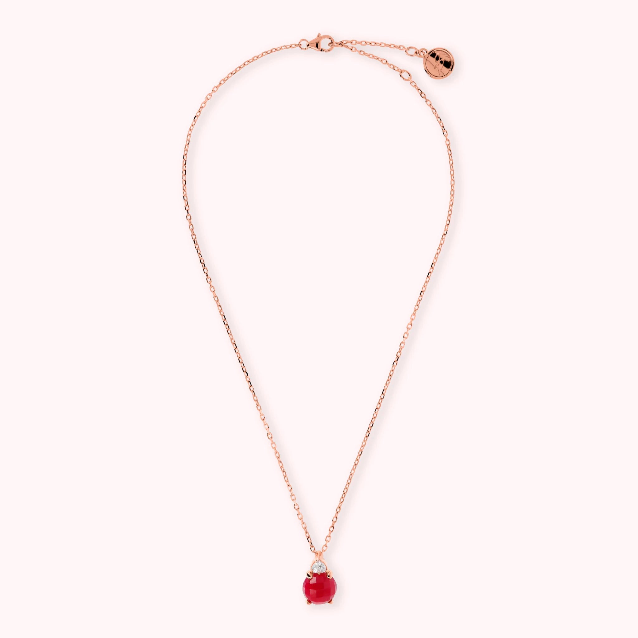 Collana Bronzallure realizzata in lega Golden Rosé, placcata oro rosa 18kt, con catena forzatina allungata e ciondolo impreziosito da una pietra naturale dalla forma tonda (12 mm) e da un cuore (5x5 mm) in cubic zirconia, qualità luminosa. Chiusura a moschettone e lunghezza 47 cm con anellini interposti a 41 e 44 cm.
